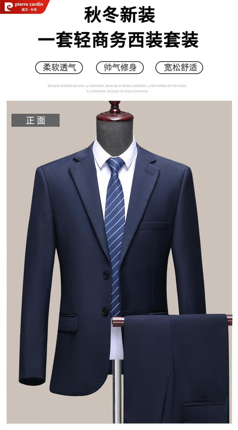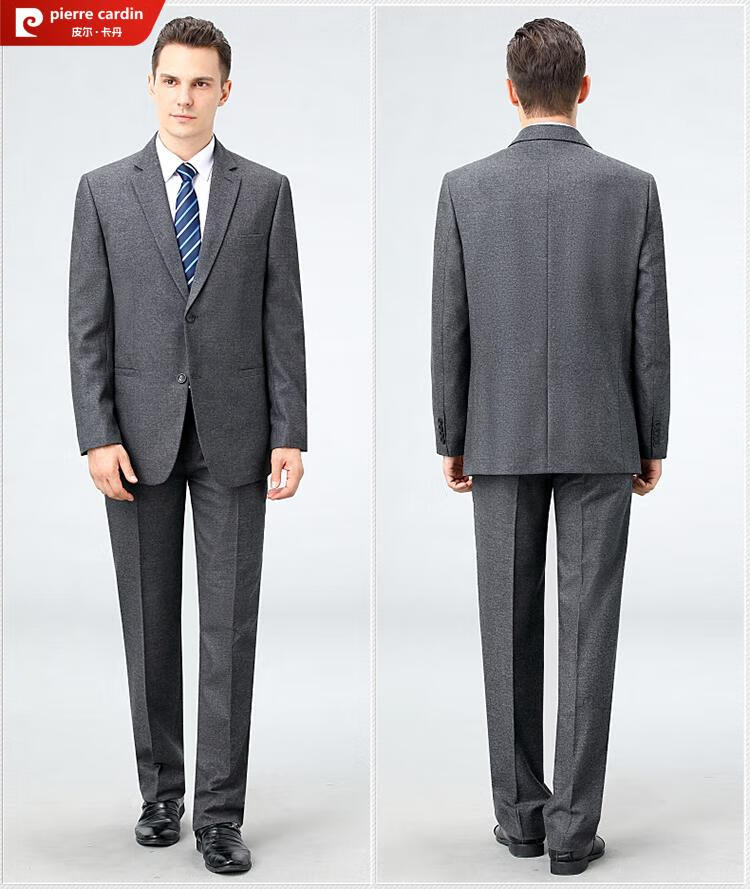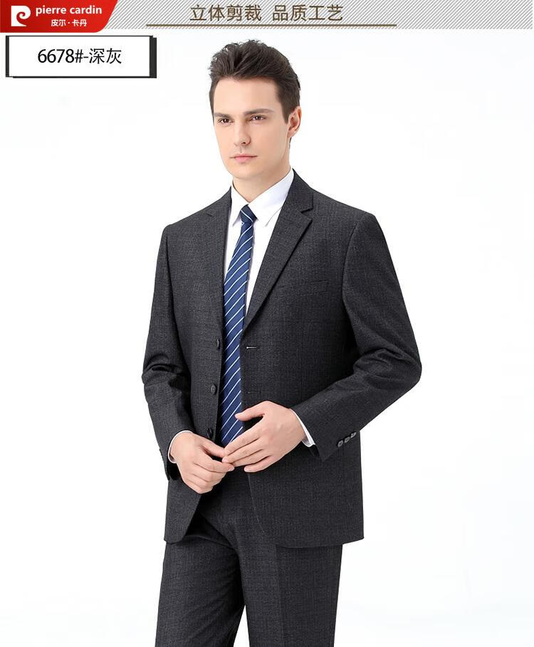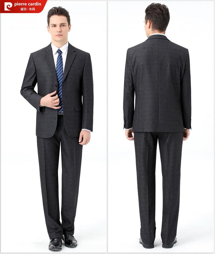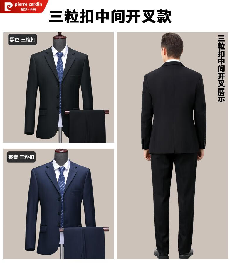 Pierre Cardin non-iron wool suit for men, spring and autumn two-piece suit, business professional formal wear, middle-aged and elderly father suit jacket 8816 black two buttons, four seasons style, bilateral slits L 175/92A recommended 140-155 Jin Jin equals 0.5 kg