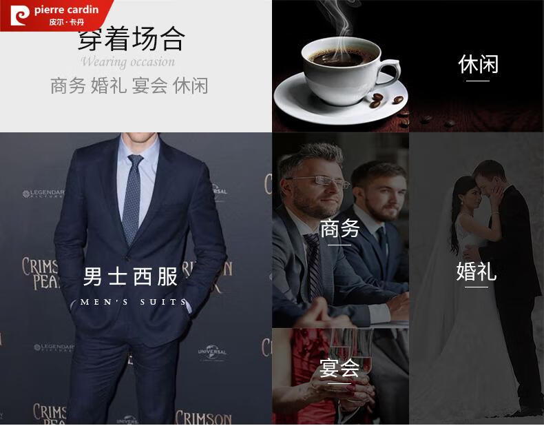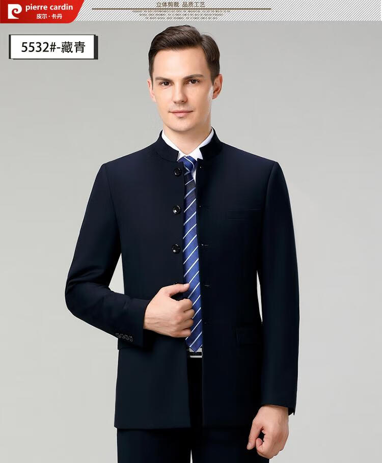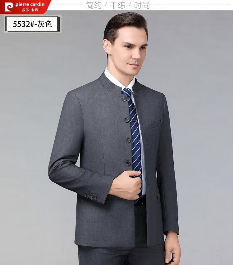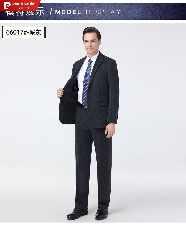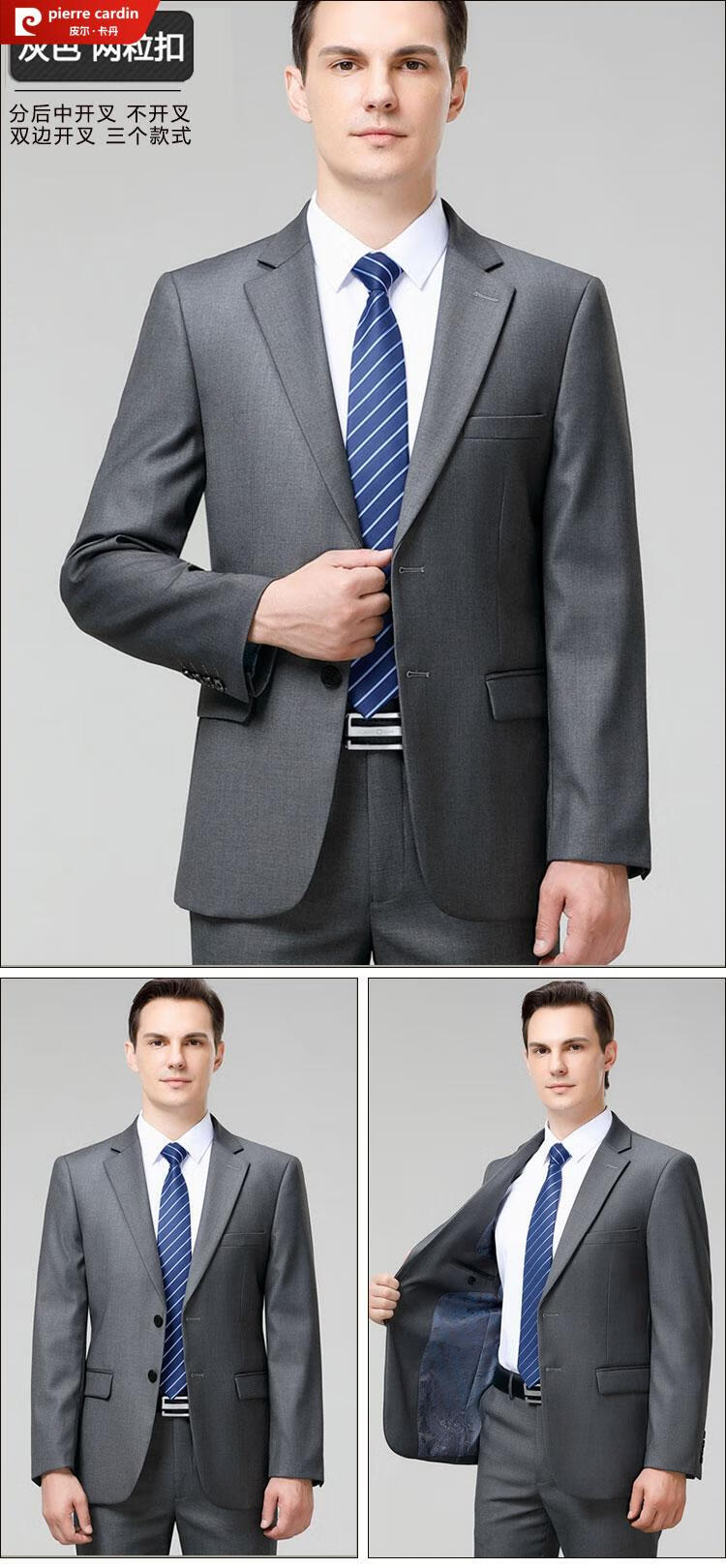Pierre Cardin non-iron wool suit for men, spring and autumn two-piece suit, business professional formal wear, middle-aged and elderly father suit jacket 8816 black two buttons, four seasons style, bilateral slits L 175/92A recommended 140-155 Jin Jin equals 0.5 kg
