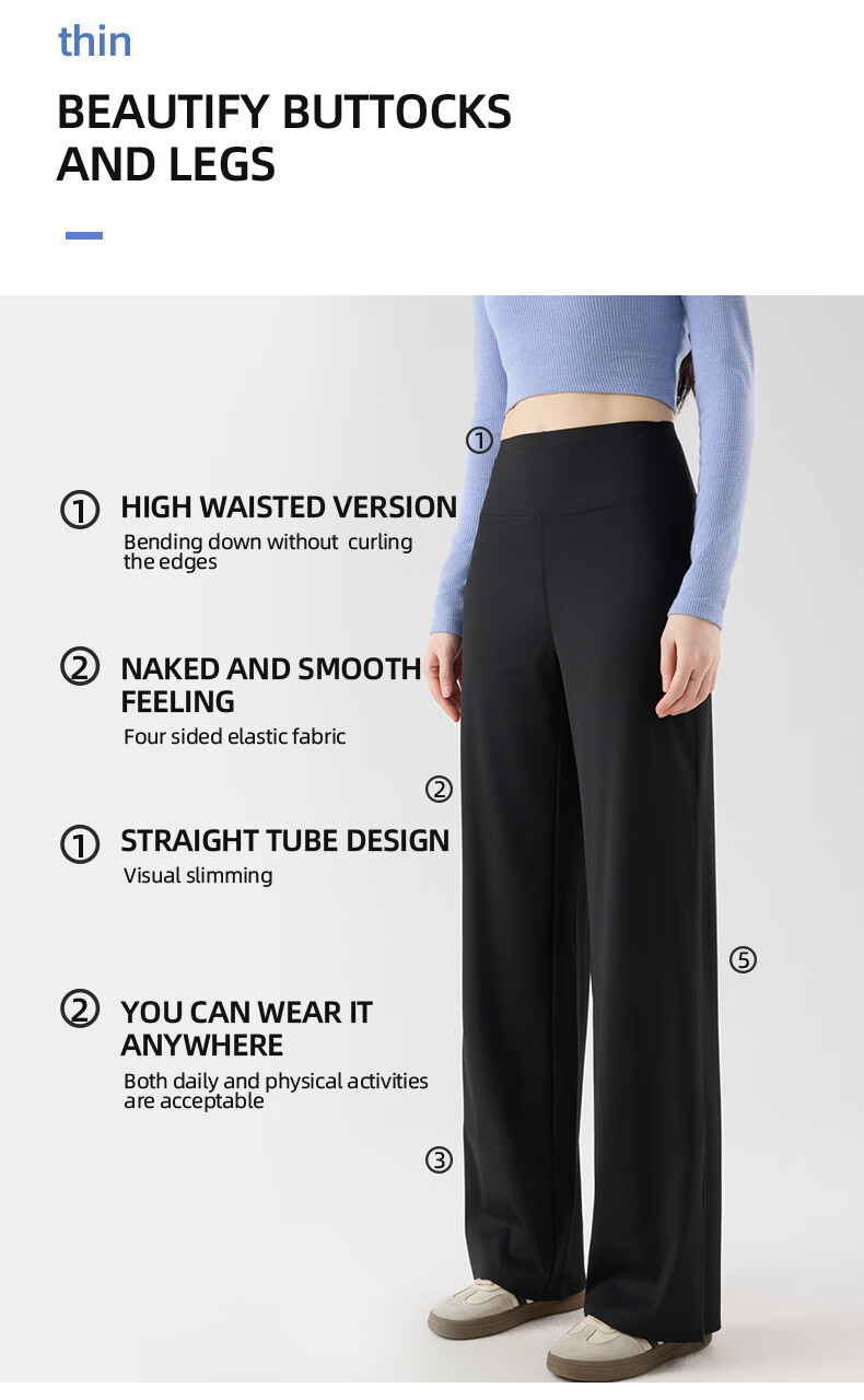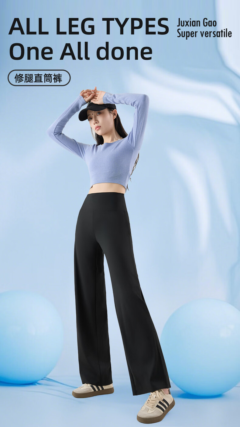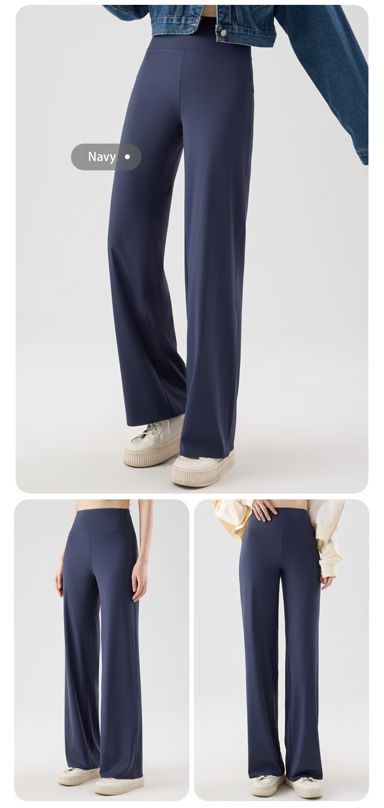 Yu Zhaolin's new yoga straight-leg pants, high-waisted wide-leg pants, casual trousers, fitness drape, slimming and breathable Pilates, small - 10 feet blue M