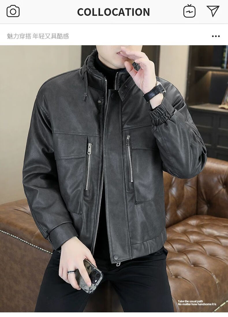 Дятел (TUCANO) зимняя мужская кожаная куртка, бархатная утепленная кожаная куртка, красивая кожаная хлопчатобумажная куртка, меховая универсальная зимняя куртка, черная, добавьте в избранное и получите приоритетную доставку XL рекомендуется 120-135 Цзинь Цзинь равен 0,5 кг