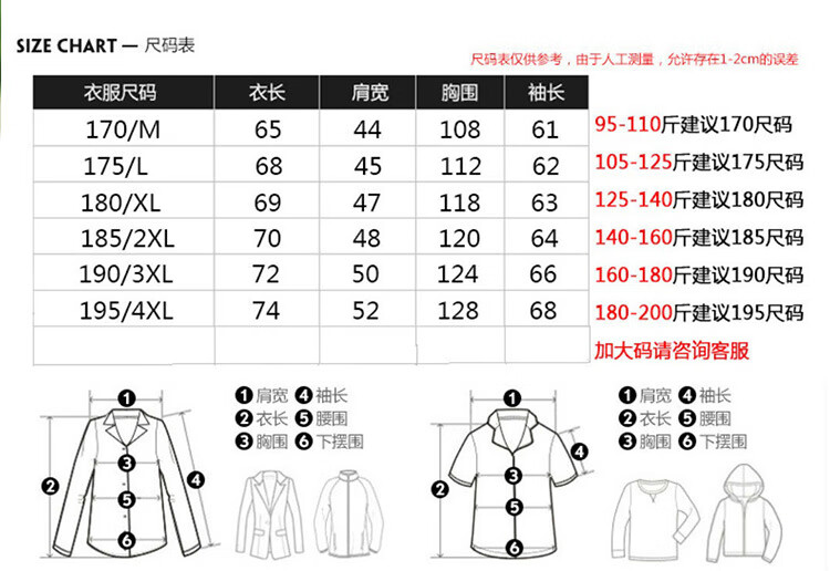China (cm) 165 / 88-90 170 / 96-98 175 / 108-110 180 / 118-122 185 / 126-130