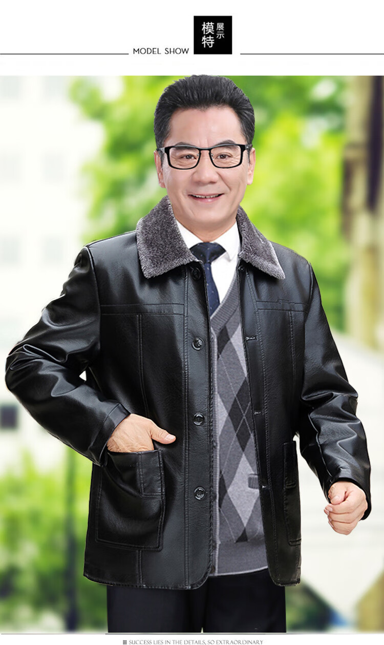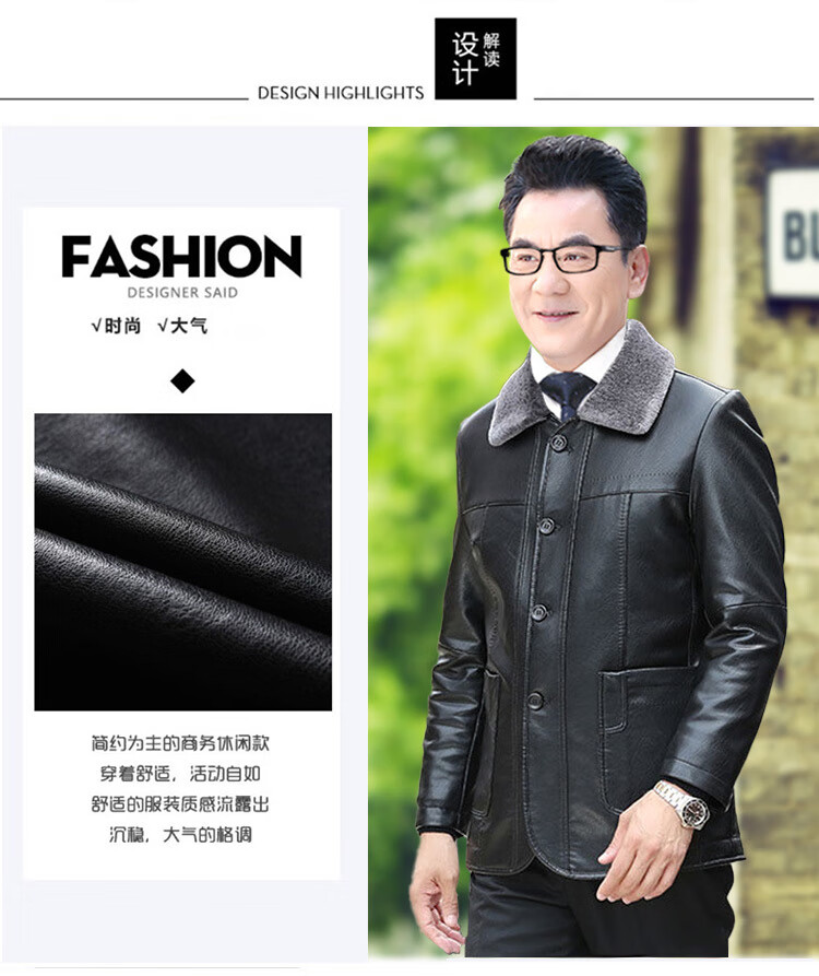 Woodpecker (TUCANO) Leather Jacket Men's Autumn and Winter Leather Jackets Middle-aged and Elderly Winter Cotton Clothes Plus Velvet Thickened Dad's Leather Cotton Jackets t601 Black Collection and Purchase Priority Shipping L 175 Recommended 105-120 Jin Jin equals 0.5 kg