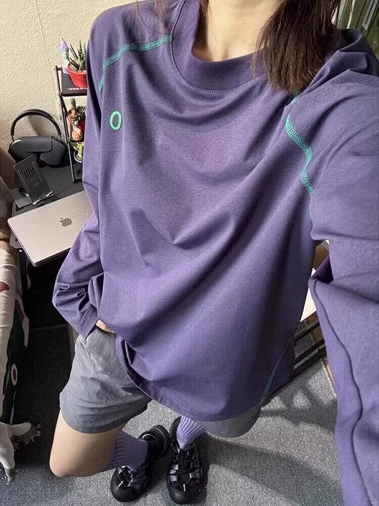 Mo Xiaodao long-sleeved T-shirt men's autumn new contrasting color splicing quick-drying outdoor sports running and cycling clothing bottoming shirt top for women purple L recommended 100-120Jin Jin equals 0.5 kg