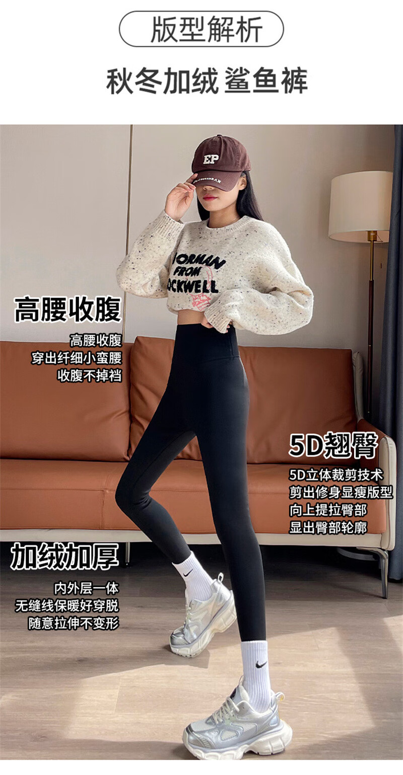 Shark pants women's outer wear autumn and winter thickened velvet warm cotton pants yoga Barbie autumn and winter leggings black 1 pair high warmth 0-15 degrees XL