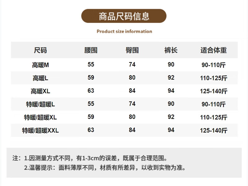 China (cm) 165 / 88-90 170 / 96-98 175 / 108-110 180 / 118-122 185 / 126-130