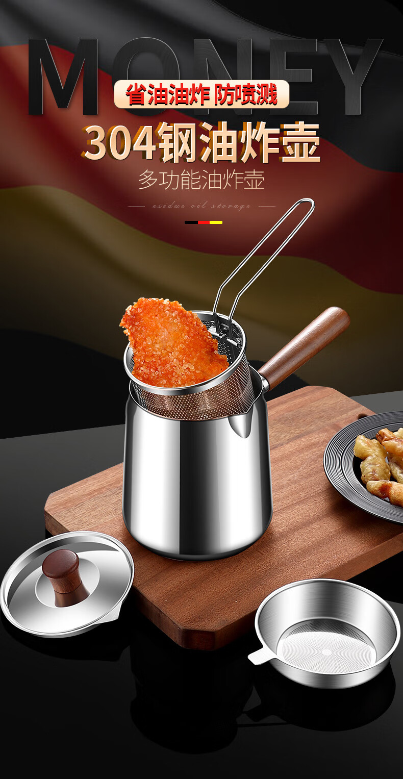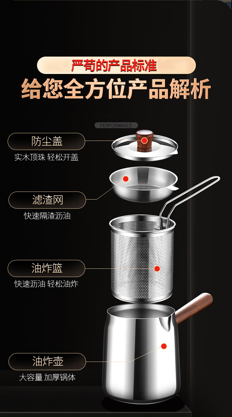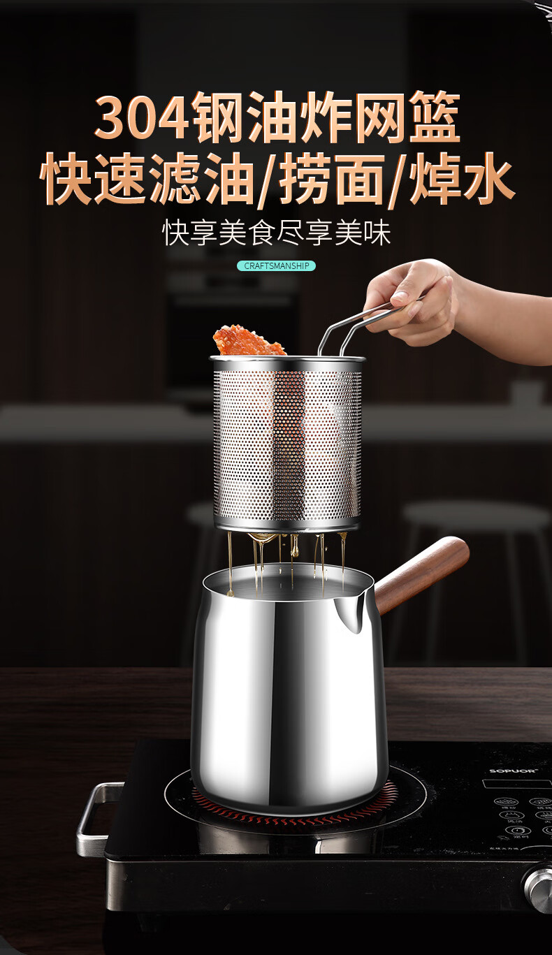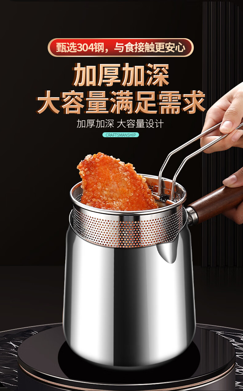 Fat Dong i frying pan kitchen with frying basket, frying barrel, walnut insulated 304 stainless steel frying pan, 304 steel walnut frying kettle + frying basket 15cm