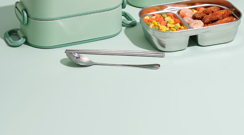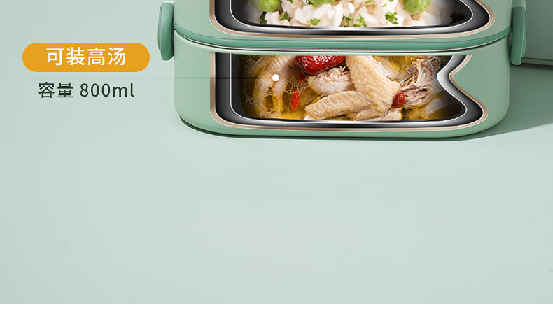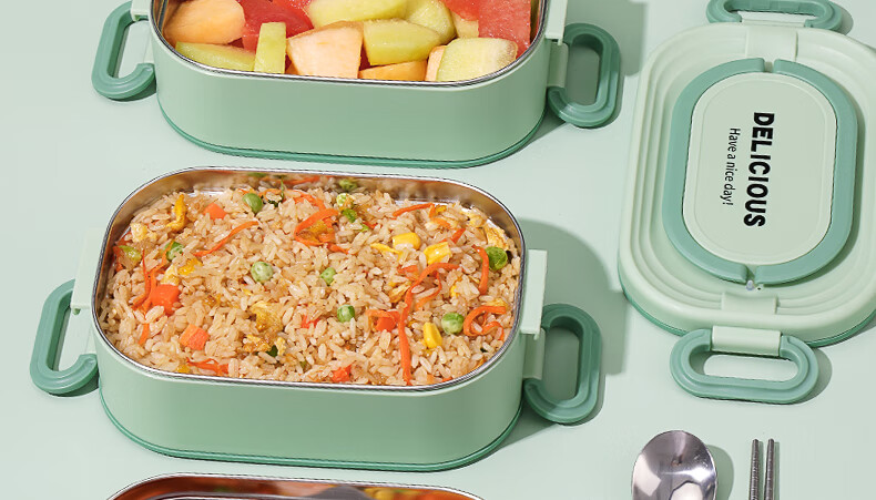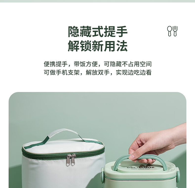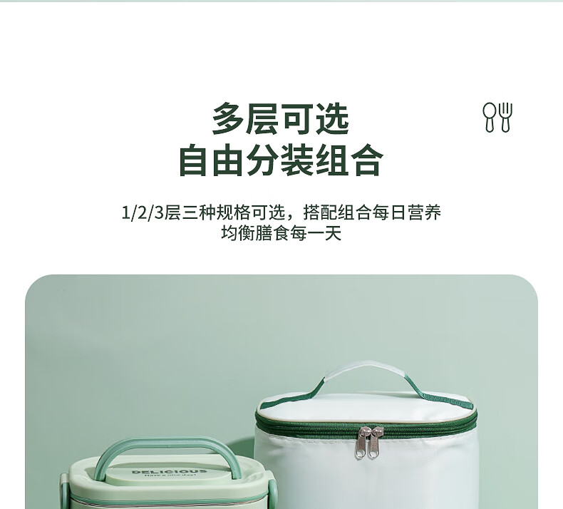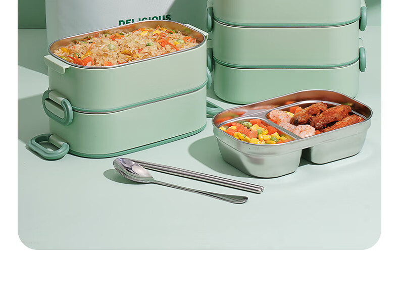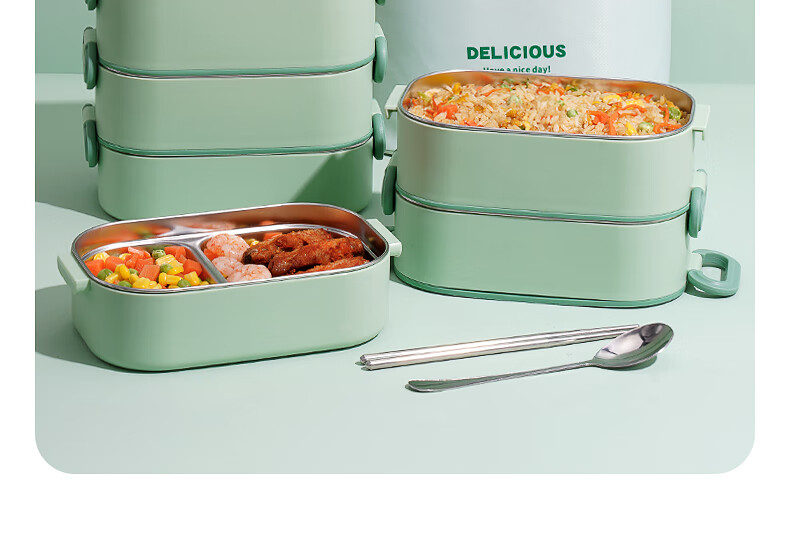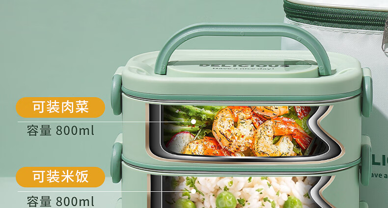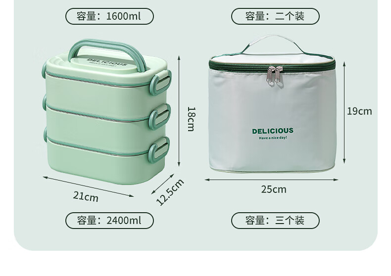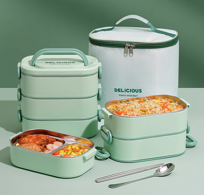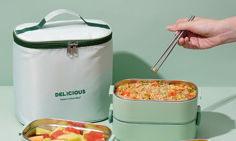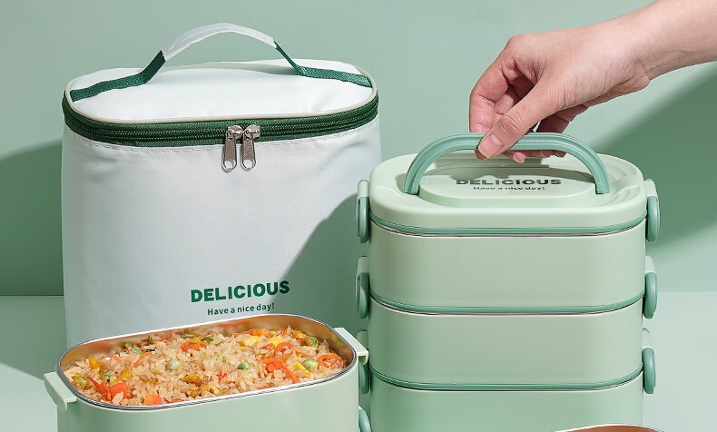 Thermos Thermos Long Insulated Lunch Box for Office Workers Microwaveable with Rice Bucket Multi-Layer Lunch Box for Primary School Students Three-Layer Simple White 2400ML + Insulation Bag Collection