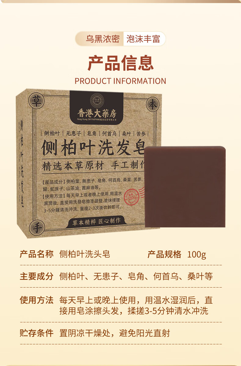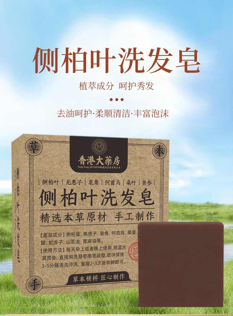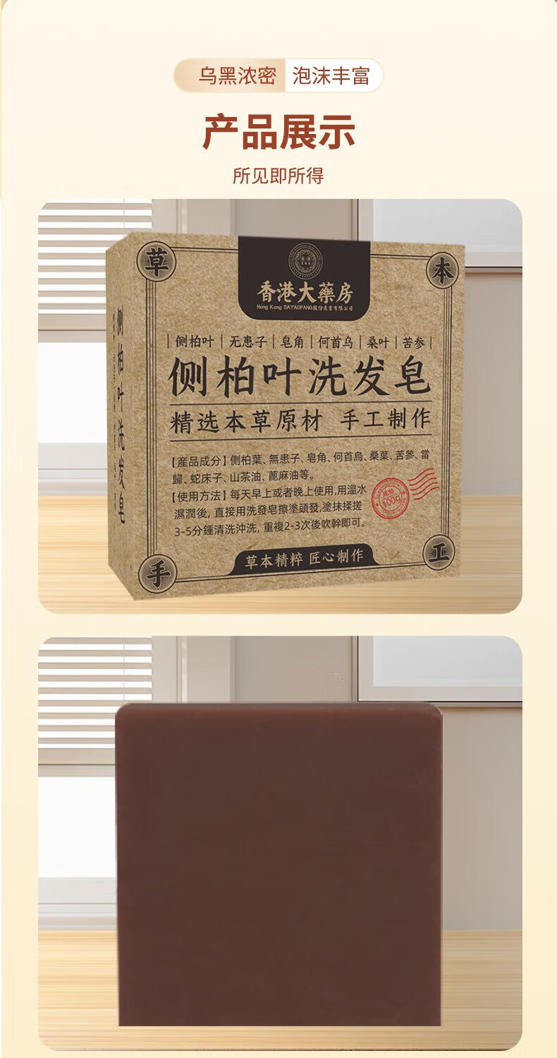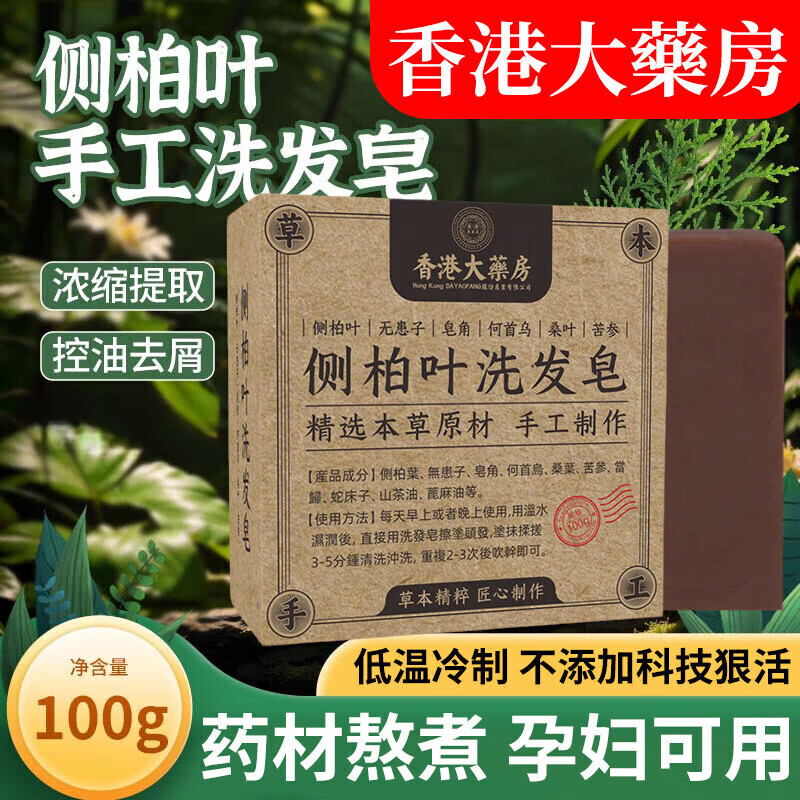Hong Kong Pharmacy Arborvitae Leaf Shampoo Soap Polygonum multiflorum soapberry Sophora flavescens Chinese herbal handmade plant soap angle shampoo soap for men and women 2 boxes available 200g recommended by the store manager