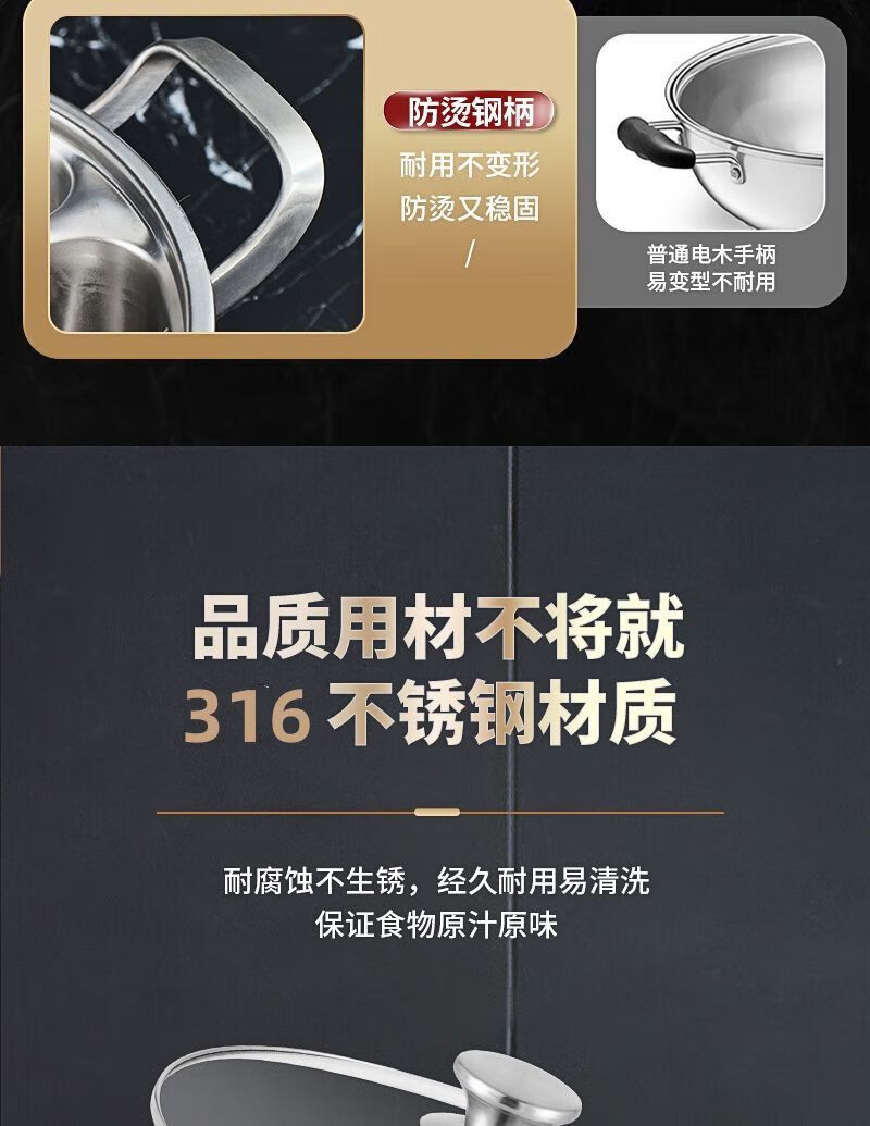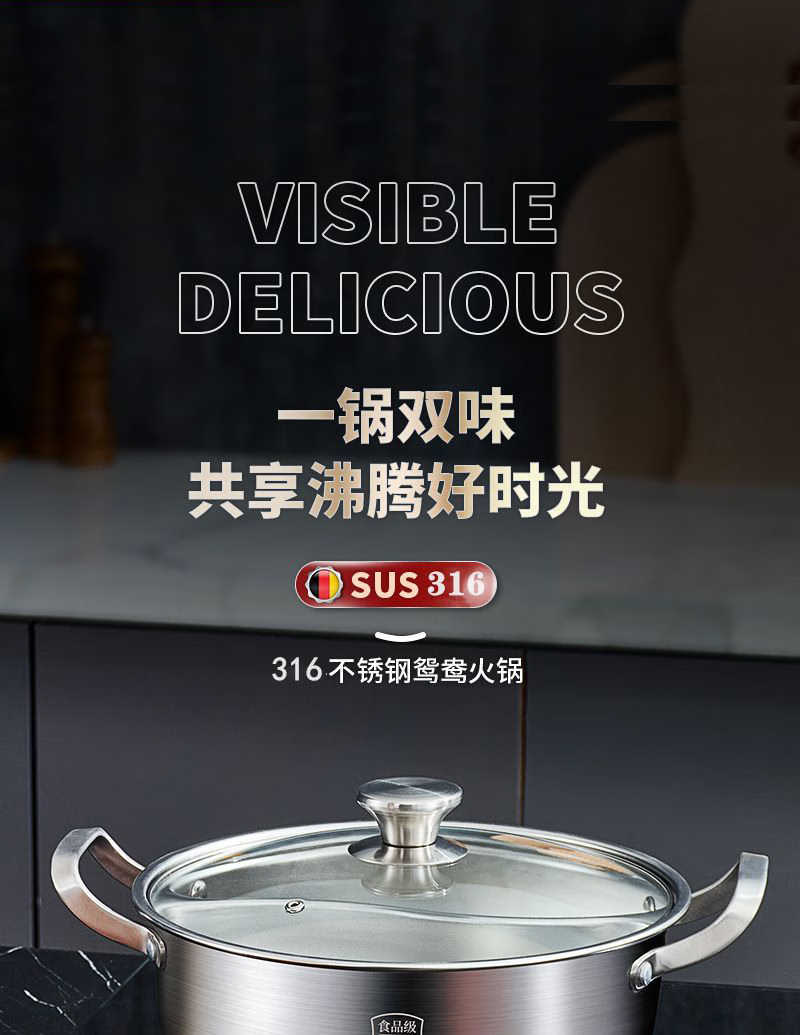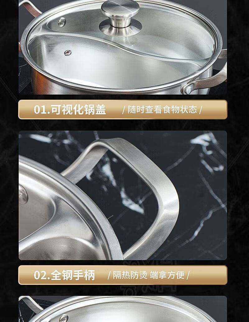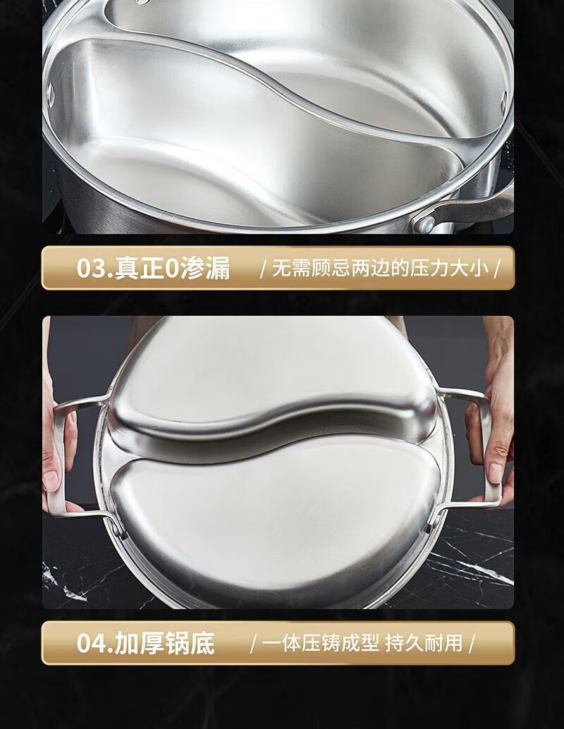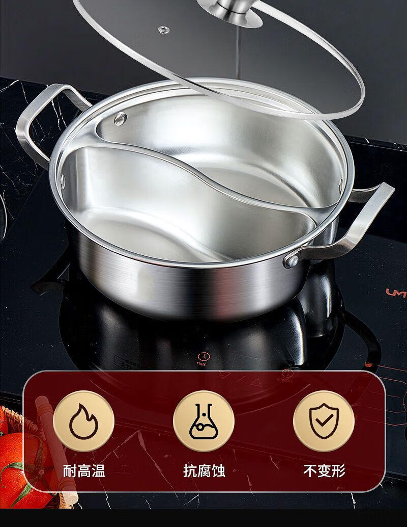 Fat Donglai's same style Yuanyang pot induction cooker special hot pot one-piece electric hot pot thickened 316 316 one-piece molding without welding 30cm
