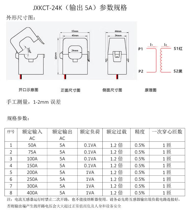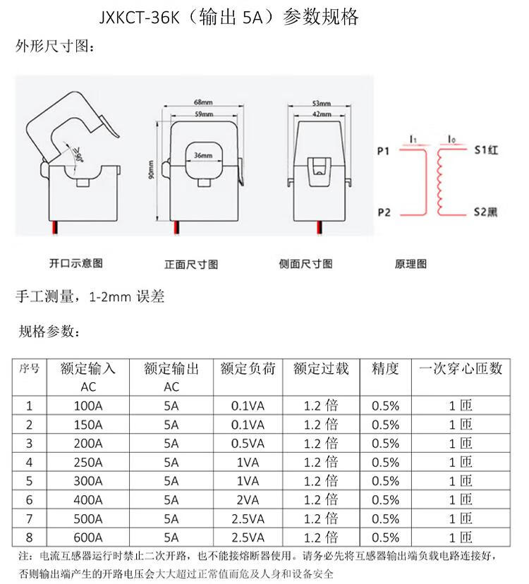 Open/buckle/open and close three-phase AC ammeter small KCT24/36 open current transformer 0.5 level JXKCT16 600A/5A special invoice for orders over 1,000 yuan