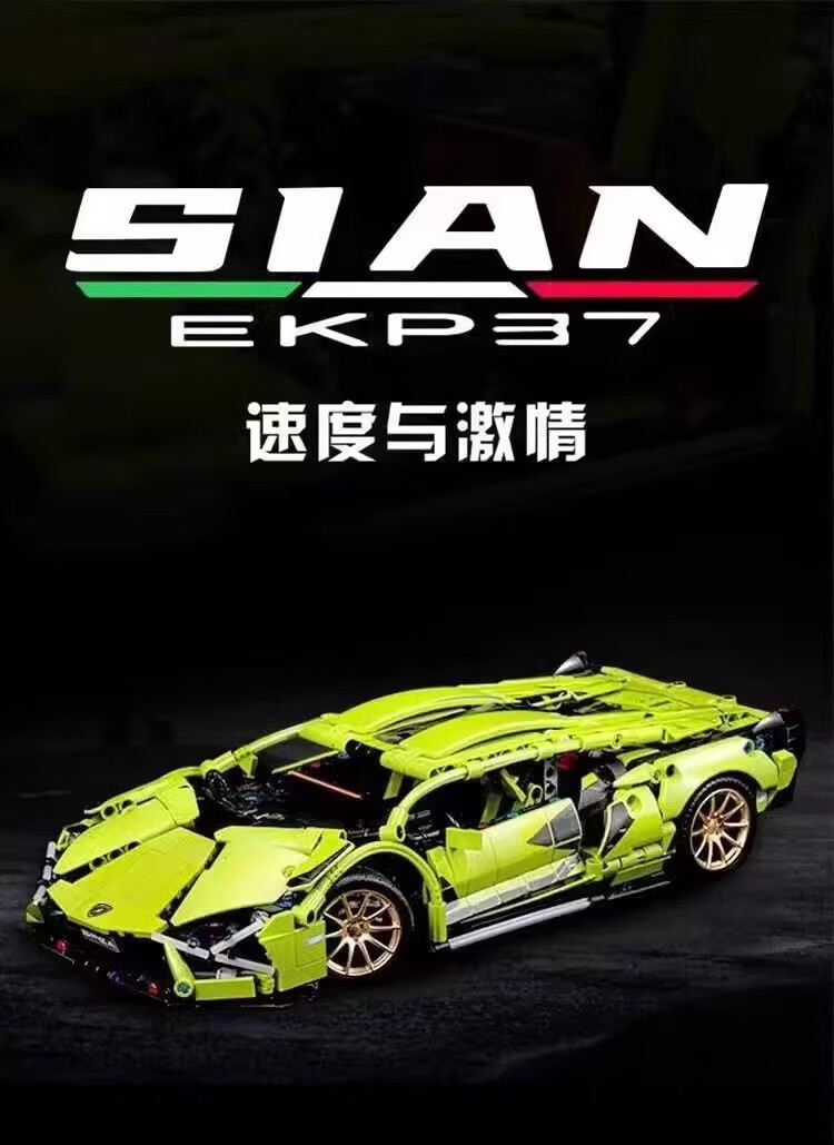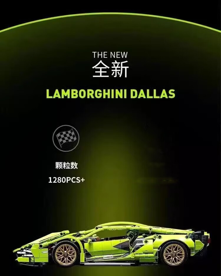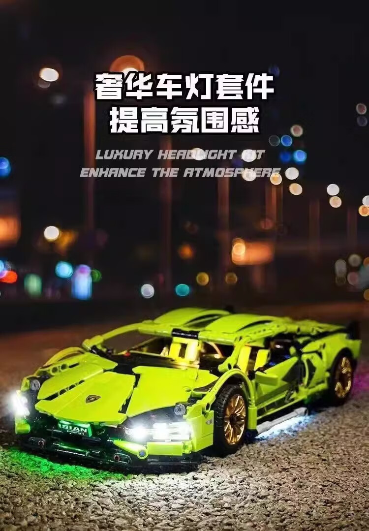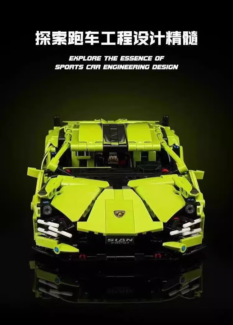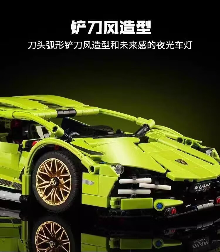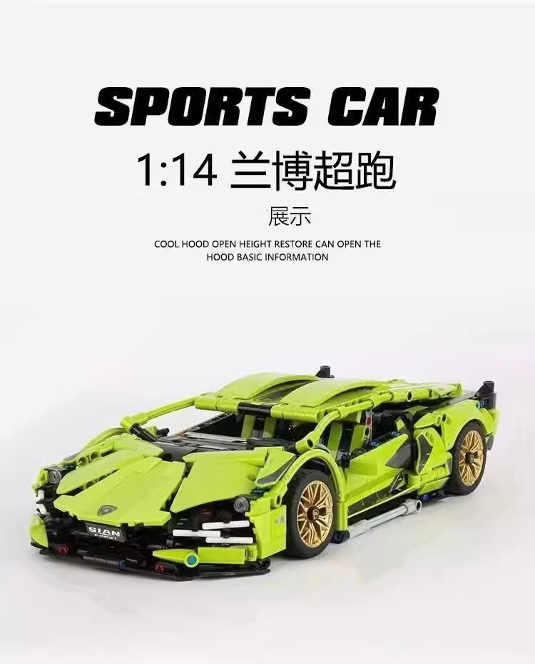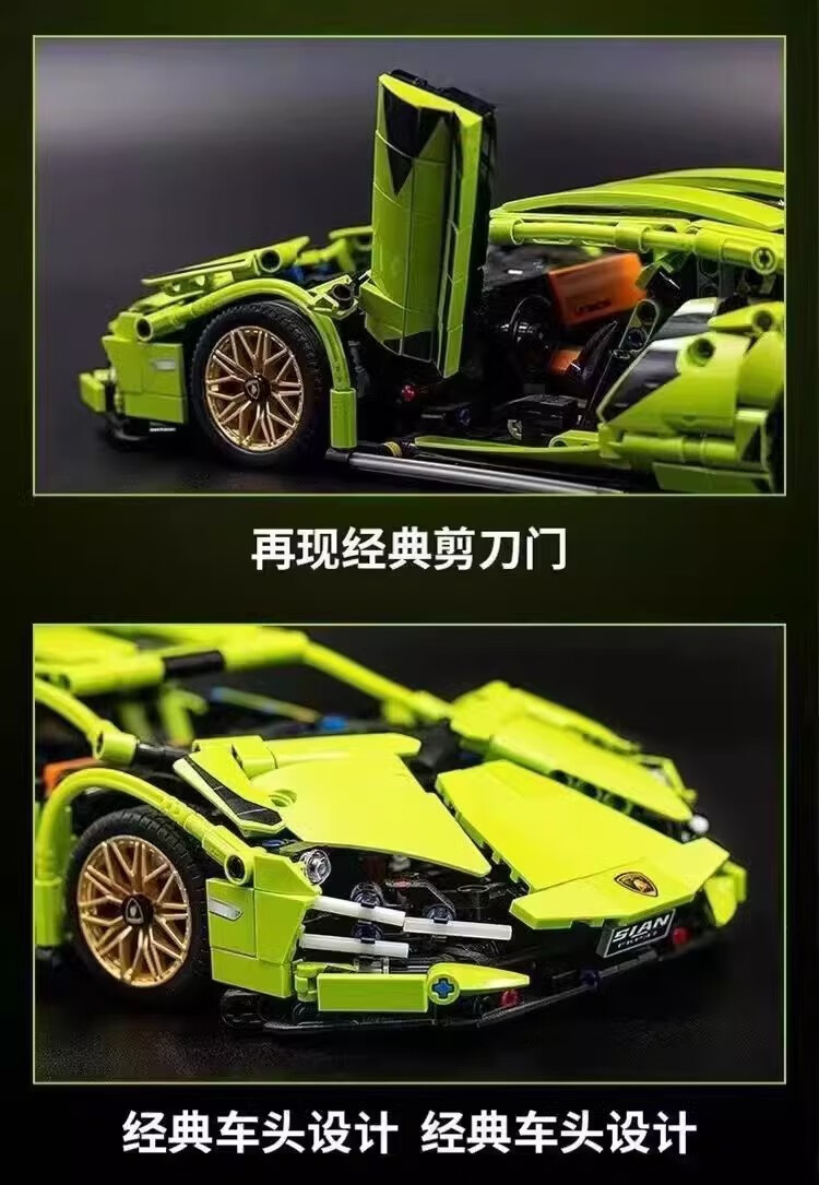 Disney building block toy Lambo building block sports car Gini children's difficult boy assembly toy remote control car model Lamborghini Green Bull static version steps