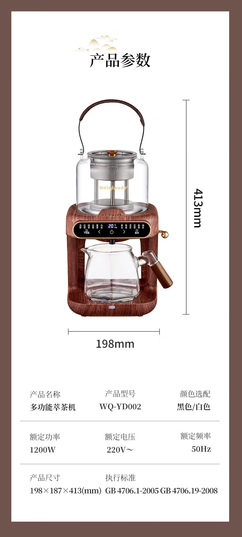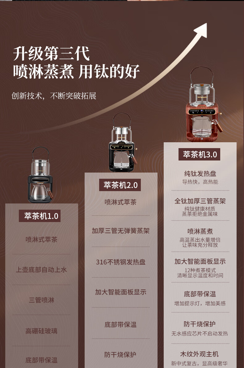 Wedgwood spray-type tea maker black tea Pu'er steaming teapot electric ceramic stove fully automatic water boiling teapot health pot sandalwood color pure titanium heating plate + tea leakage to refuse stuck tea residue 0.6L