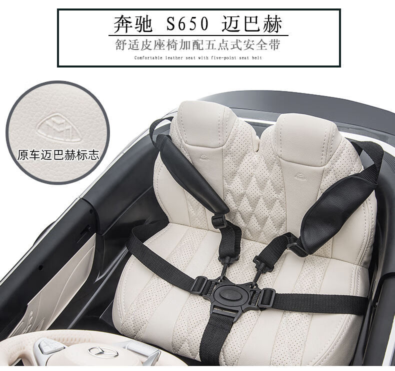 Maybach genuine authorized children's electric car, children can sit on it, charging remote control four-wheel toy car, top with white 12V10AH leather seat, foam tire MP4