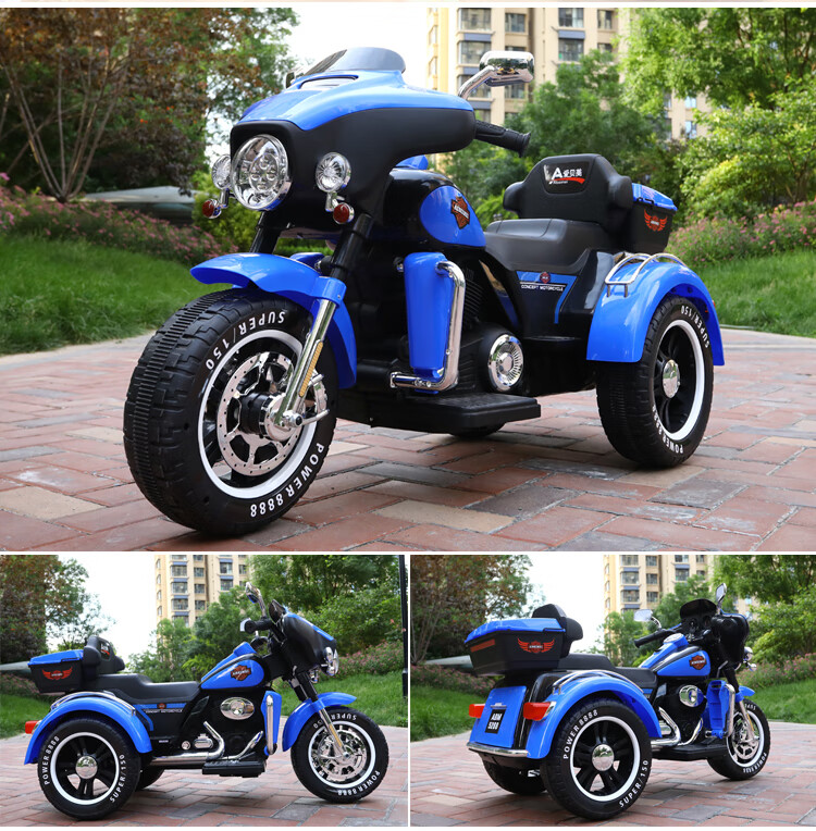 Harley children's electric motorcycle tricycle, male and female baby toy car, child battery remote control stroller that can sit on, cool black dual-drive large battery + soft seat