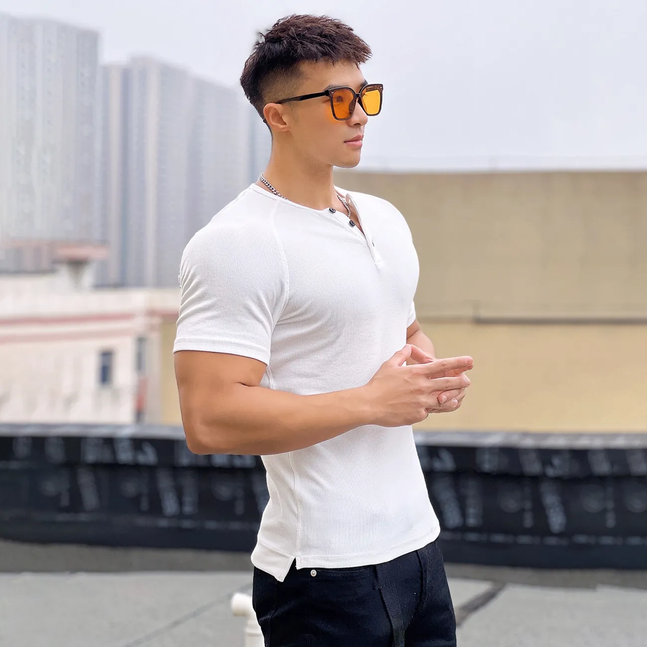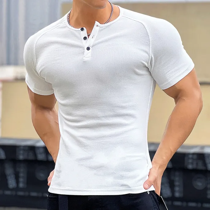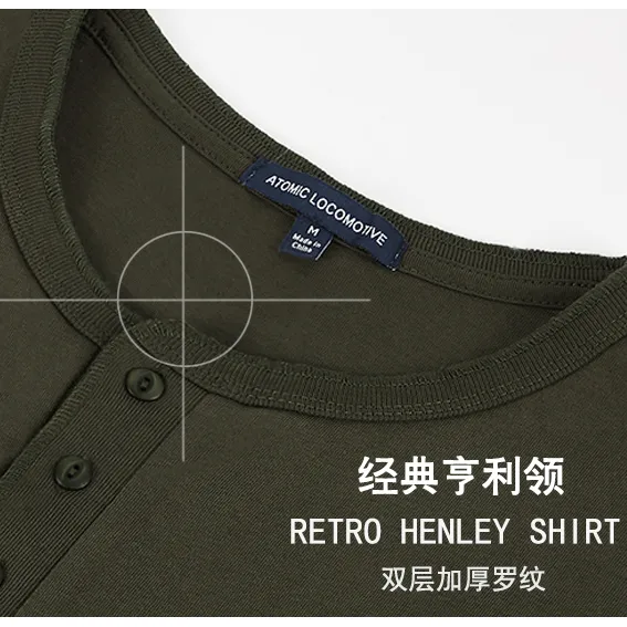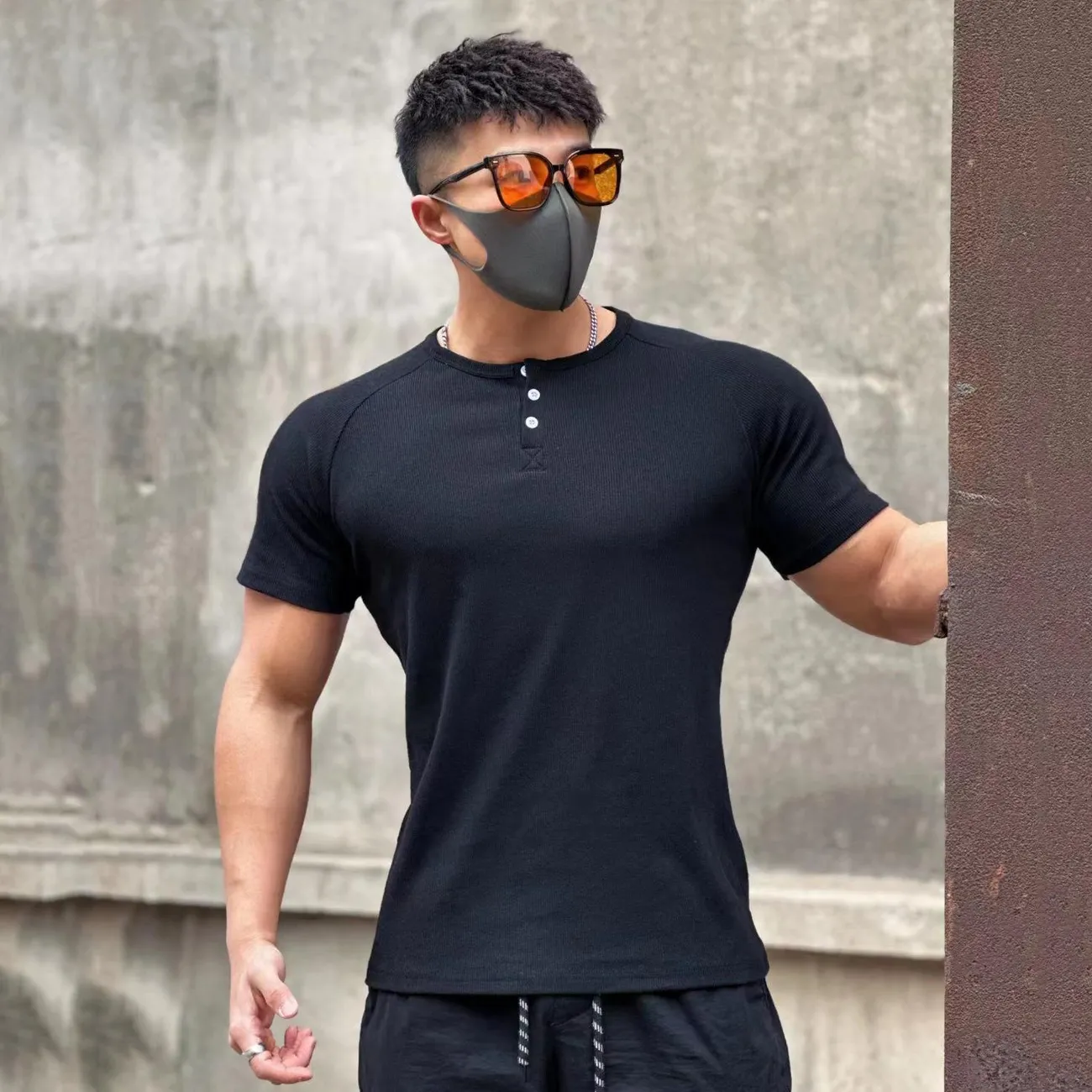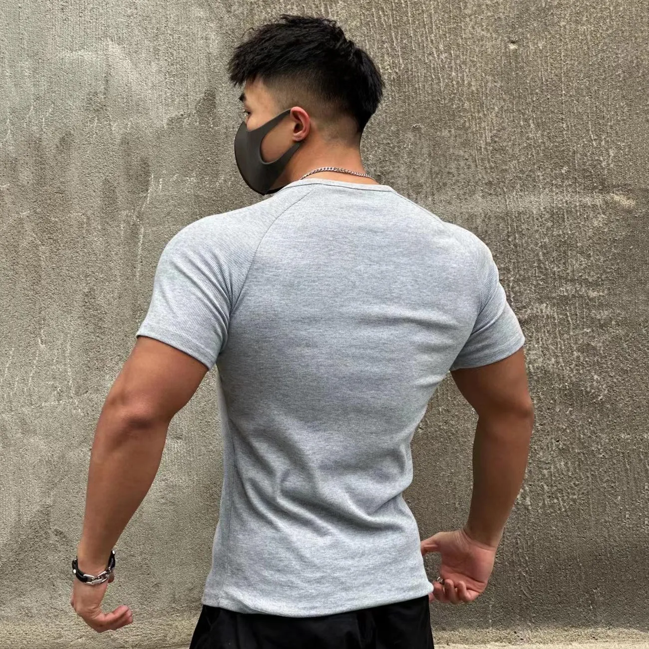 American retro heavyweight coarse threaded cotton henley shirt short-sleeved summer casual fitness tough guy bottoming t-shirt men's slim gray M recommended 100-120Jin Jin equals 0.5 kg