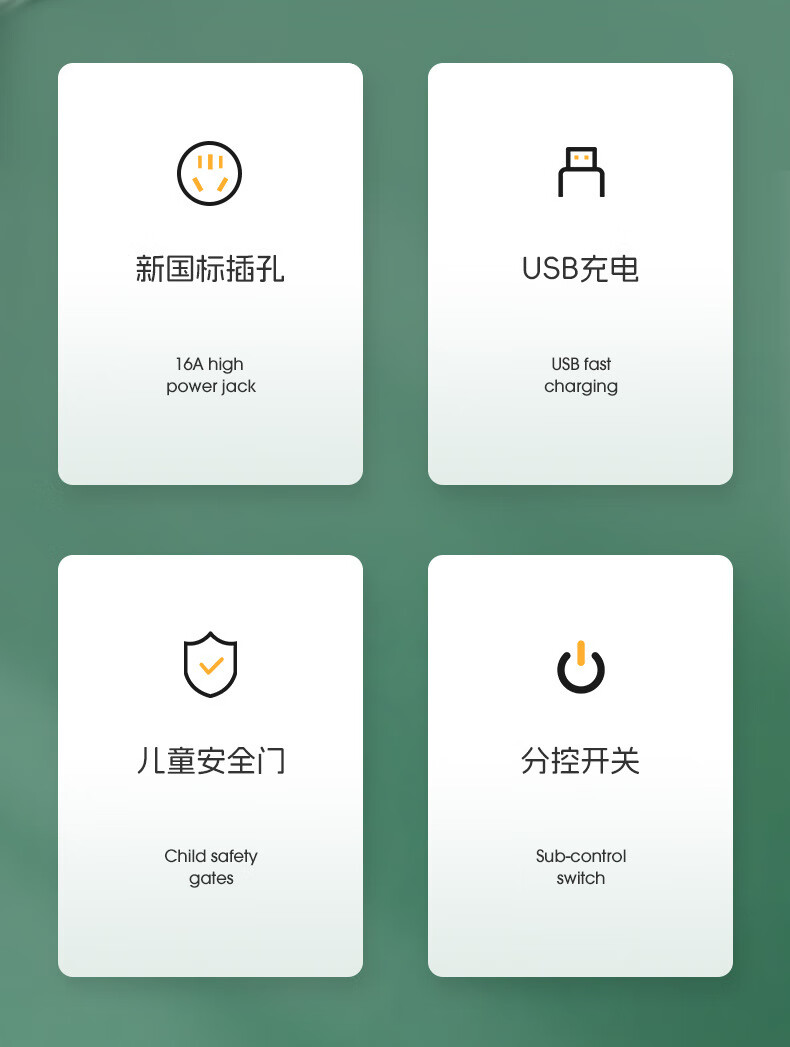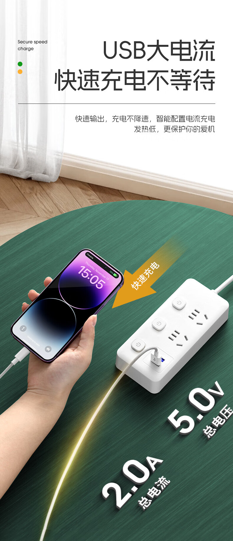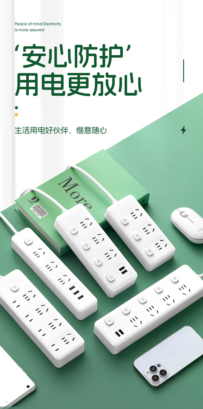 Jingdong household smart multi-hole socket USB port plug-in board office high-power pure copper multi-function switch wiring board 4 sockets 14 holes 1.8 meters