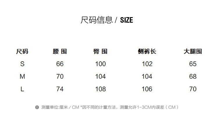 Outseam (cm) 99 cm 101.5 cm 104 cm 106.5 cm 109 cm