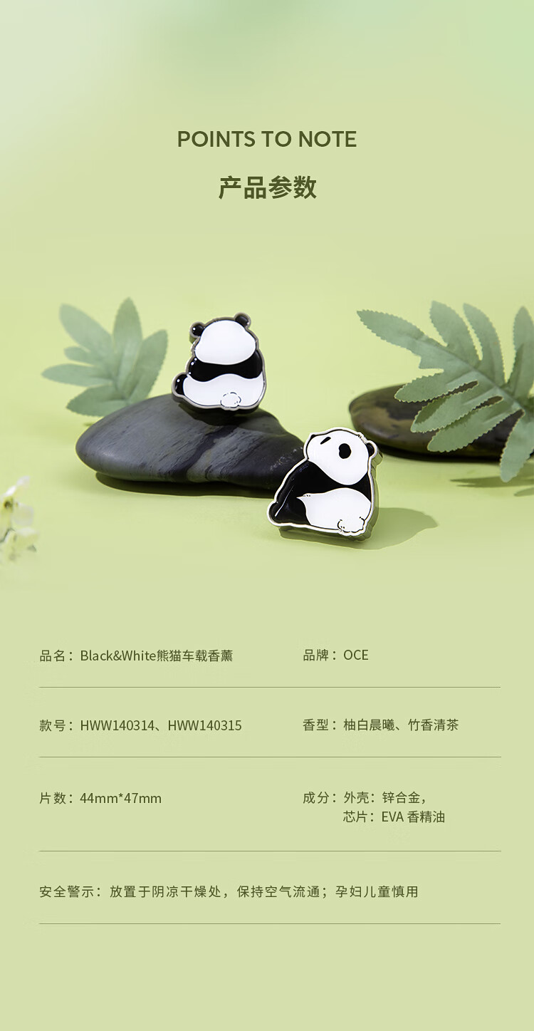 OCEOCE Panda Car Aromatherapy Air Diffuser Magnetic Perfume Ornament Long-lasting Fragrance Solid Deodorizing Fragrance Pomelo White Dawn