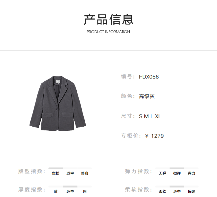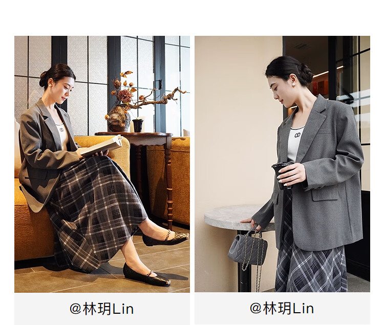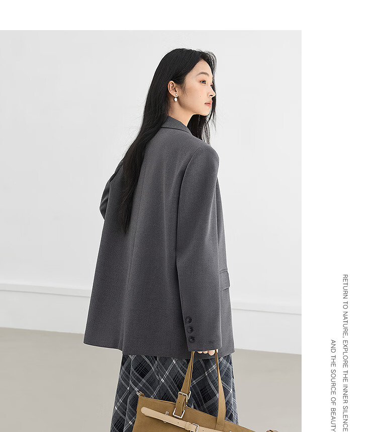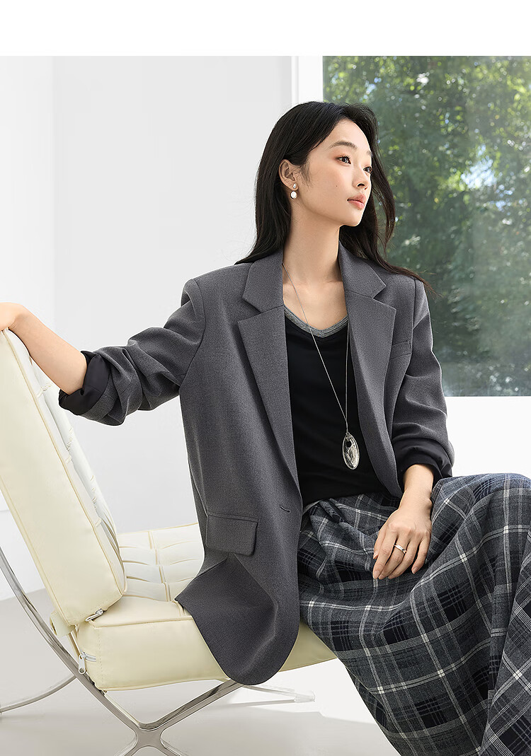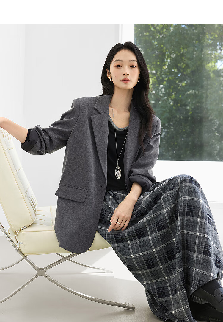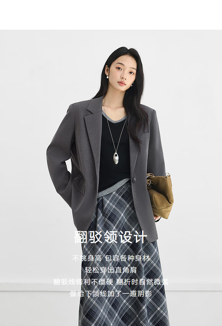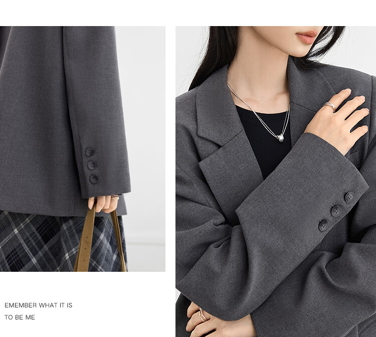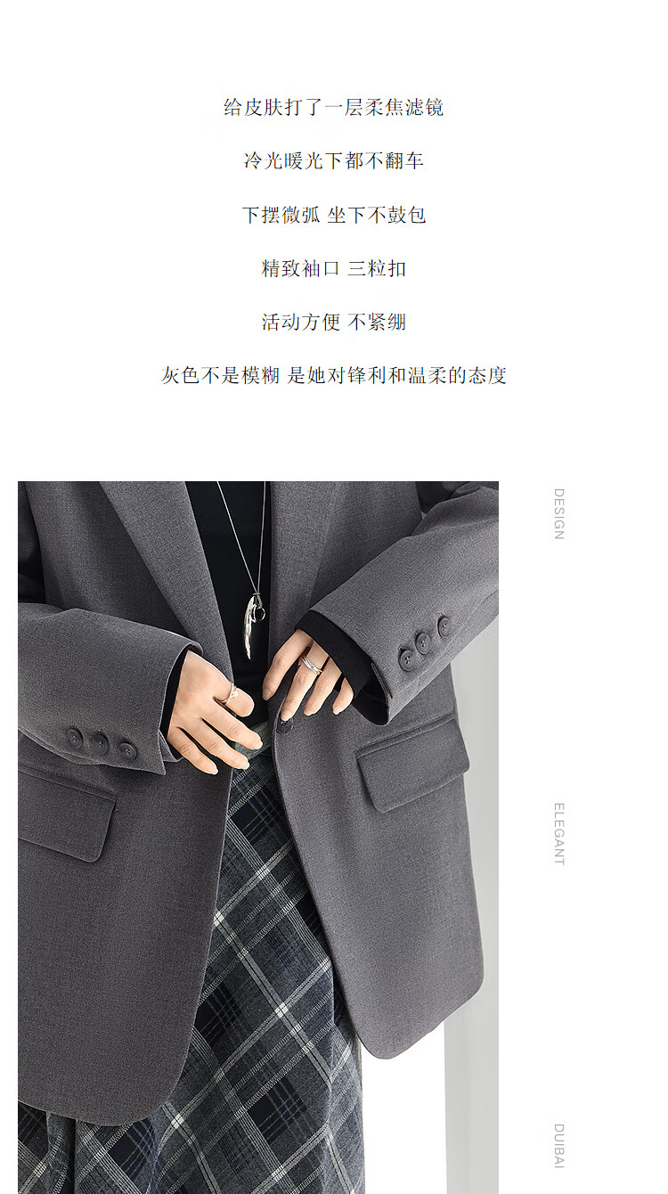 Dialogue (DUIBAI) gray high-end right shoulder small suit for women 2026 spring new style versatile temperament casual commuting suit jacket high-end gray L