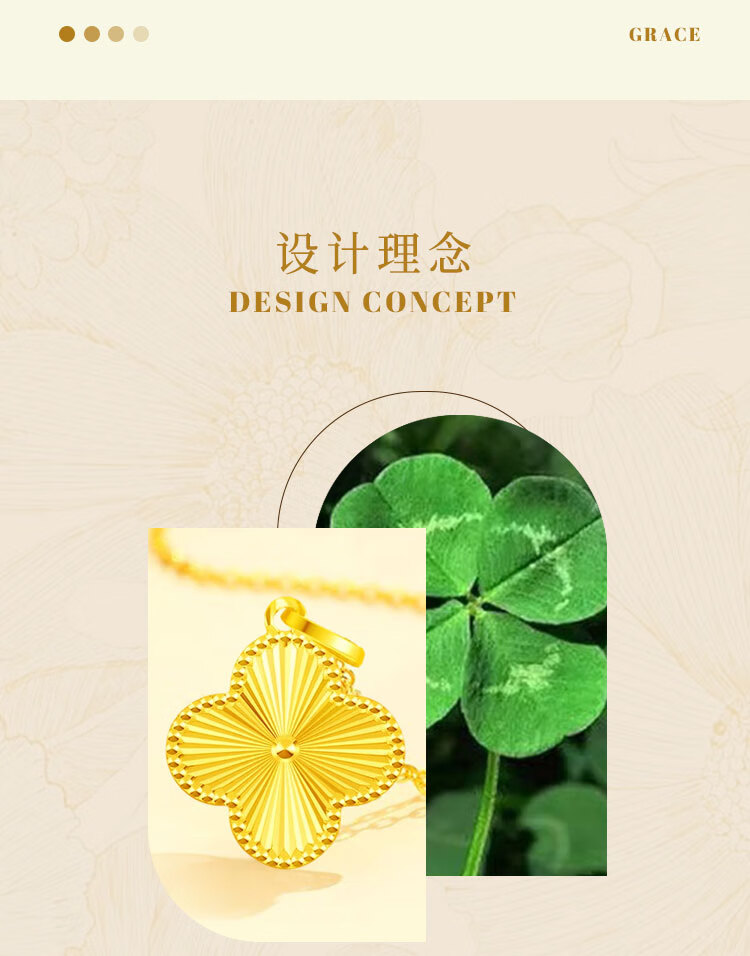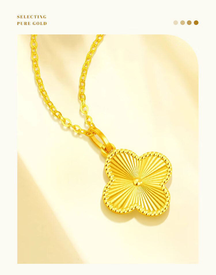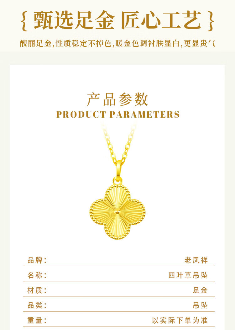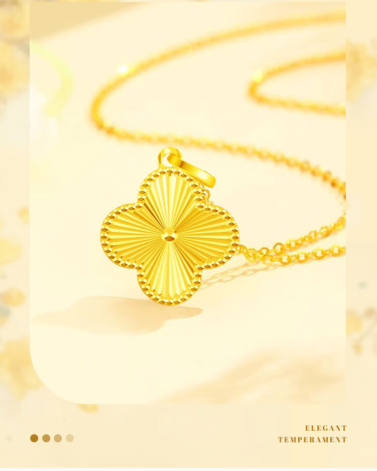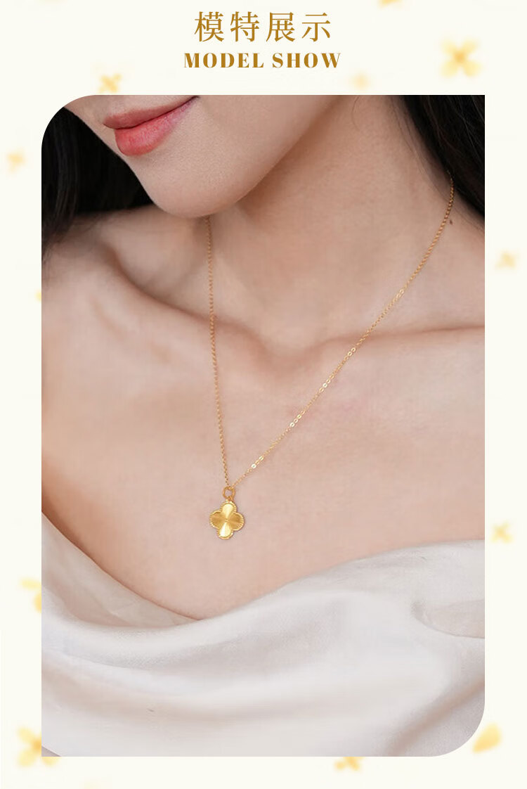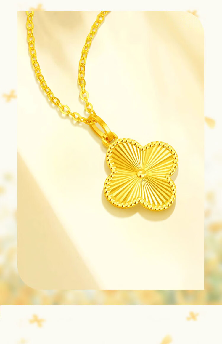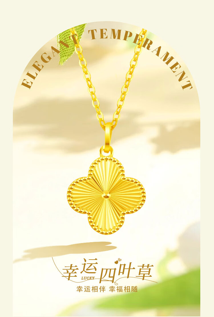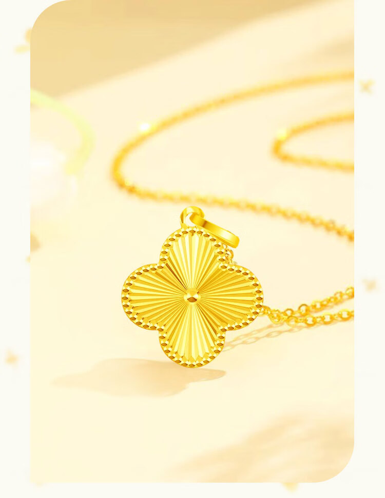 Lao Fengxiang four-leaf clover gold pendant for women, pure gold necklace, clavicle chain, Chinese Valentine's Day birthday gift for girlfriend and wife, four-leaf clover pendant with S925 silver chain, about 0.6g