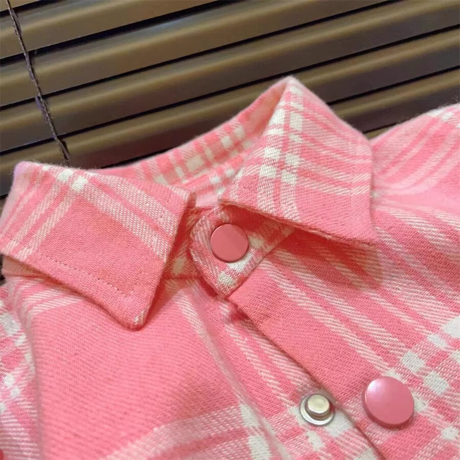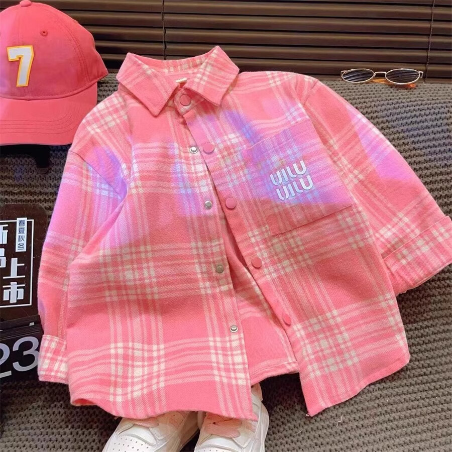 Girls' shirts autumn 2025 new style children's long-sleeved plaid shirts trendy brand jackets medium and large children's tops pink 140