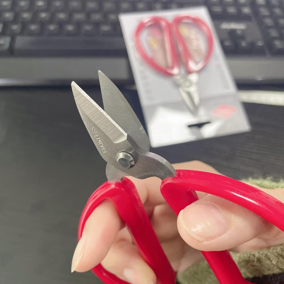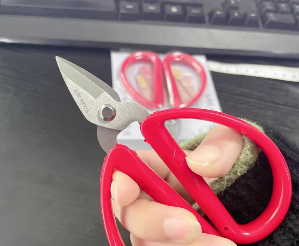 He Jiagong stainless steel plastic handle nail scissors, ultra-sharp hand scissors, small filament scissors, household short-blade scissors, stainless steel short-blade hand scissors (pack of 6)