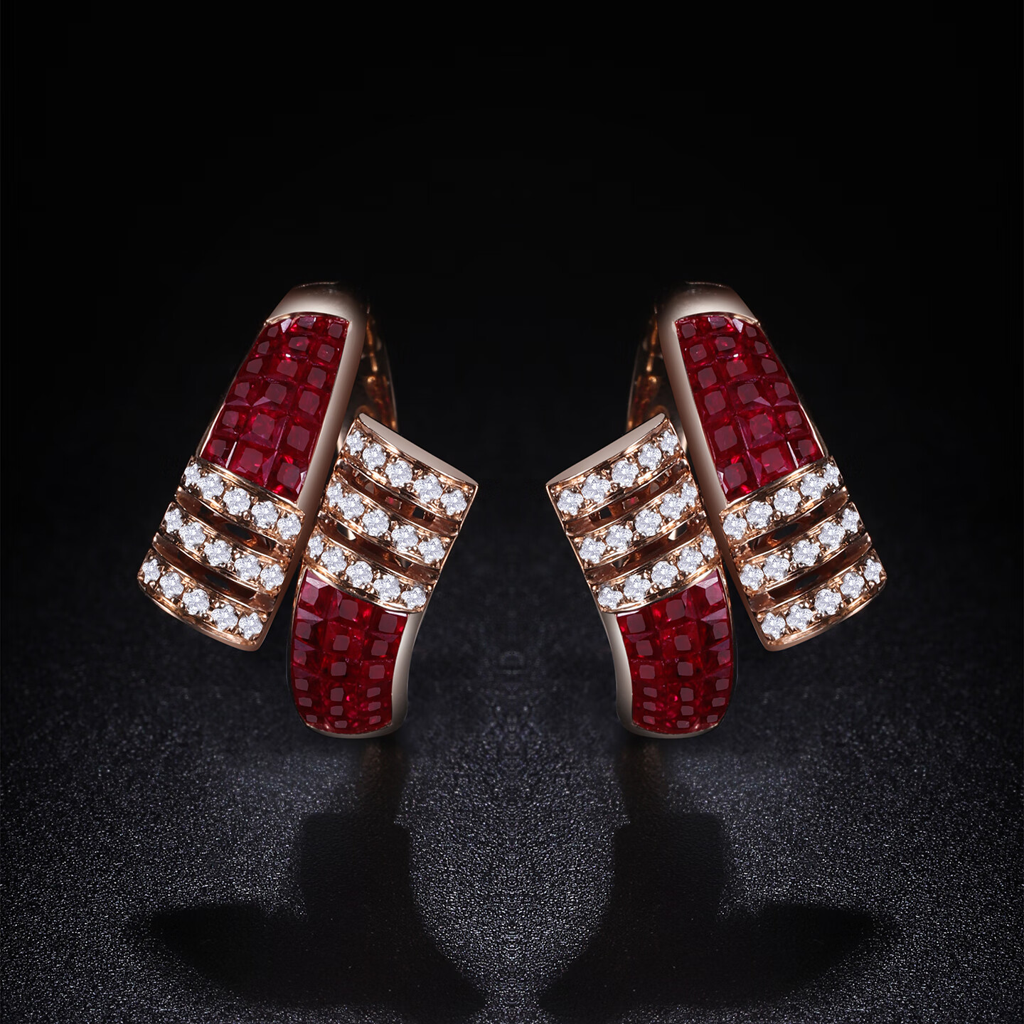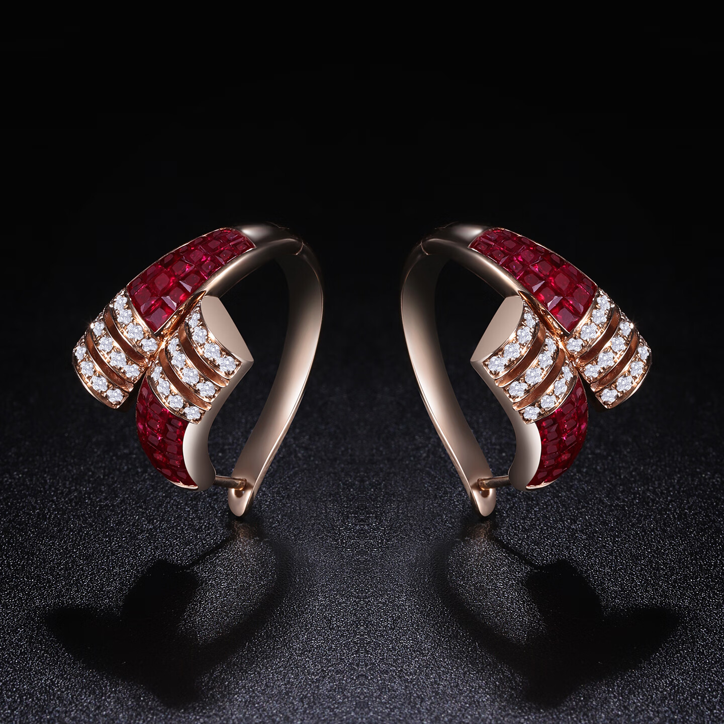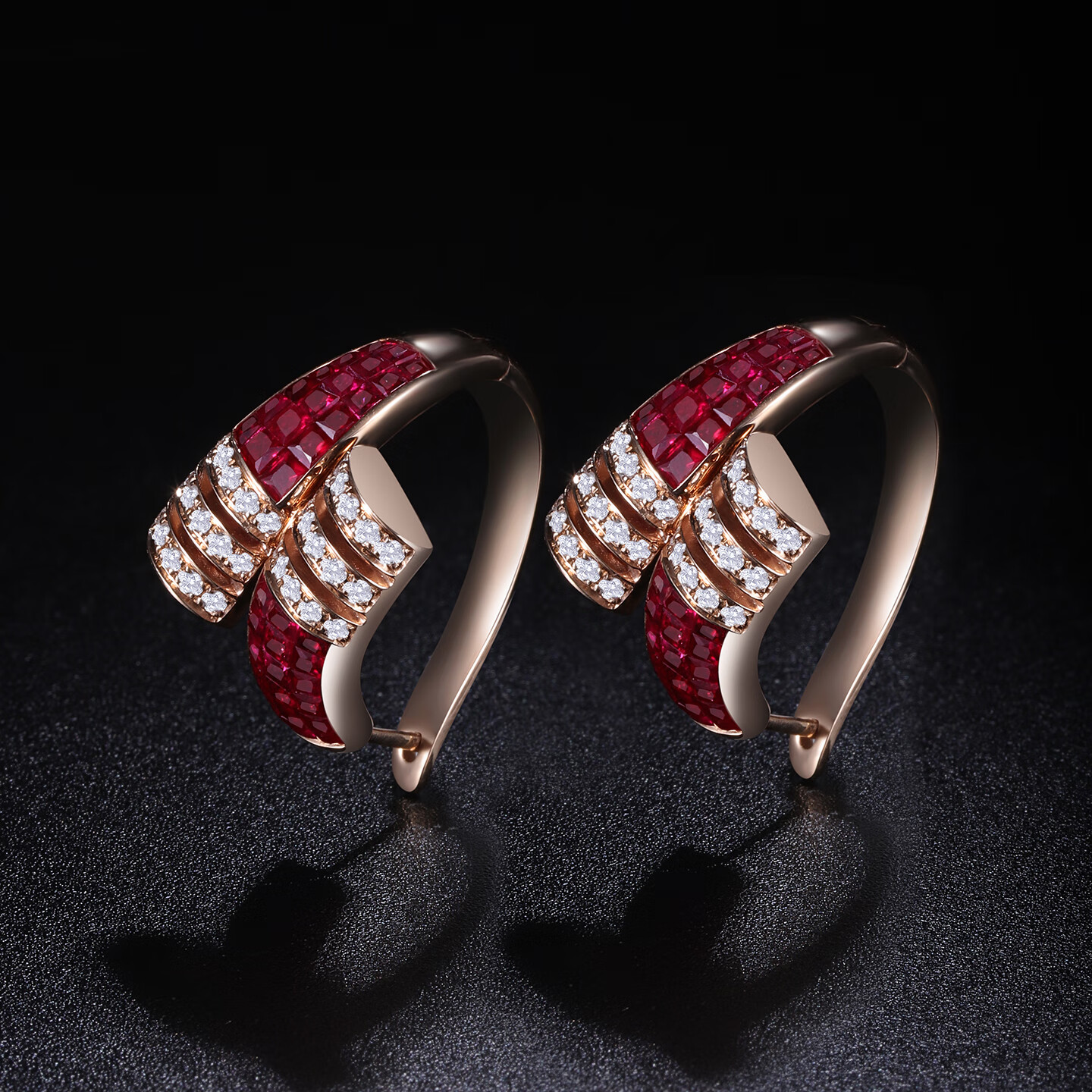Tingliang ruby earrings 18K gold diamond inlaid with snake design natural ruby earrings 5.6 carats luxury style in stock