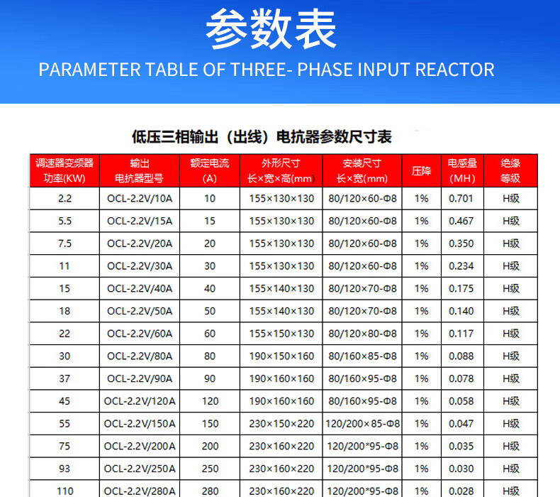 Reactor inverter 75kw110kw15kw 400a output three-phase DC dcl (incoming line) input reactor 30KW-80A