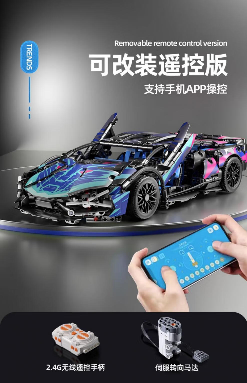 Disney building blocks toy Lamborghini building blocks children's gift assembly model remote control car boy toy racing car 2025 price 16 in 1 cannon