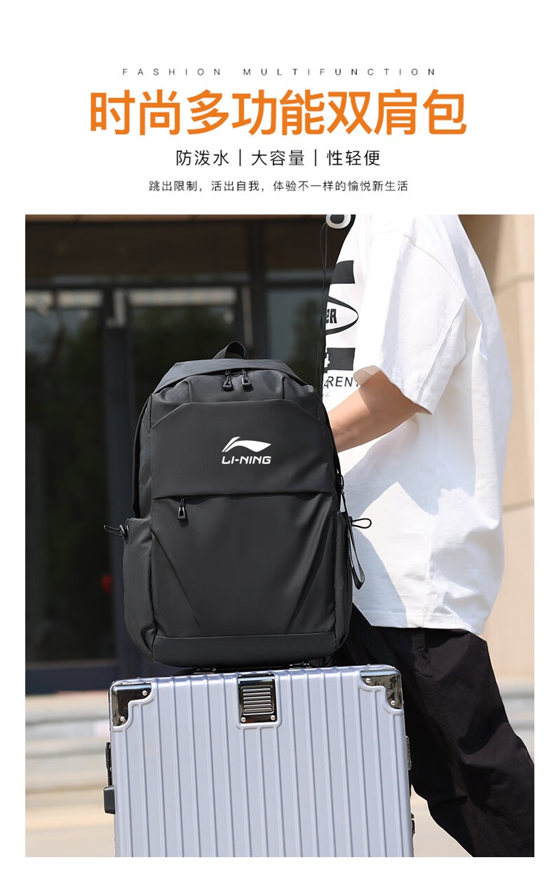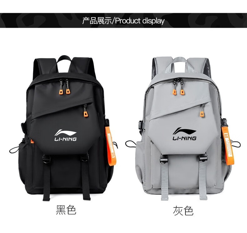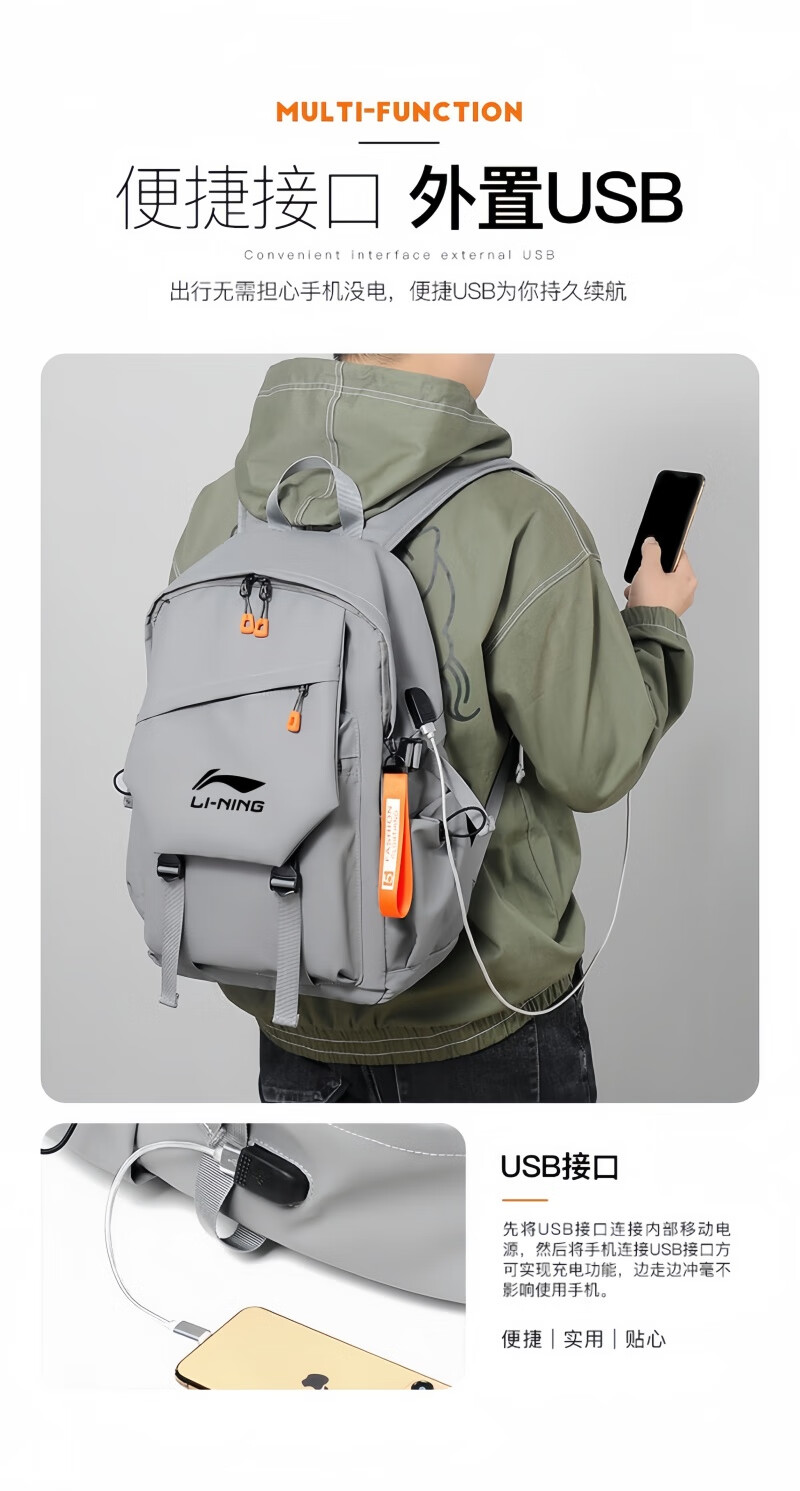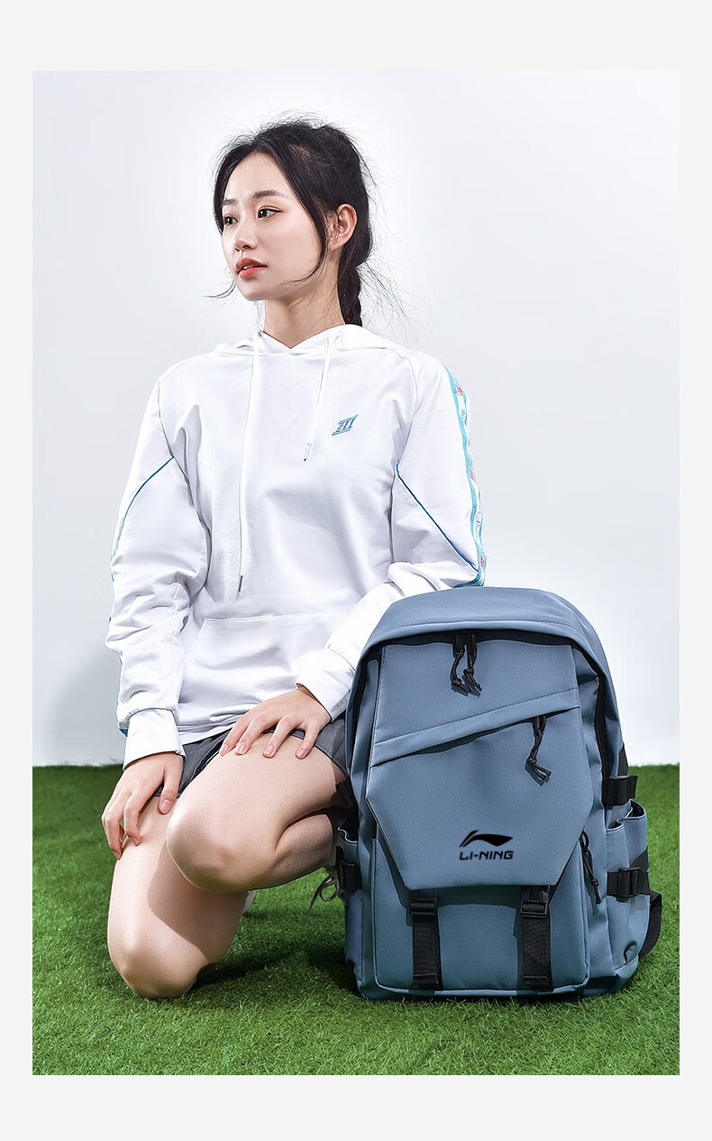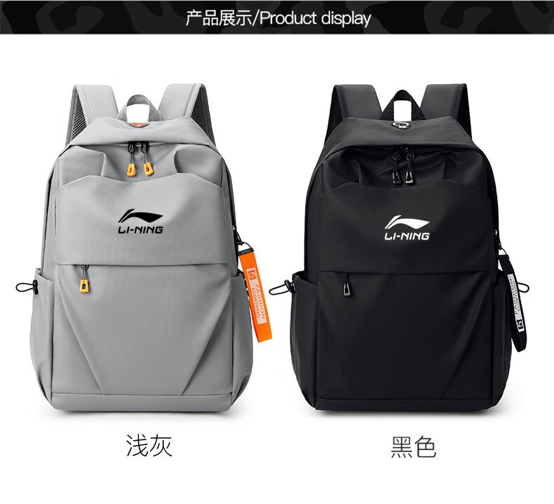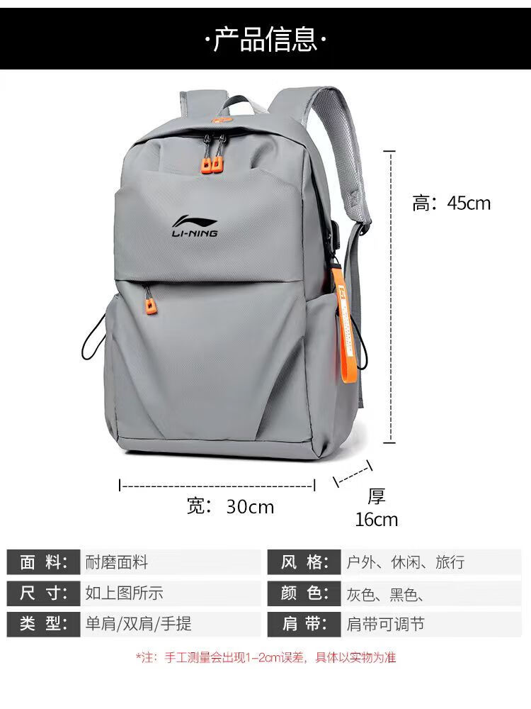 LI-NING Li Ning backpack large capacity sports outdoor lightweight travel backpack computer bag junior high school and high school student bag LN0362 gray
