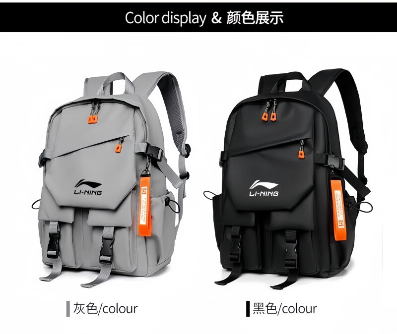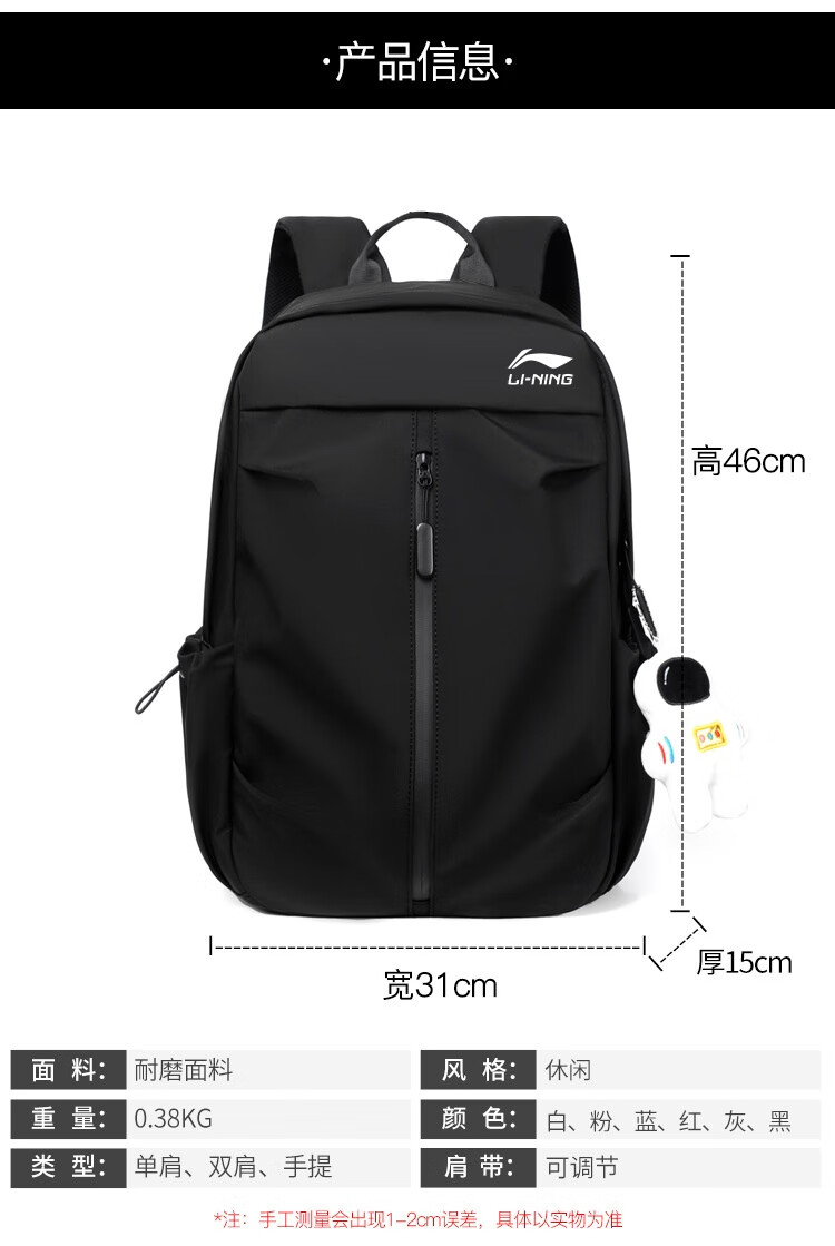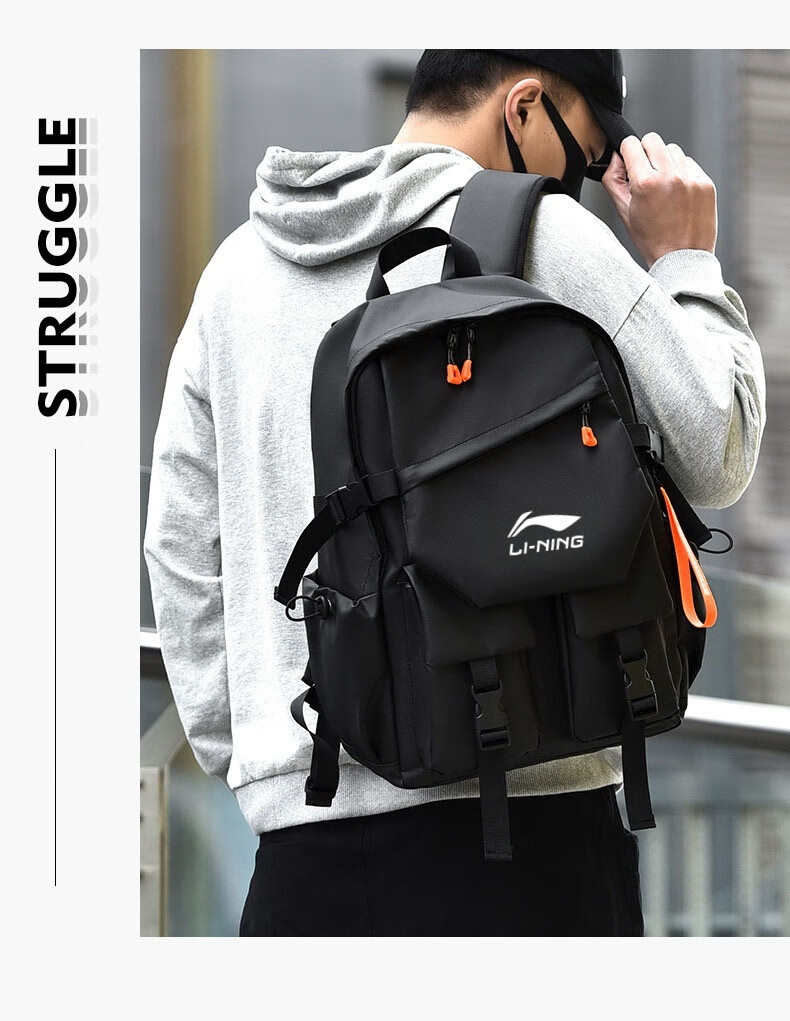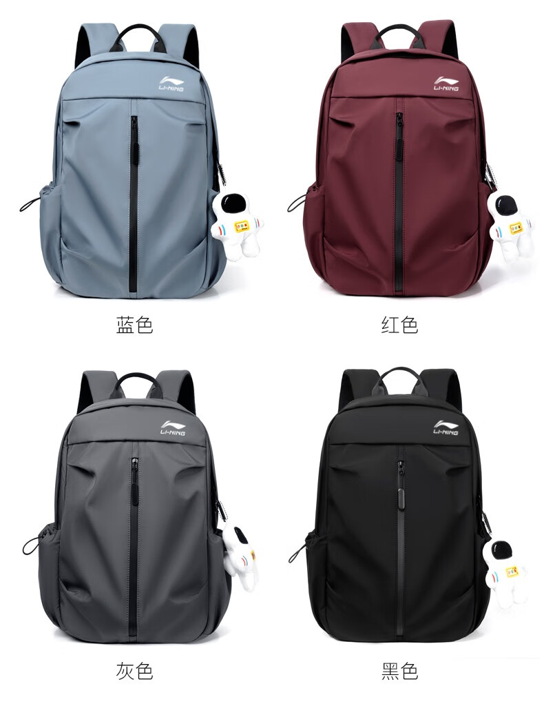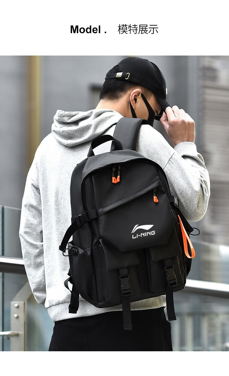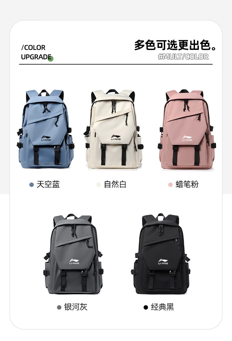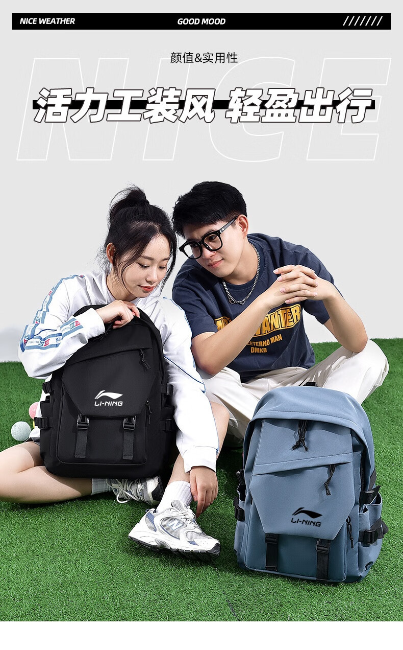 LI-NING Li Ning backpack large capacity sports outdoor lightweight travel backpack computer bag junior high school and high school student bag LN0362 gray