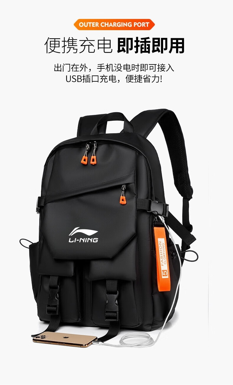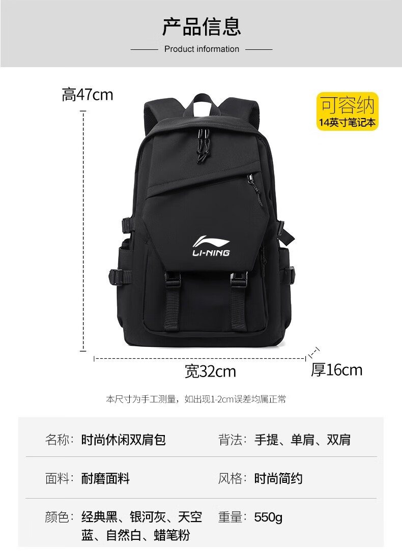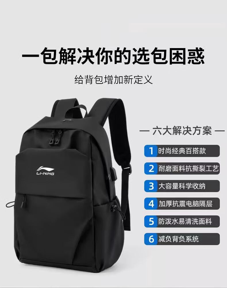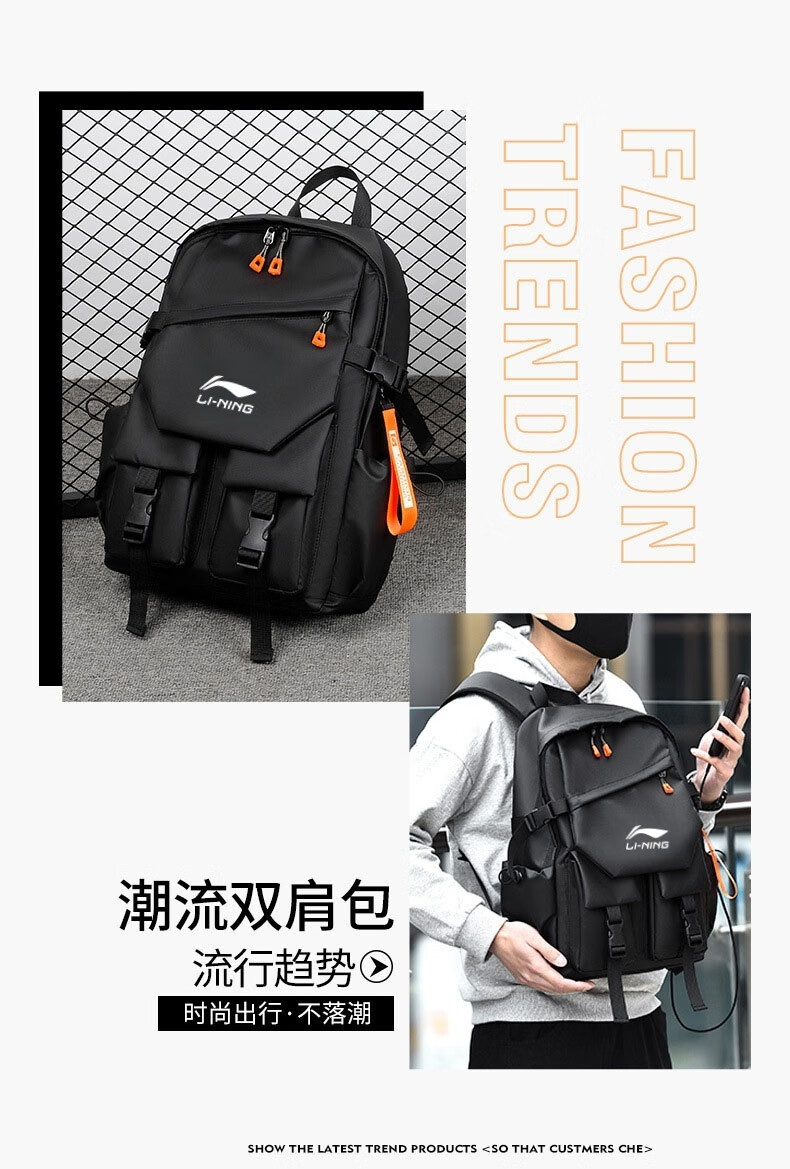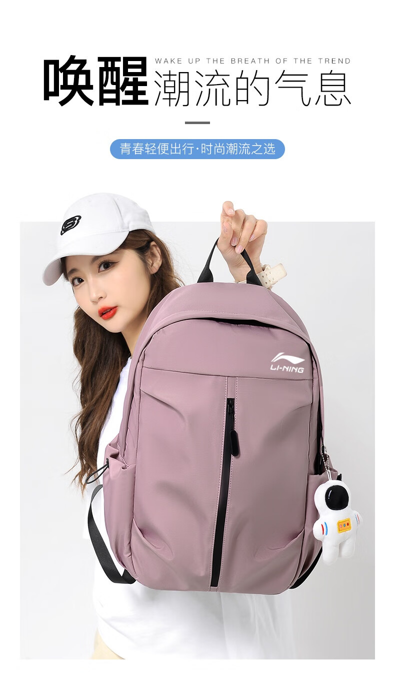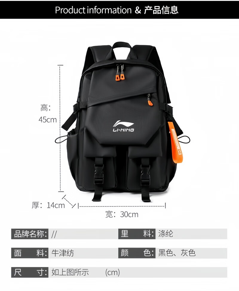 LI-NING Li Ning backpack large capacity sports outdoor lightweight travel backpack computer bag junior high school and high school student bag LN0362 gray