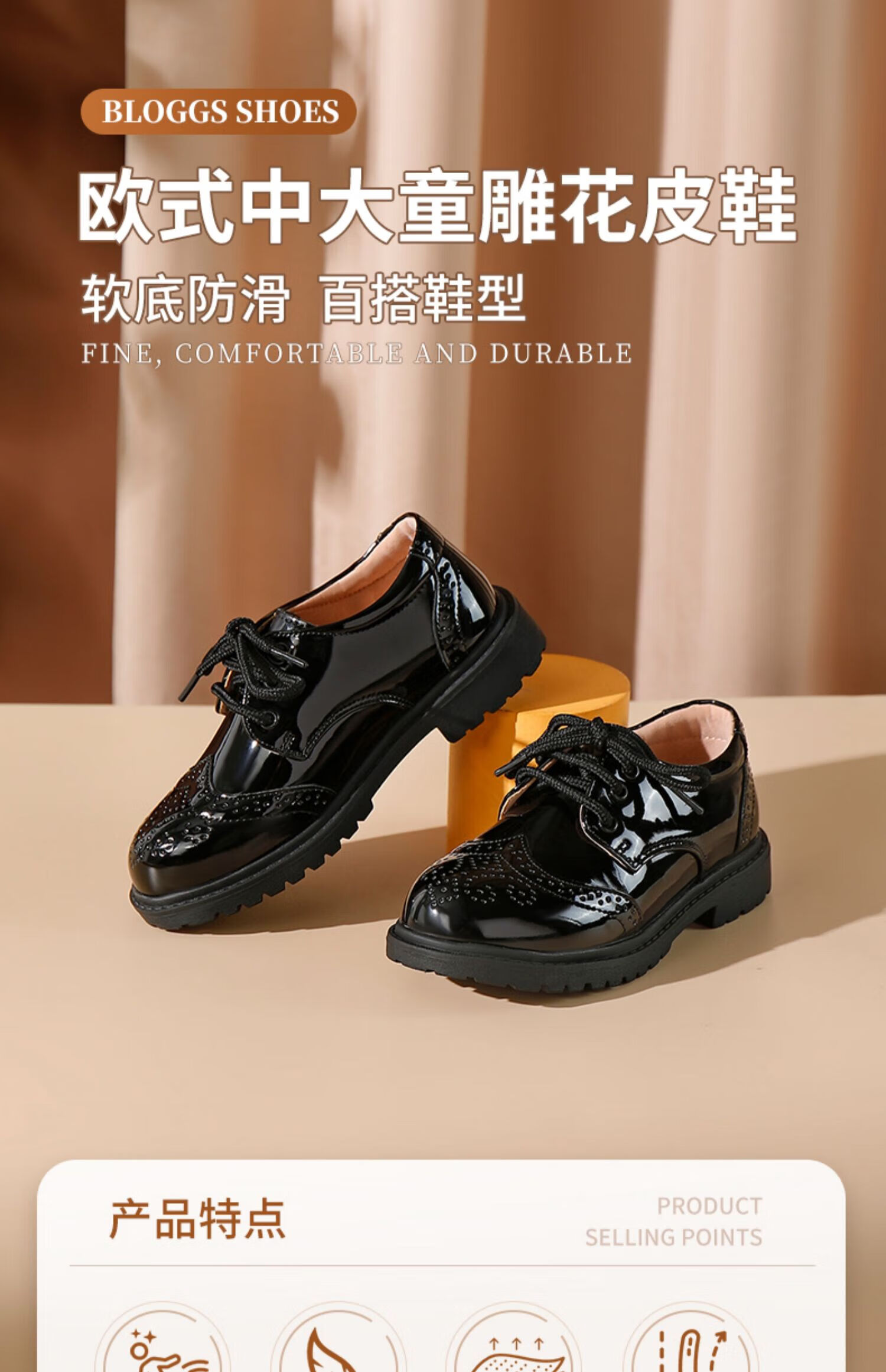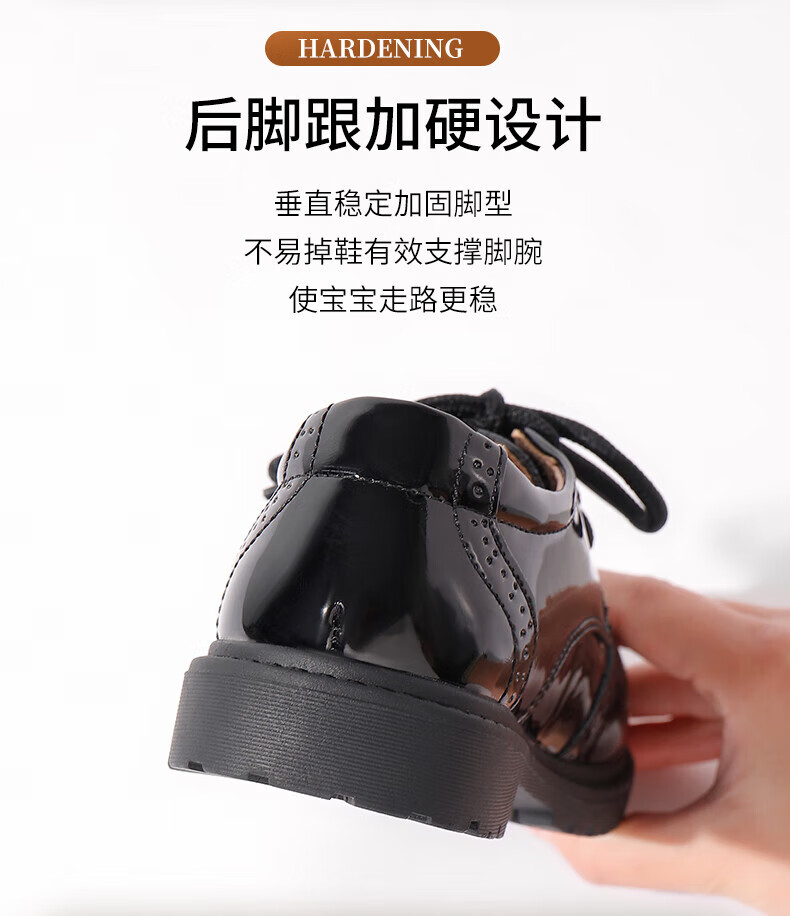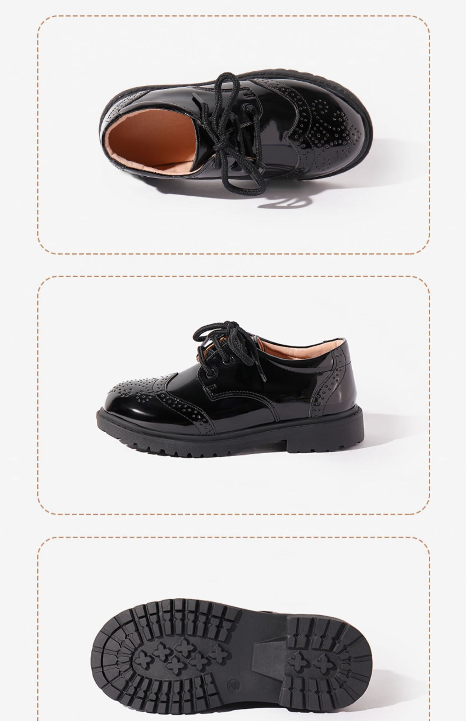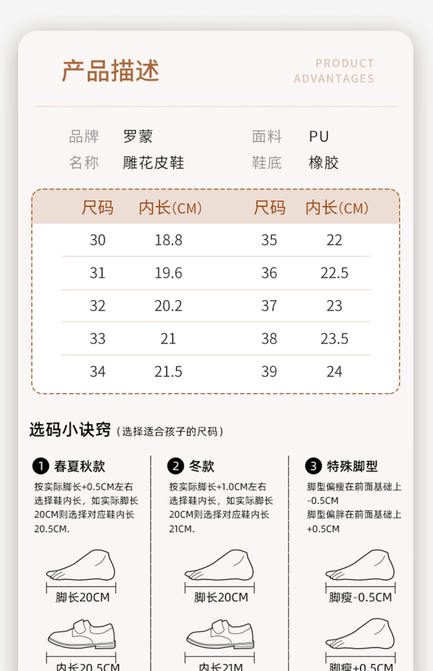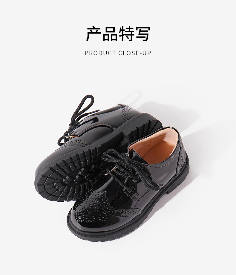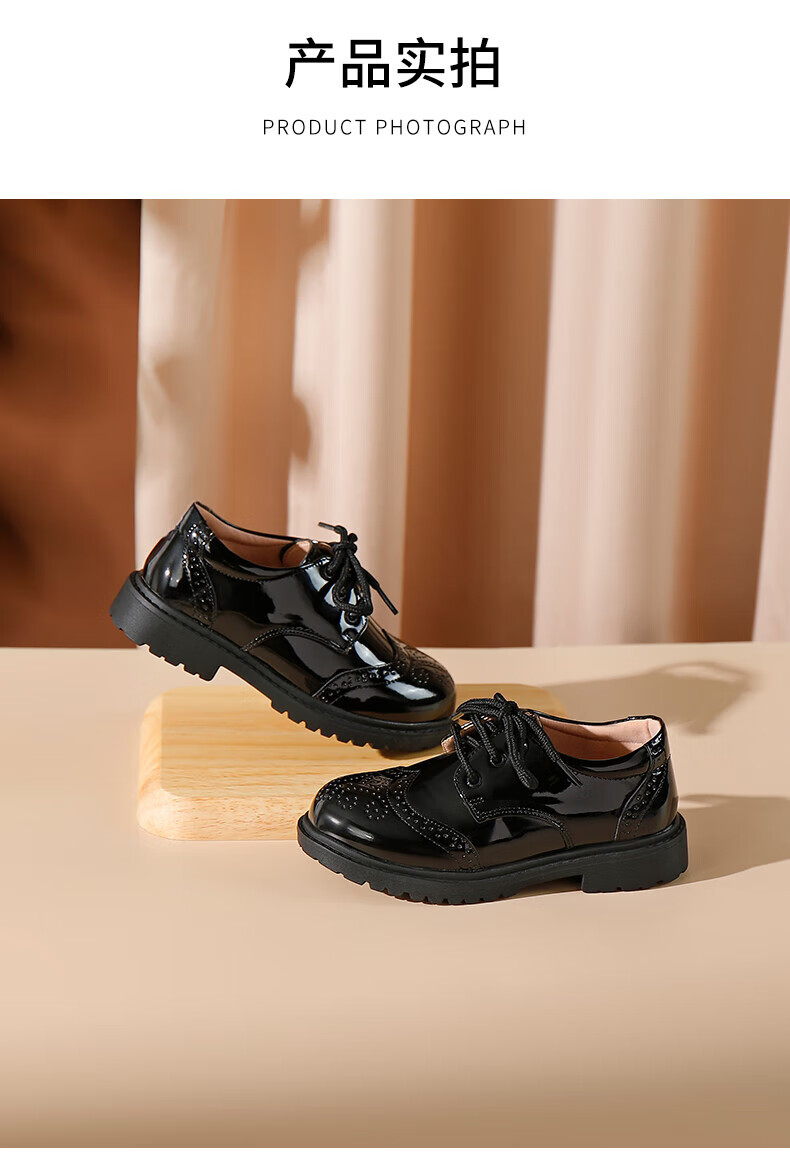 Romon boys' leather shoes soft sole children's black British style performance suit boys' performance shoes primary school students hollow leather shoes black hollow leather shoes 33 inner length 21 cm