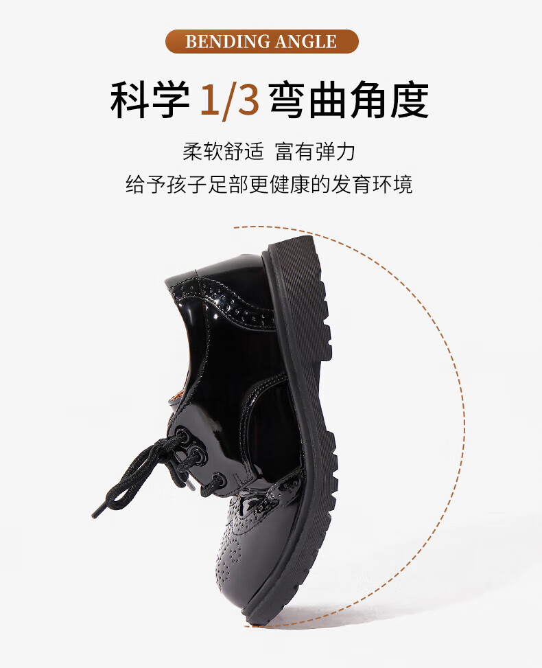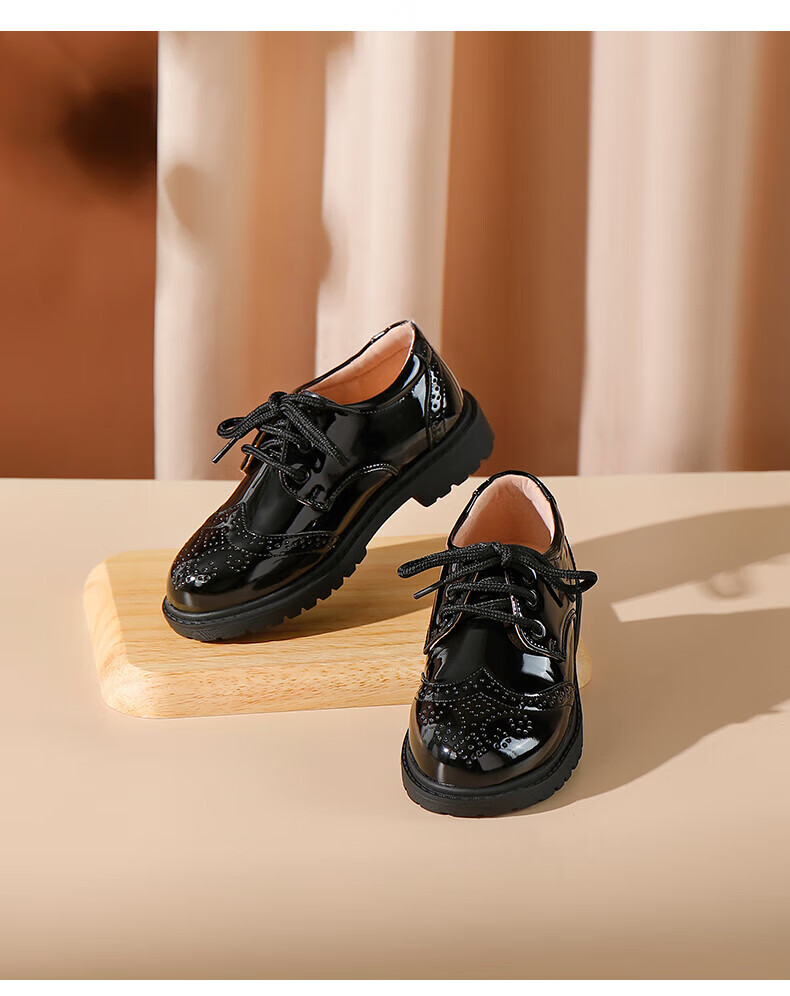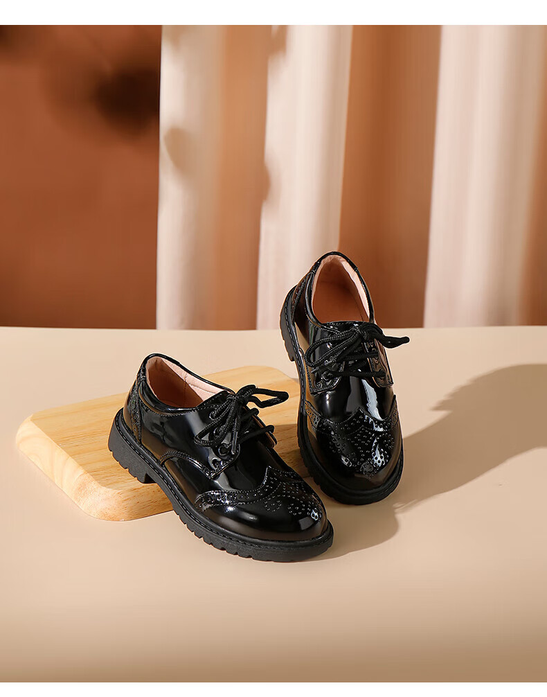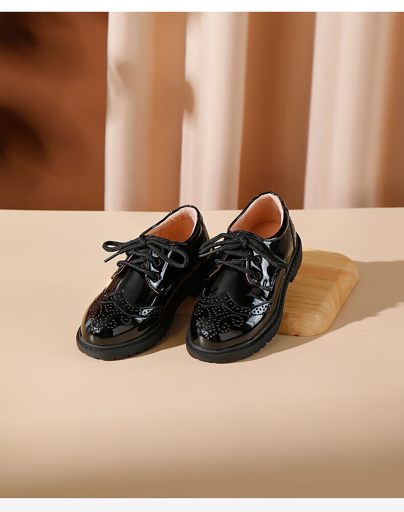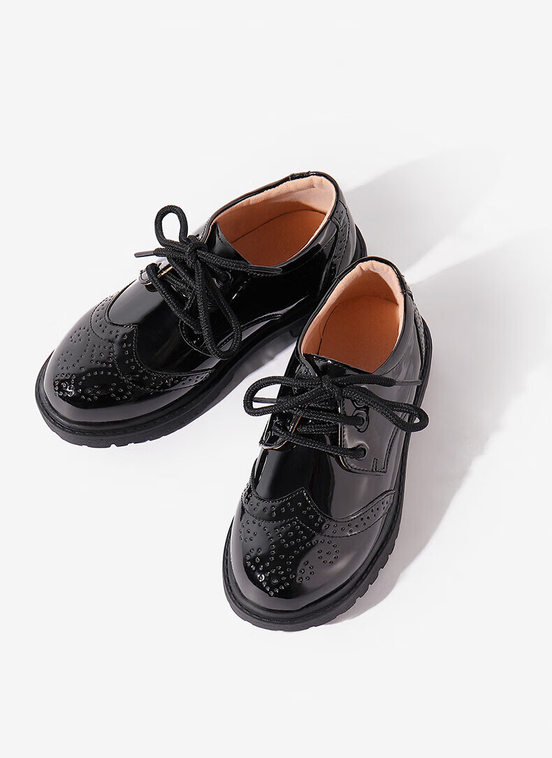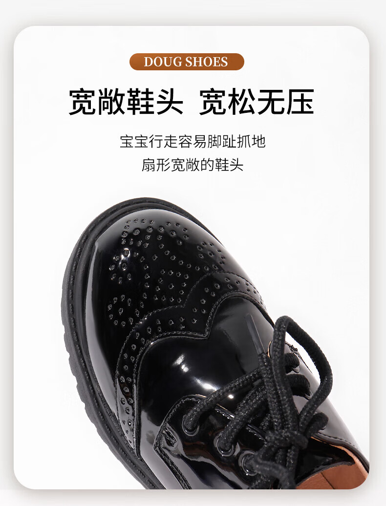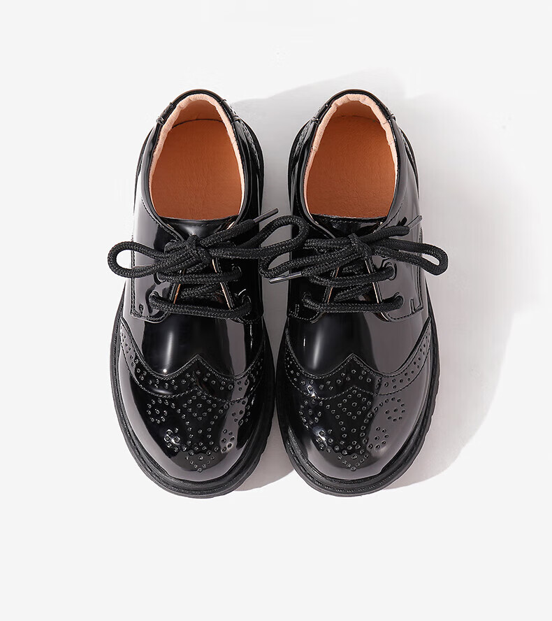 Romon boys' leather shoes soft sole children's black British style performance suit boys' performance shoes primary school students hollow leather shoes black hollow leather shoes 33 inner length 21 cm
