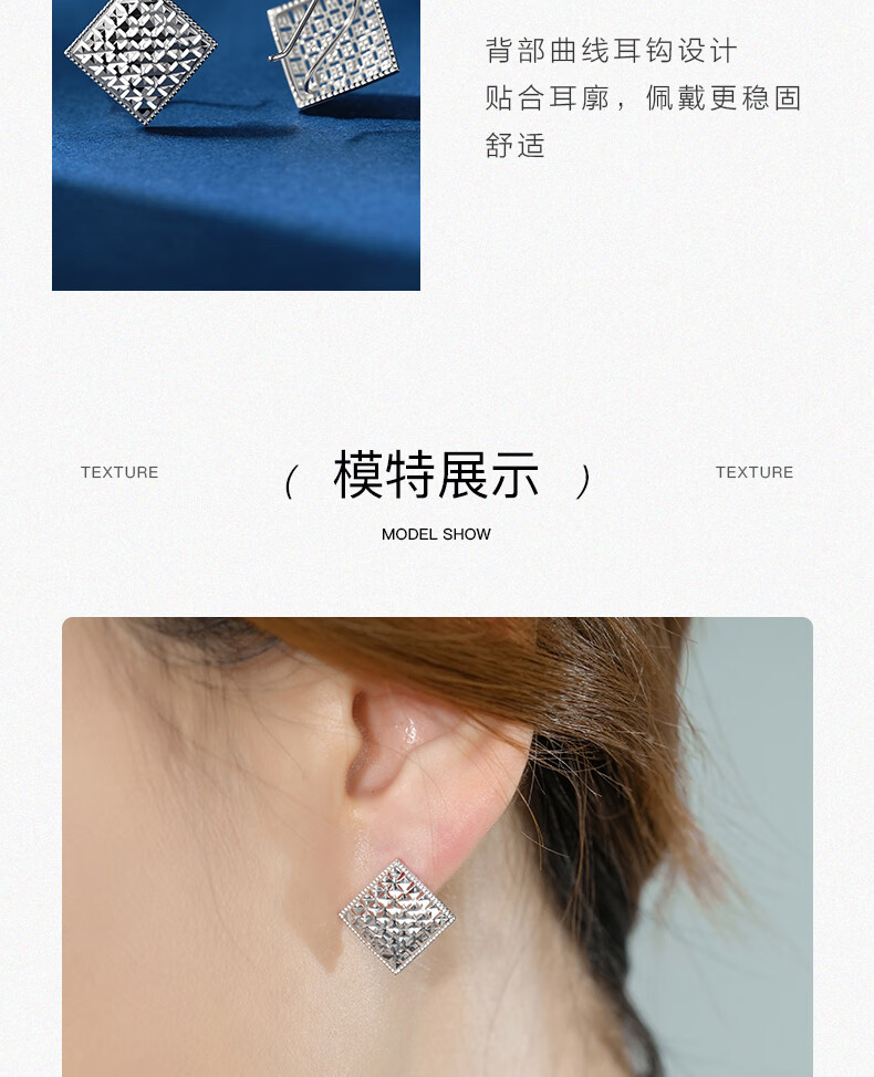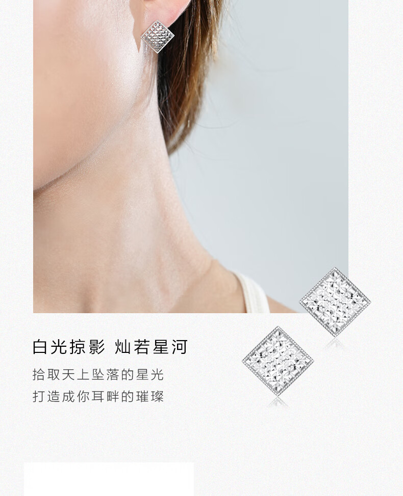 Chinese jewelry pt950 platinum earrings square sparkling earrings, Chinese Valentine's Day gift for girlfriend, platinum square shining star, including labor cost 338 yuan/piece 3.50g