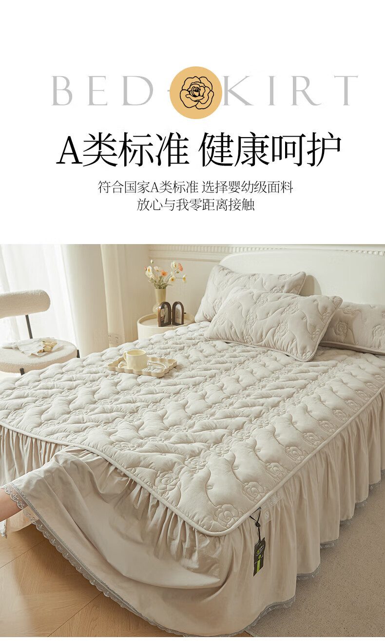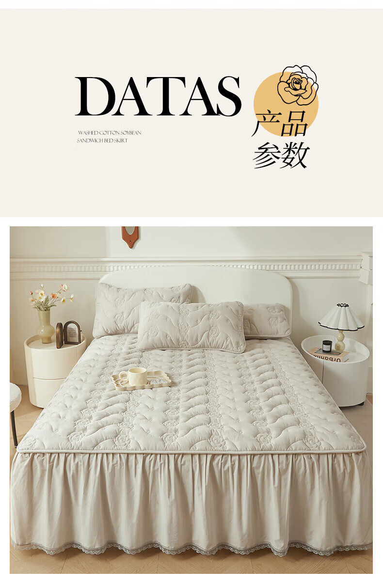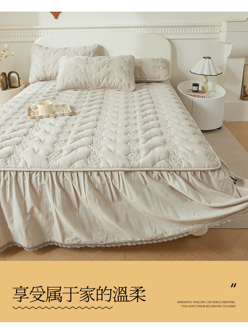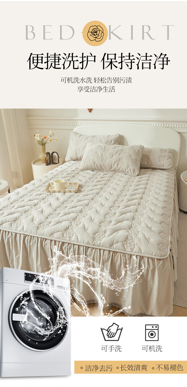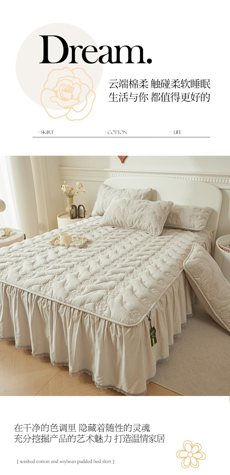 Cotton bed skirt single piece 100 pure cotton edge bedspread household mattress protector washable bed cover three-piece set Baby blue skin-friendly cotton soft and breathable 180CM*200CM bed skirt single piece