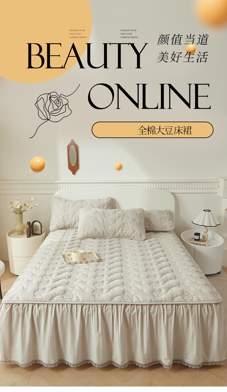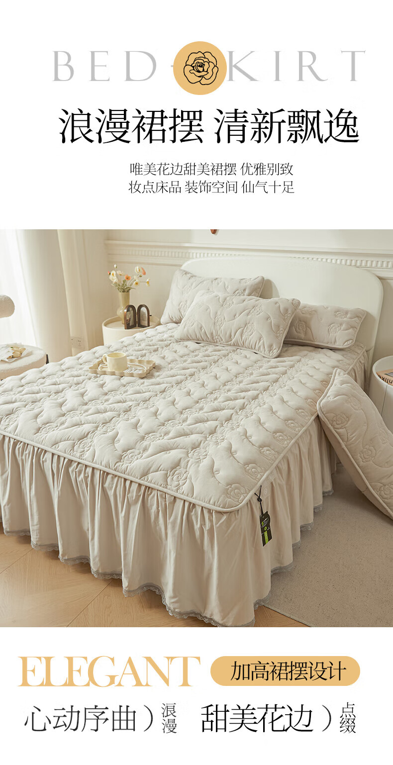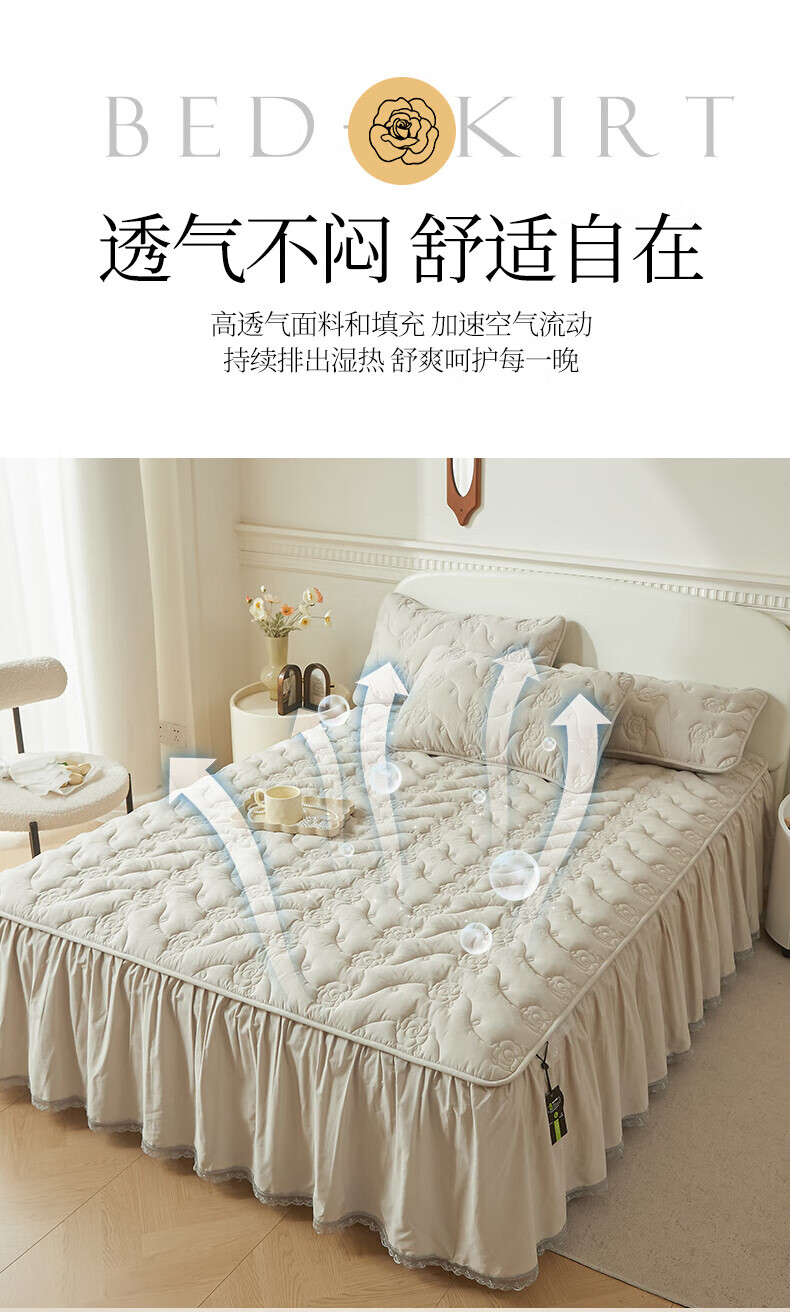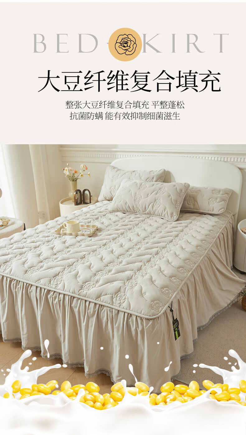 Cotton bed skirt single piece 100 pure cotton edge bedspread household mattress protector washable bed cover three-piece set Baby blue skin-friendly cotton soft and breathable 180CM*200CM bed skirt single piece