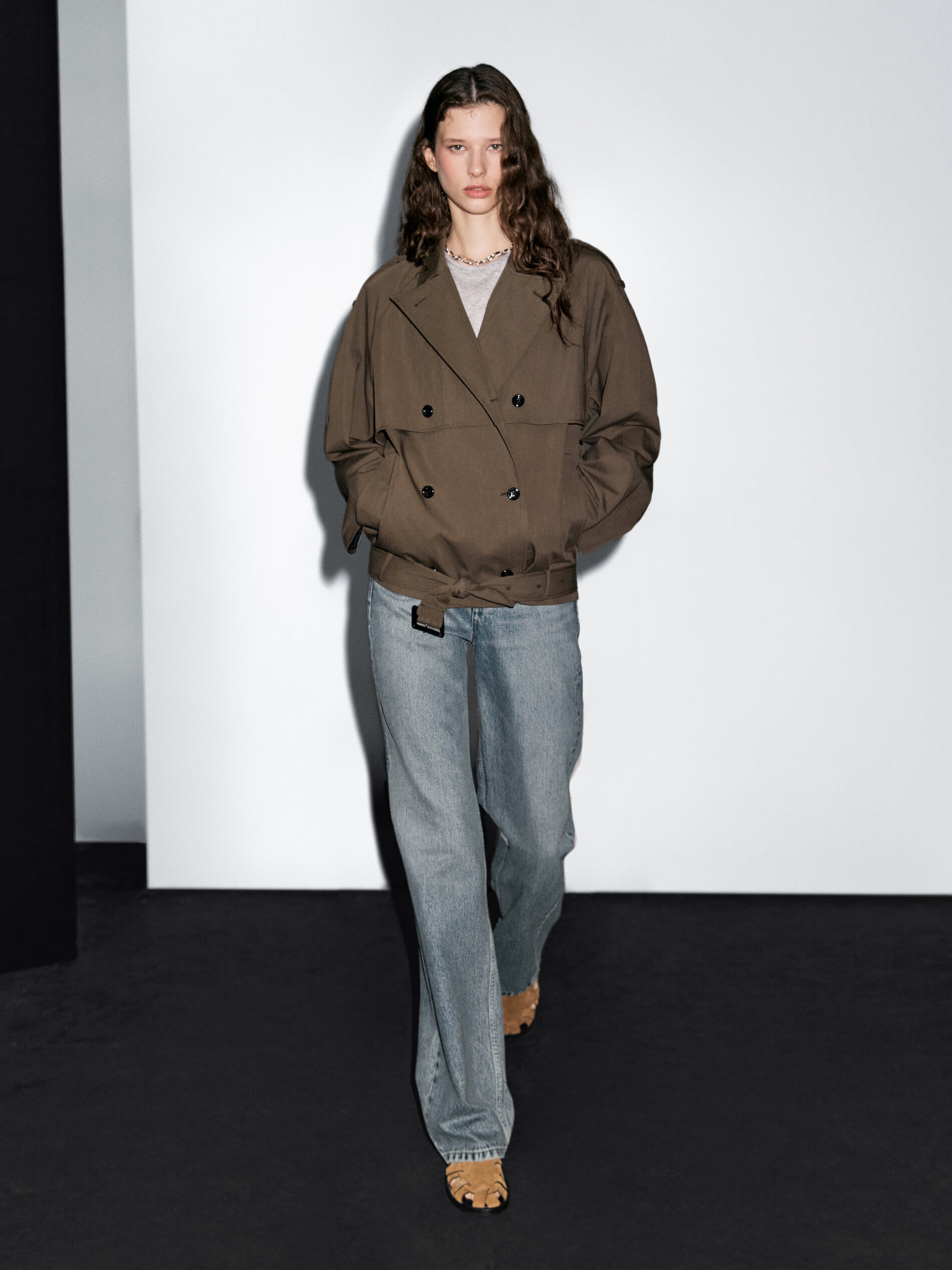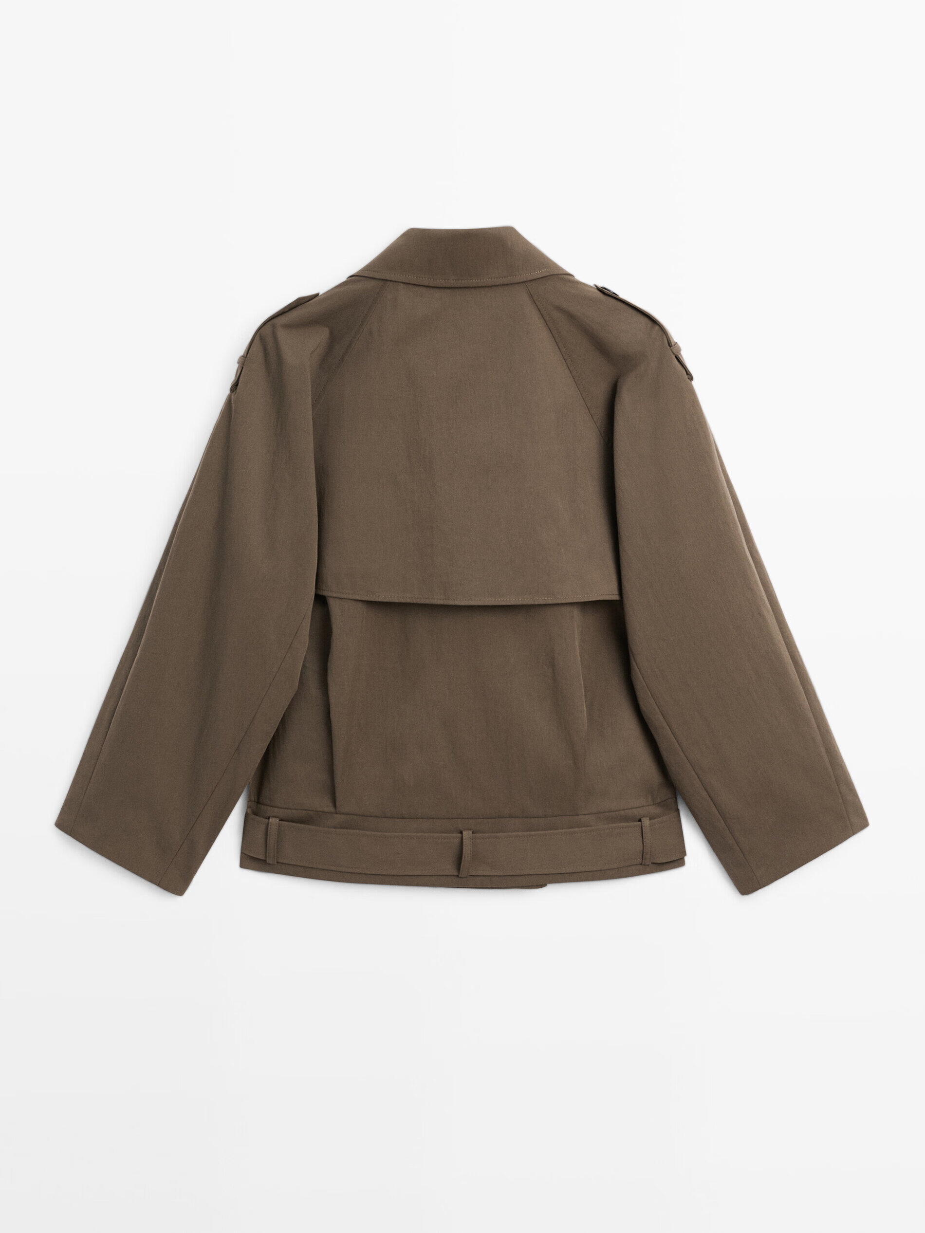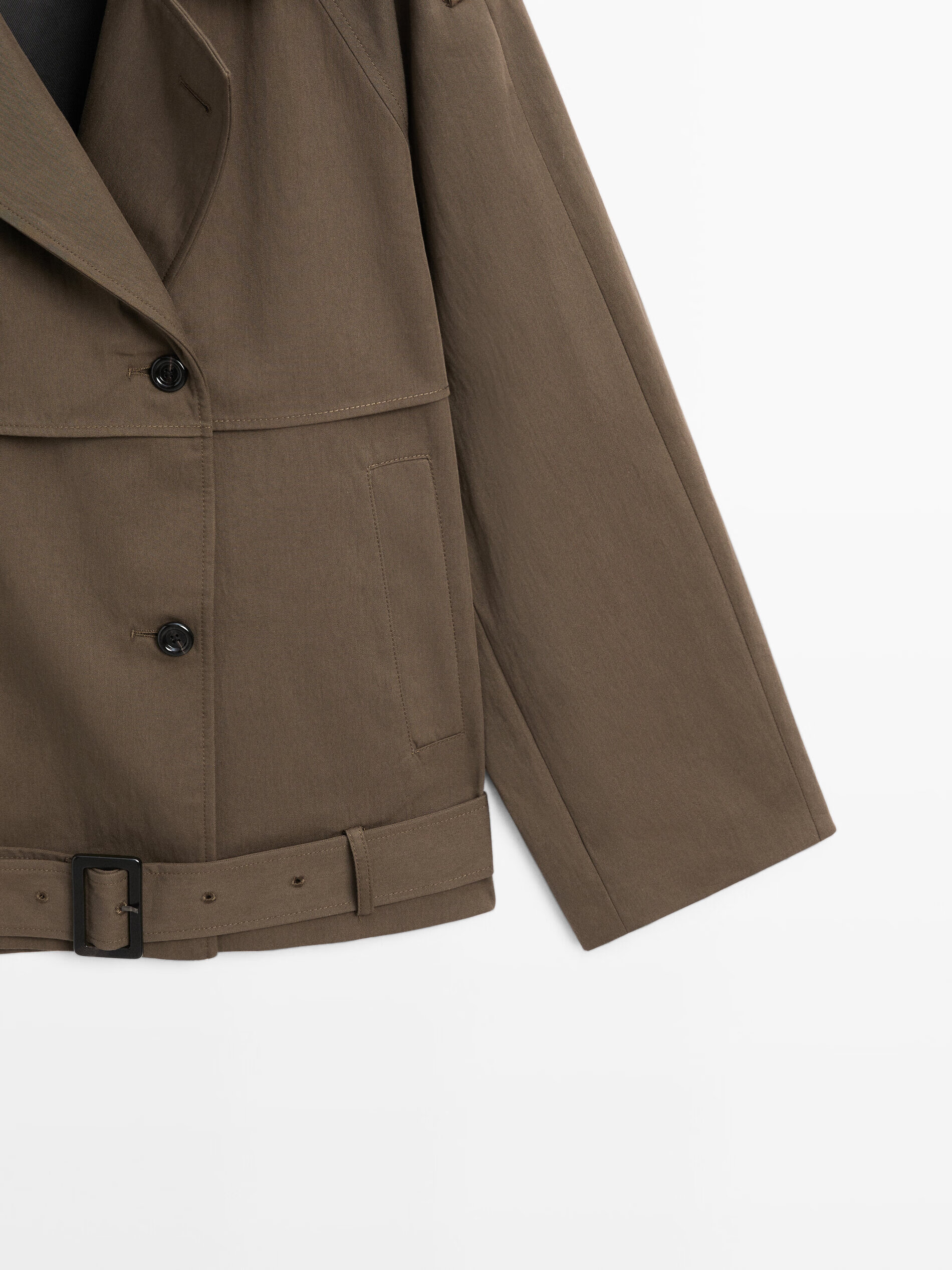 Massimo Dutti Discount Upgrade 2026 Women's Urban Versatile Casual Style Belt Short Windbreaker Jacket 06777777 Dark Brown XS (CN 165/84A)
