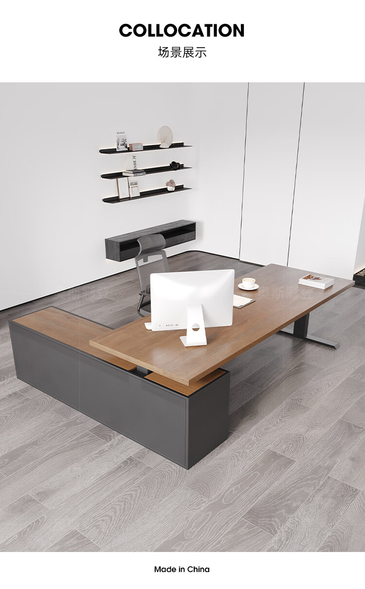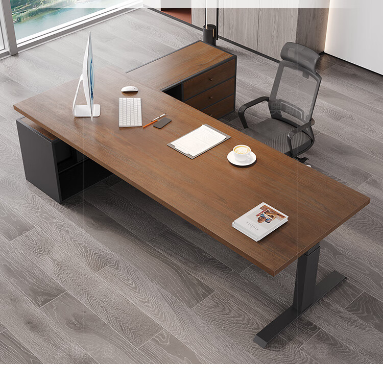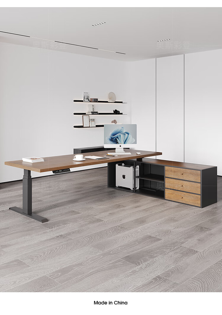 Osladen solid wood electric lift table boss desk desk workbench chairman manager computer desk executive desk with side cabinets imported New Zealand pine 180 80 4.5cm thick