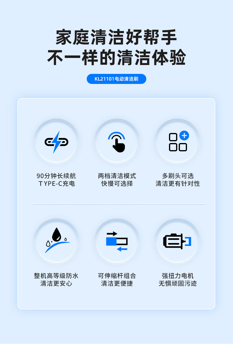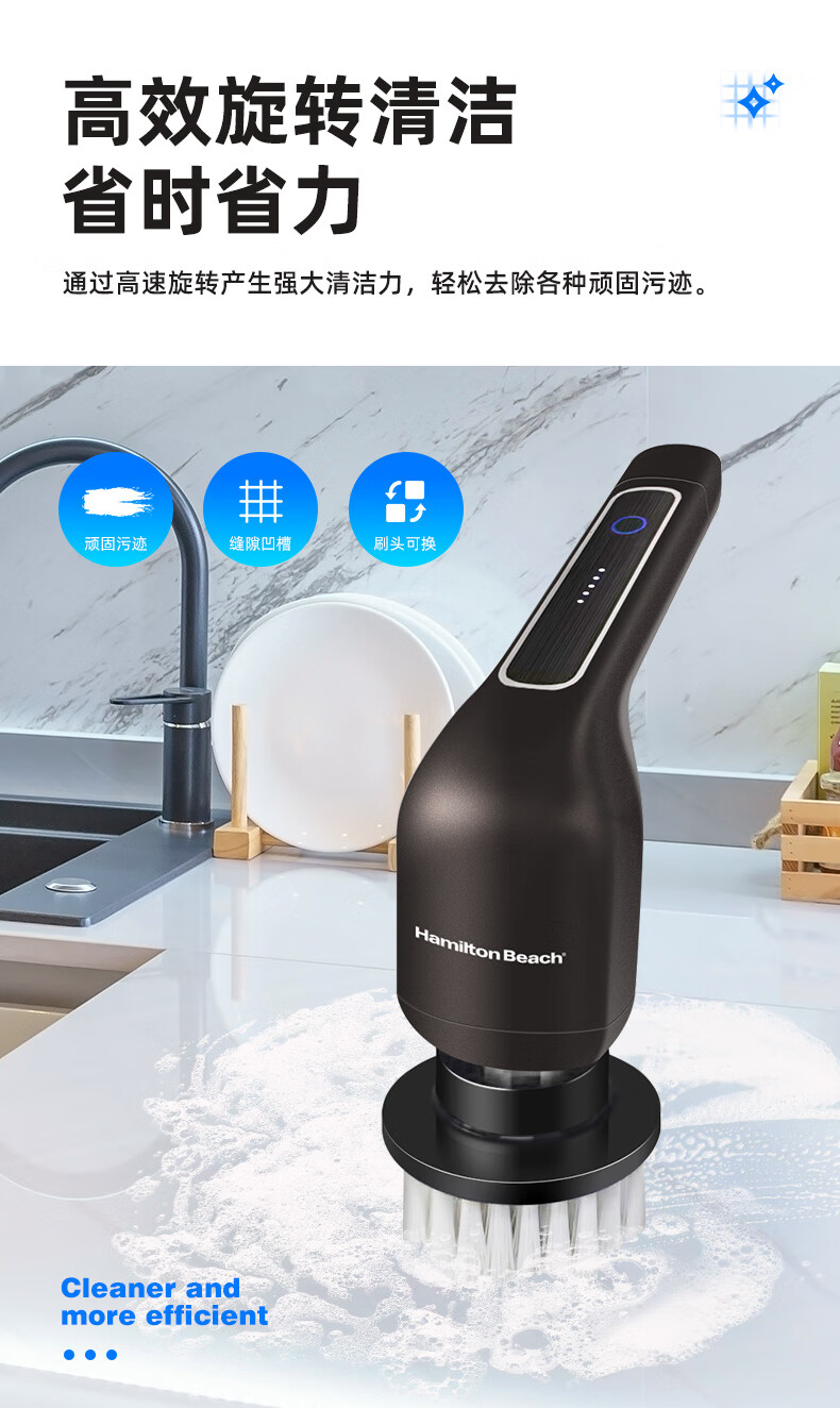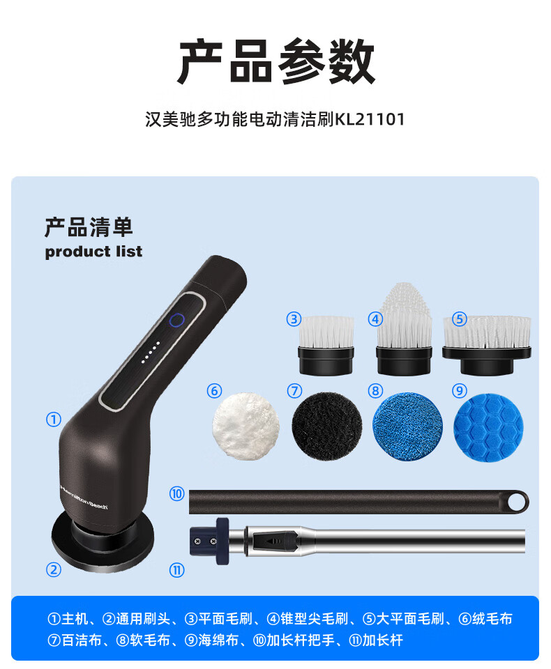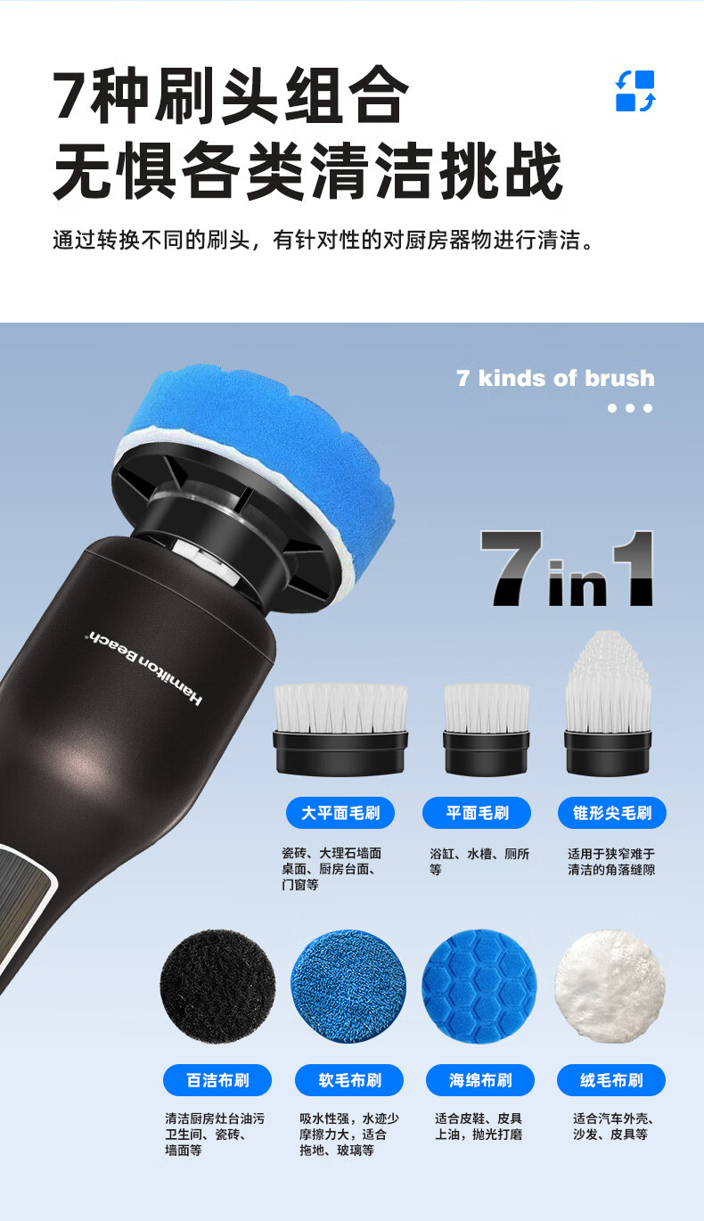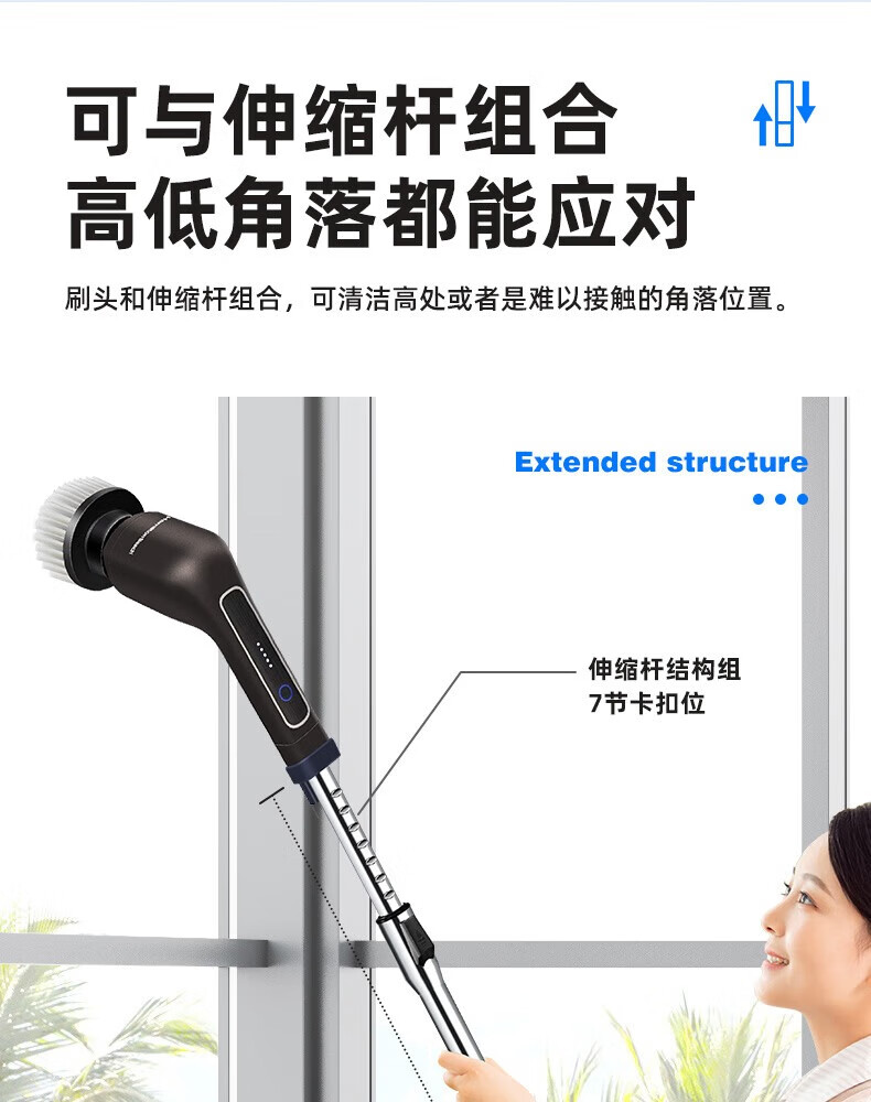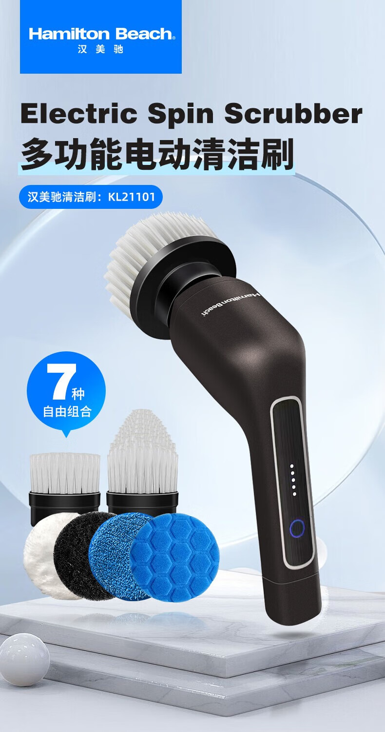 Hamilton electric cleaning brush household electric retractable cleaning brush household toilet cleaning artifact wireless handheld kitchen cleaning brush kitchen bathroom tile toilet KL21101 7-in-1 handheld model - black with brush head