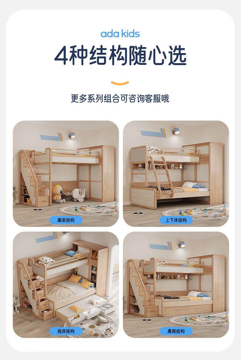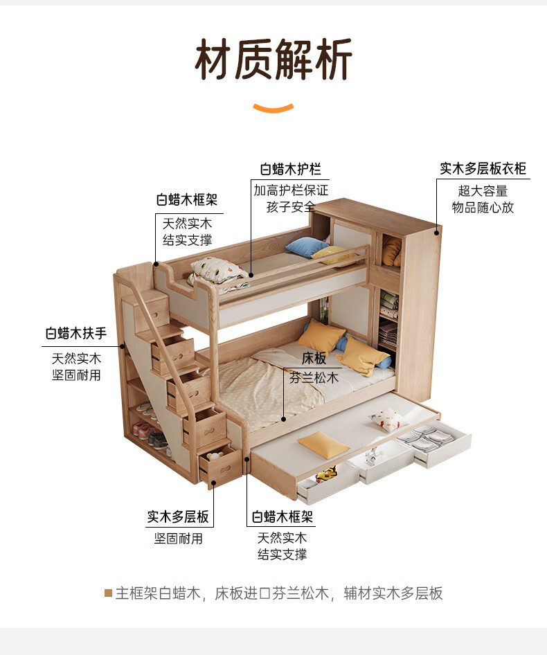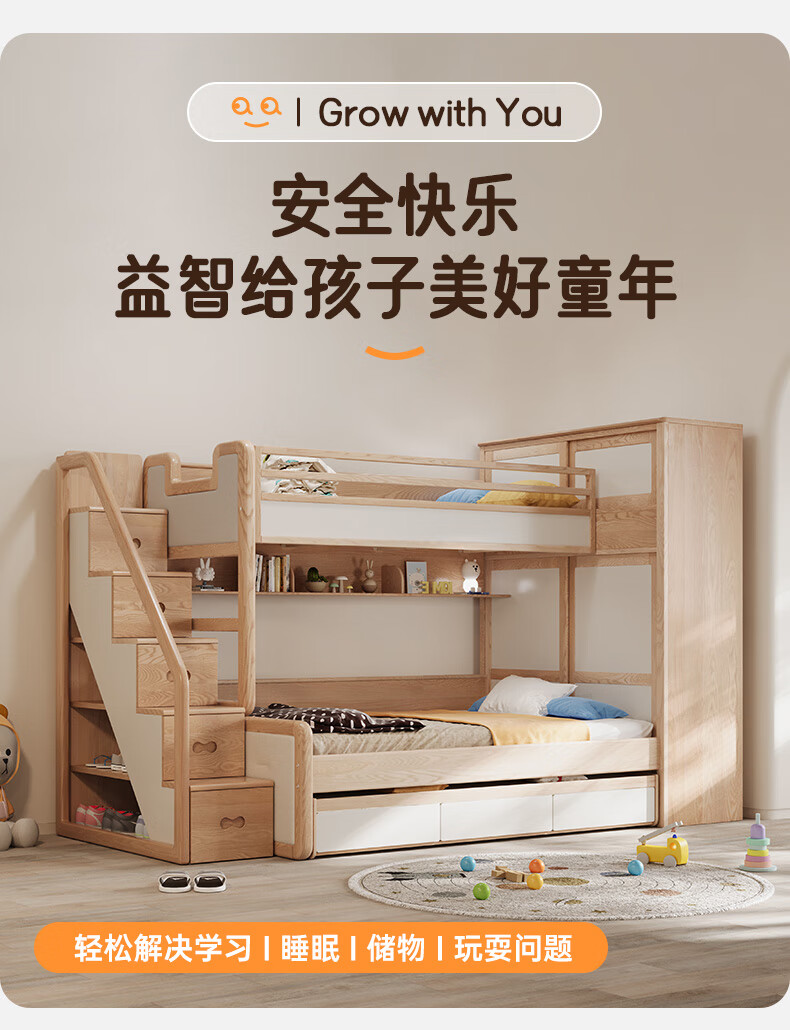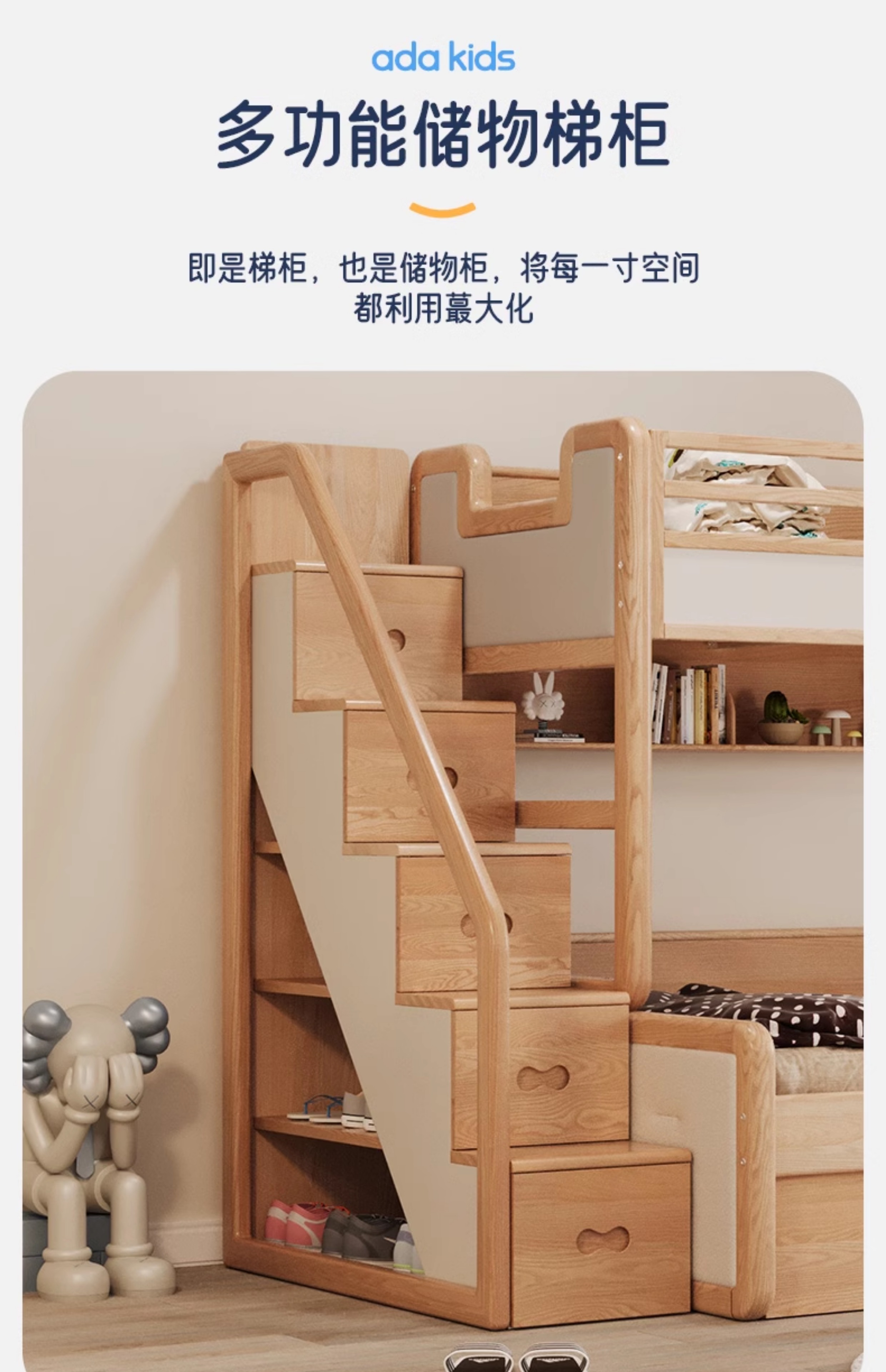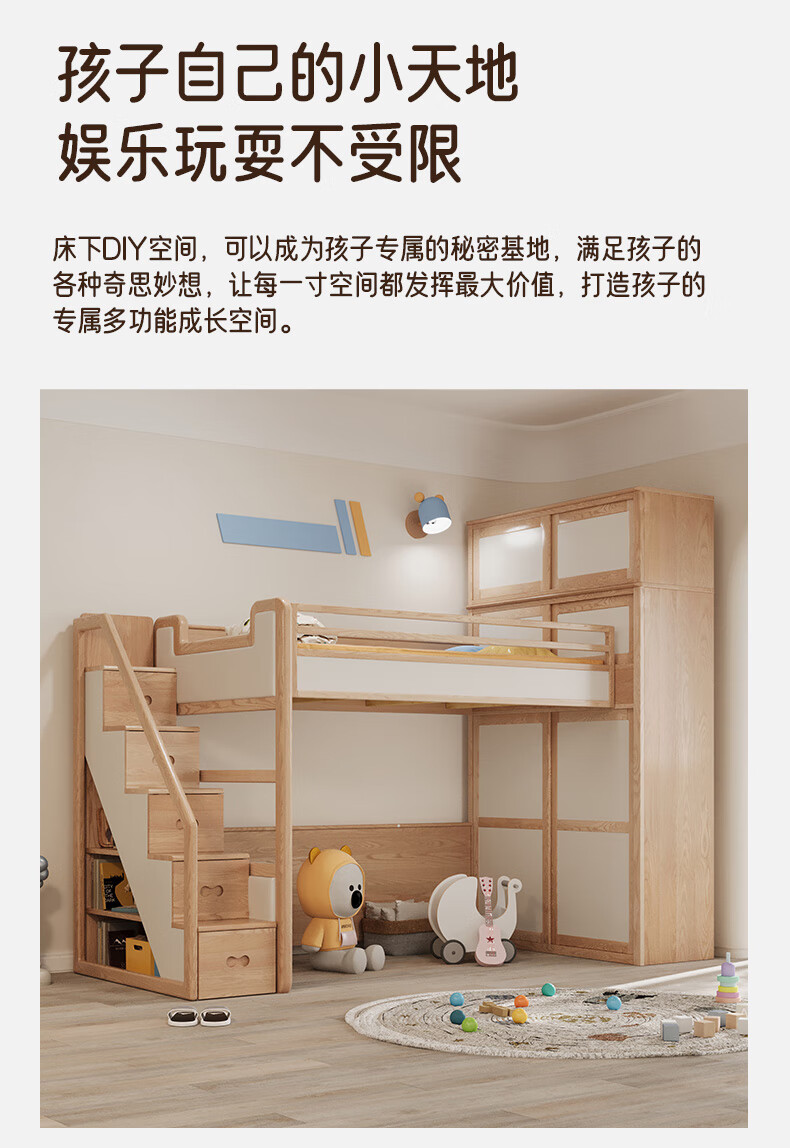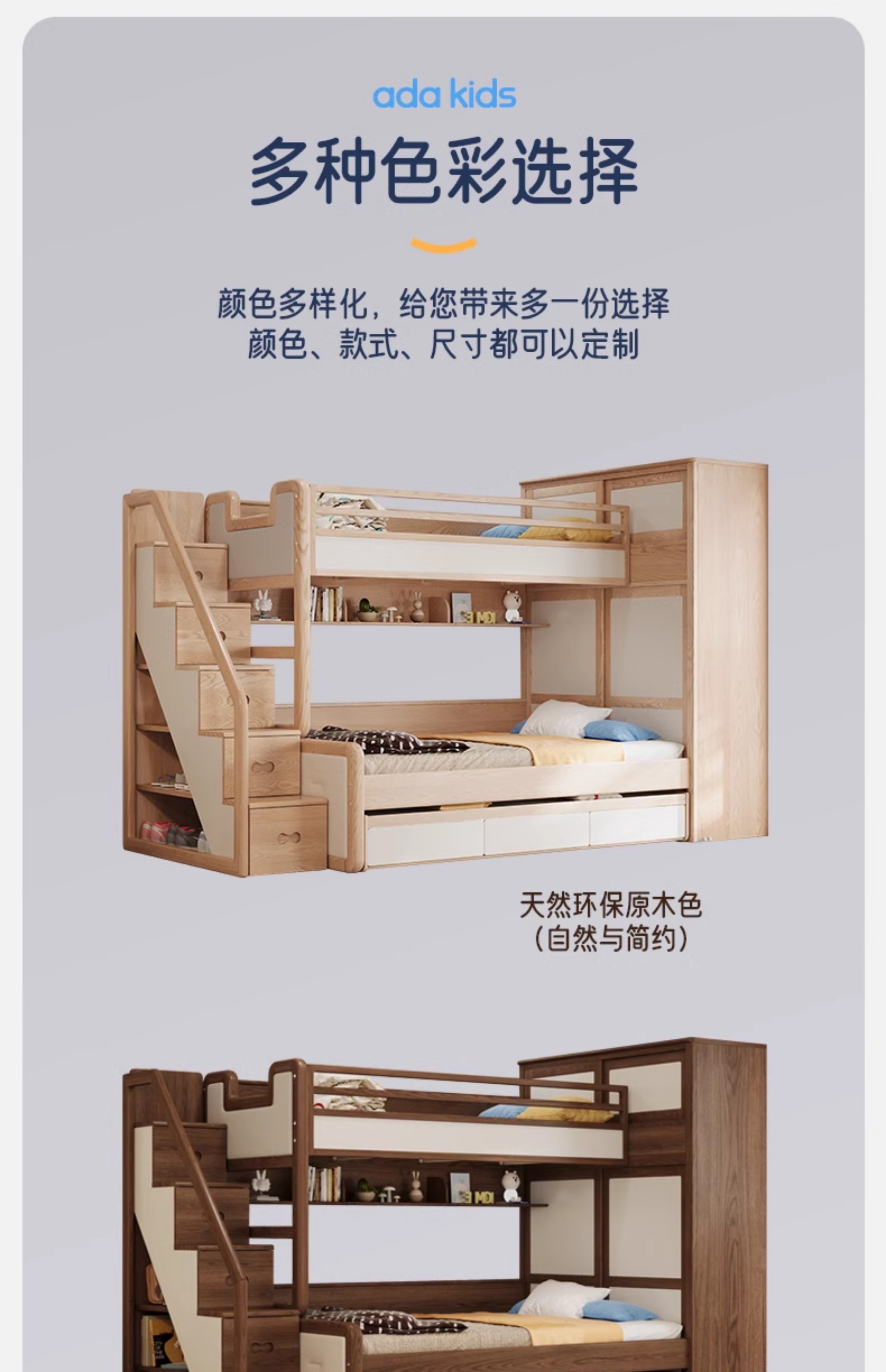 Dumb Bear solid wood children's bed multi-functional combined bed wardrobe bed storage high box bunk bed parallel bunk bed bunk bed + ladder cabinet + large wardrobe + top cabinet (walnut color 1200mm*1900mm