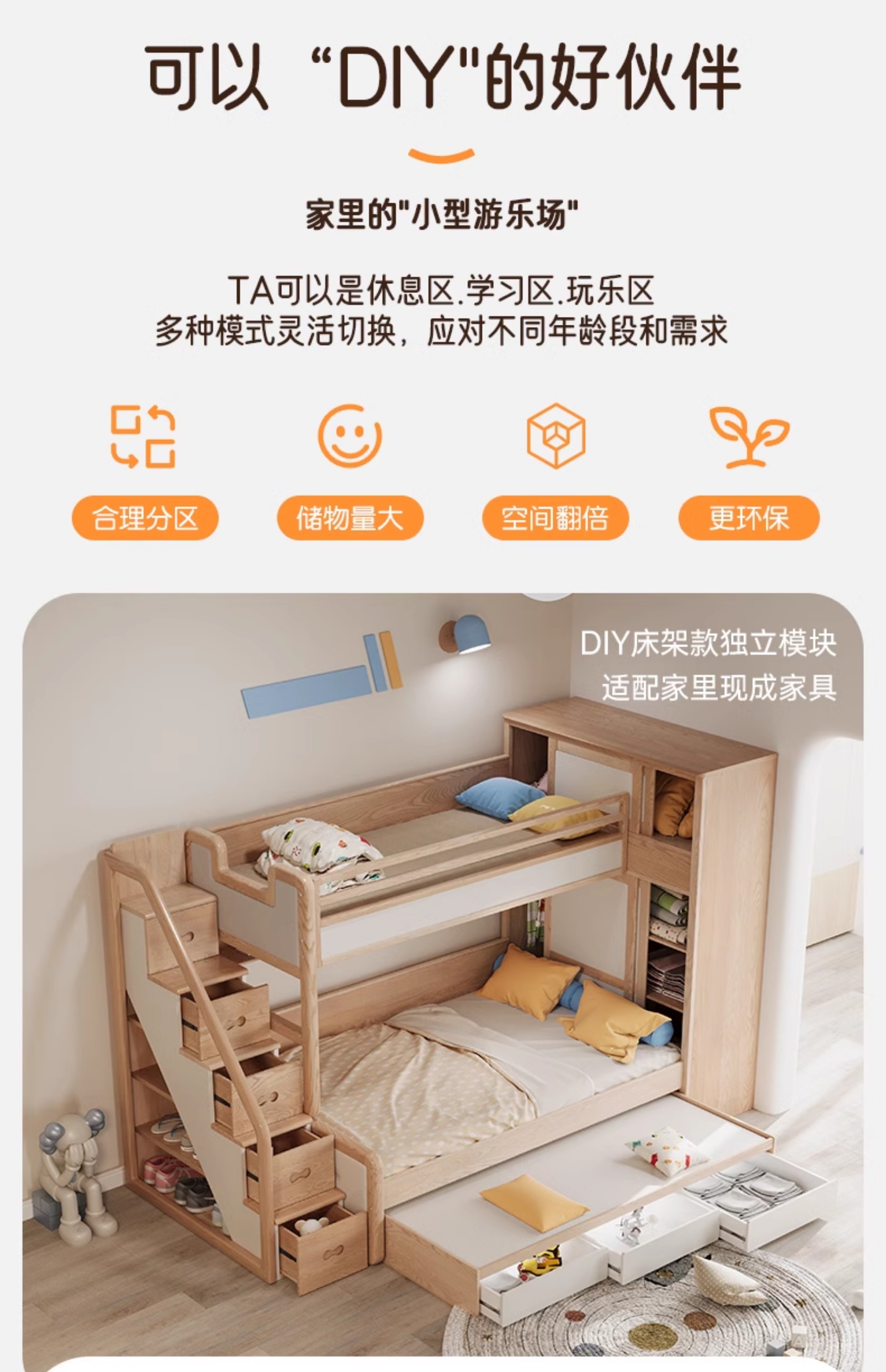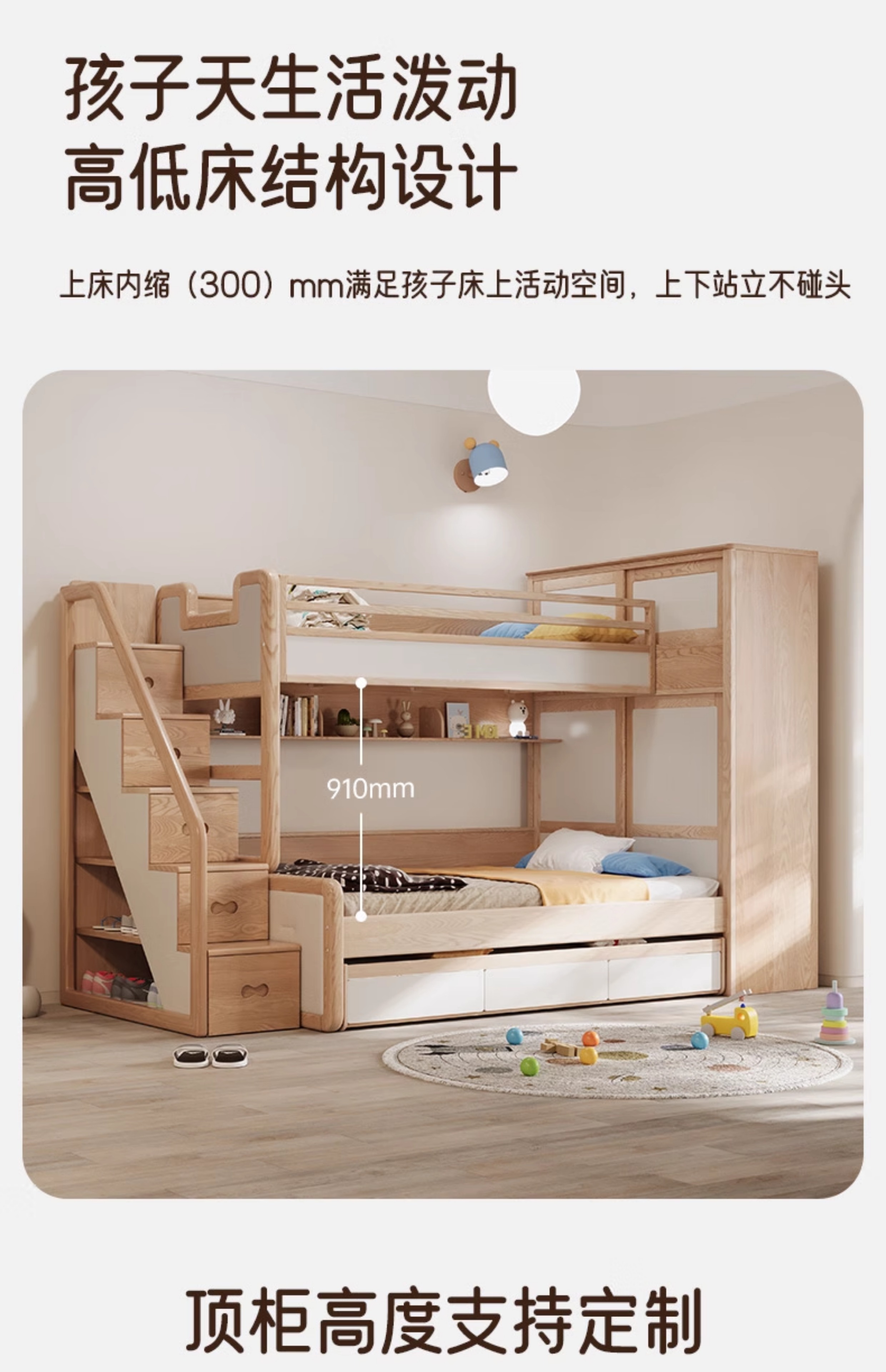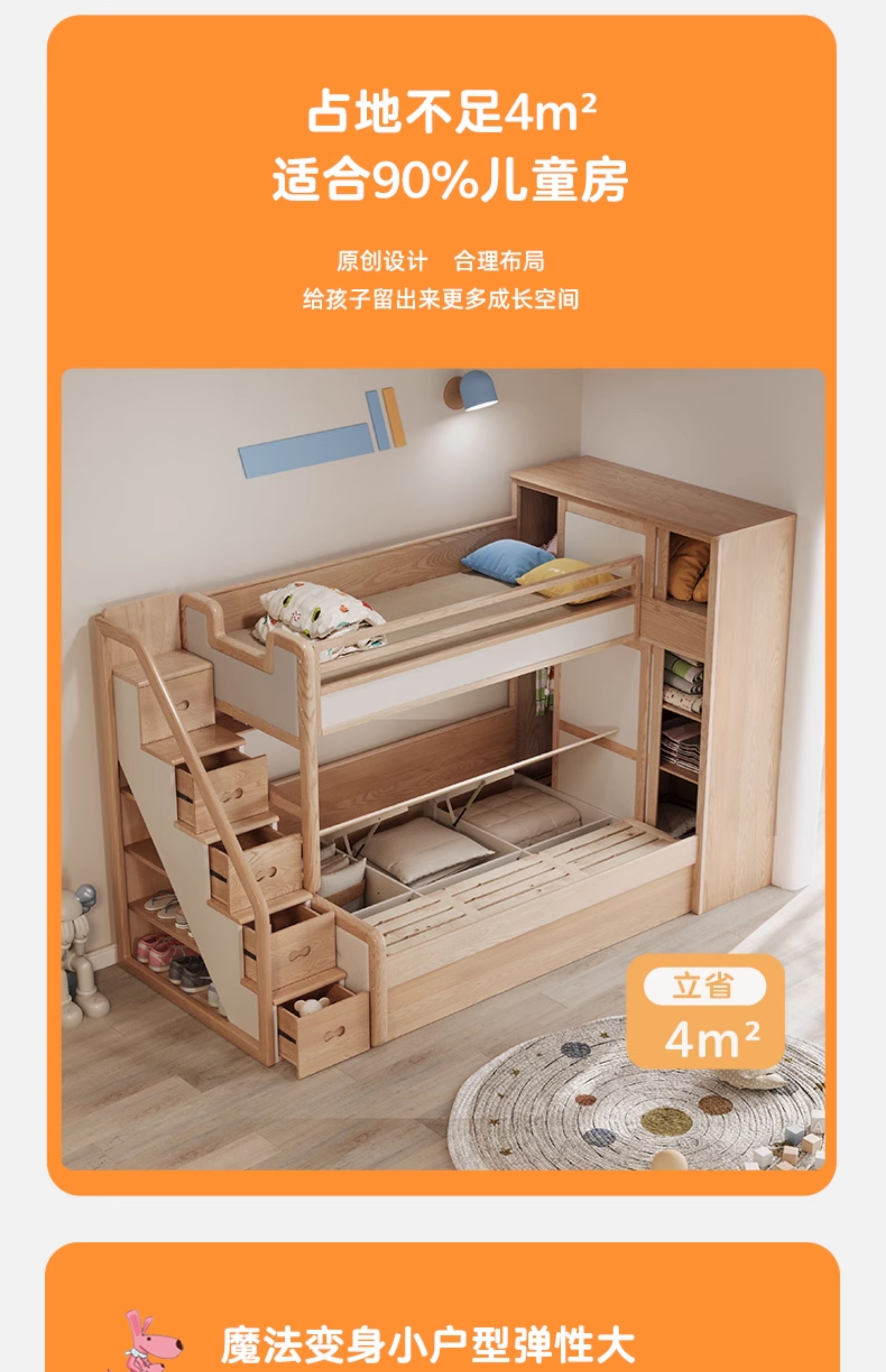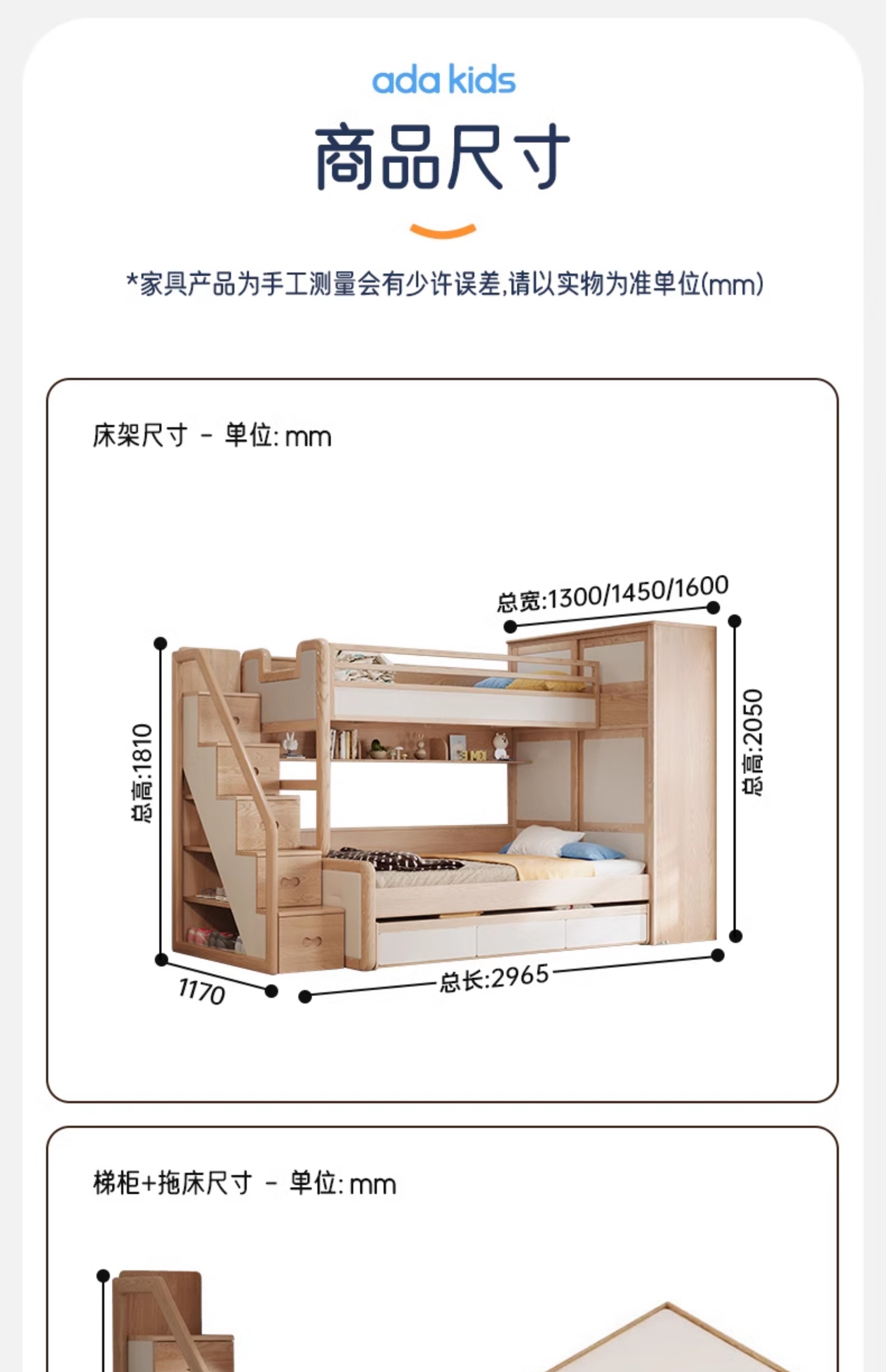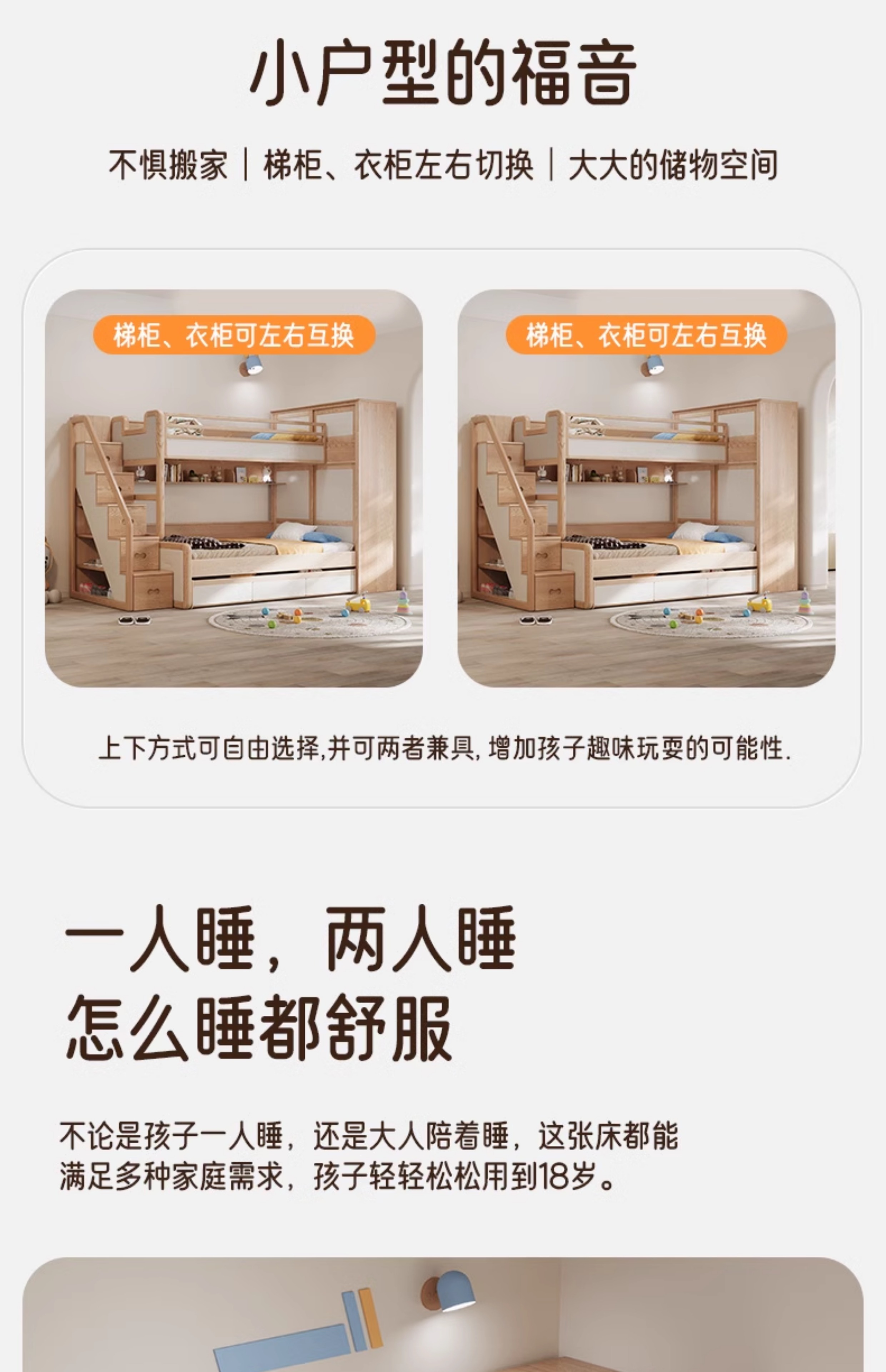 Dumb Bear solid wood children's bed multi-functional combined bed wardrobe bed storage high box bunk bed parallel bunk bed bunk bed + ladder cabinet + large wardrobe + top cabinet (walnut color 1200mm*1900mm