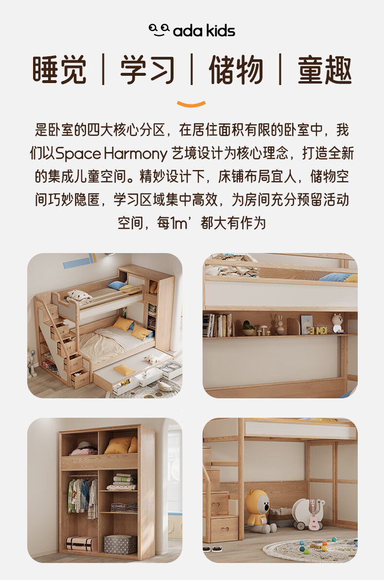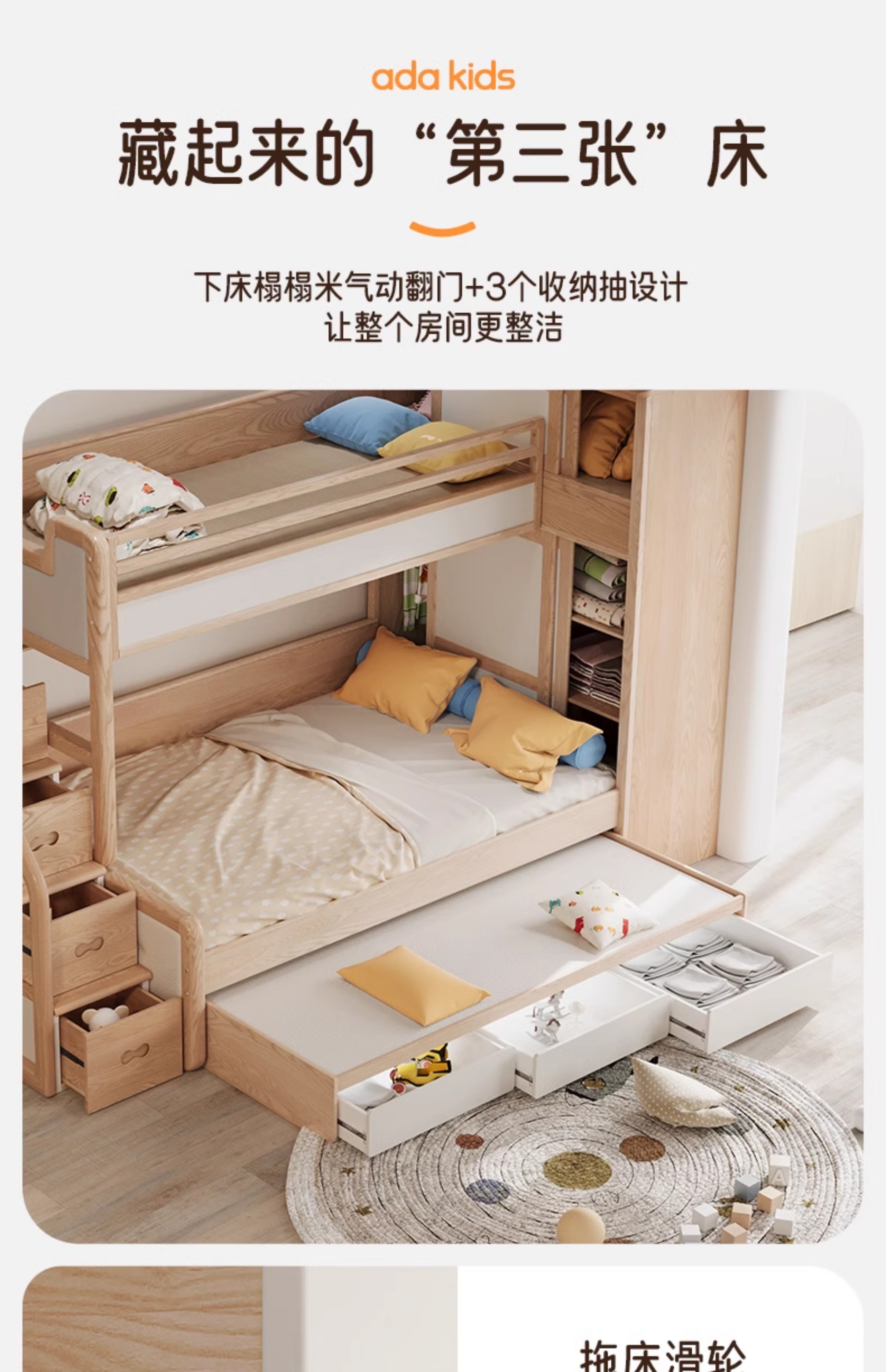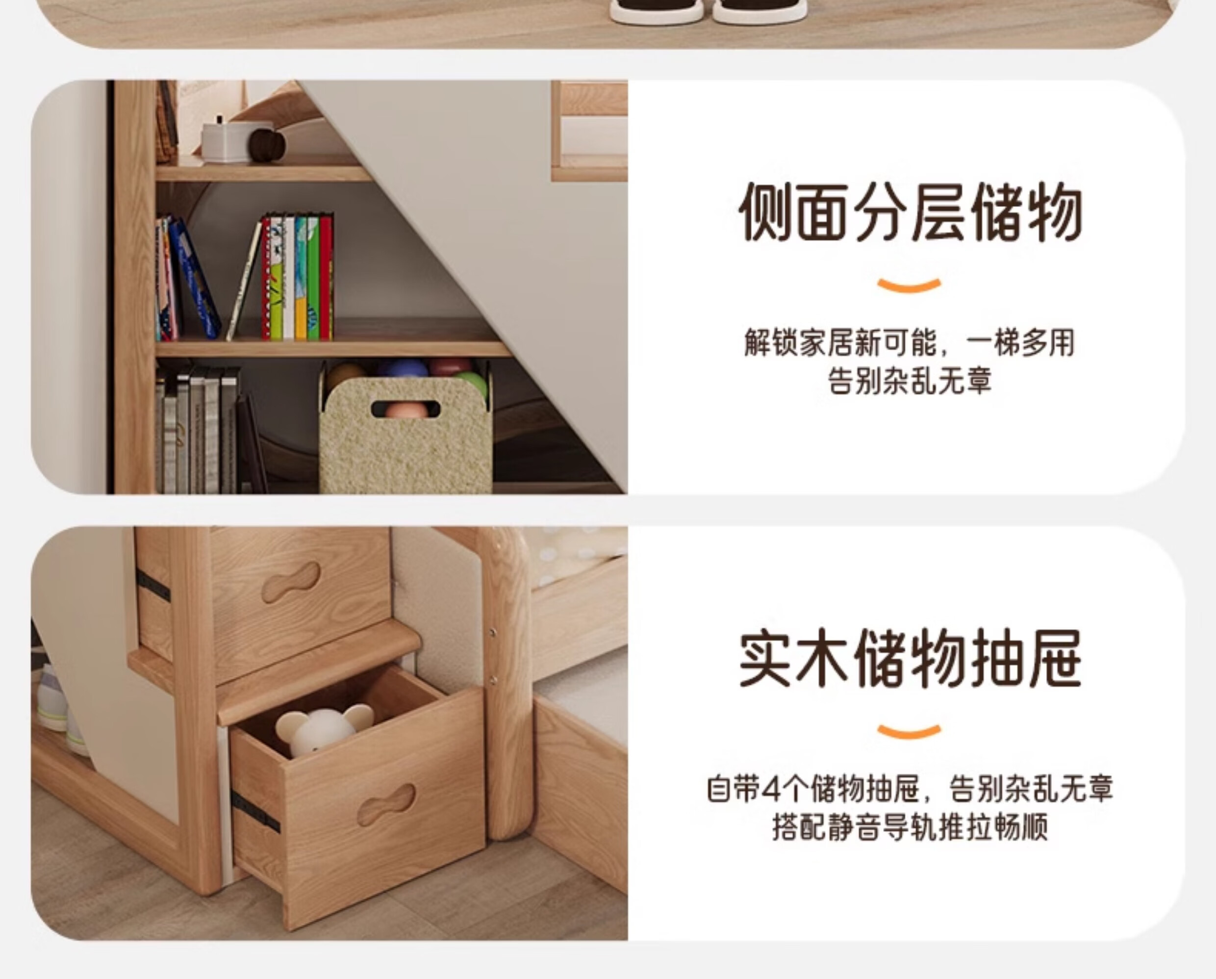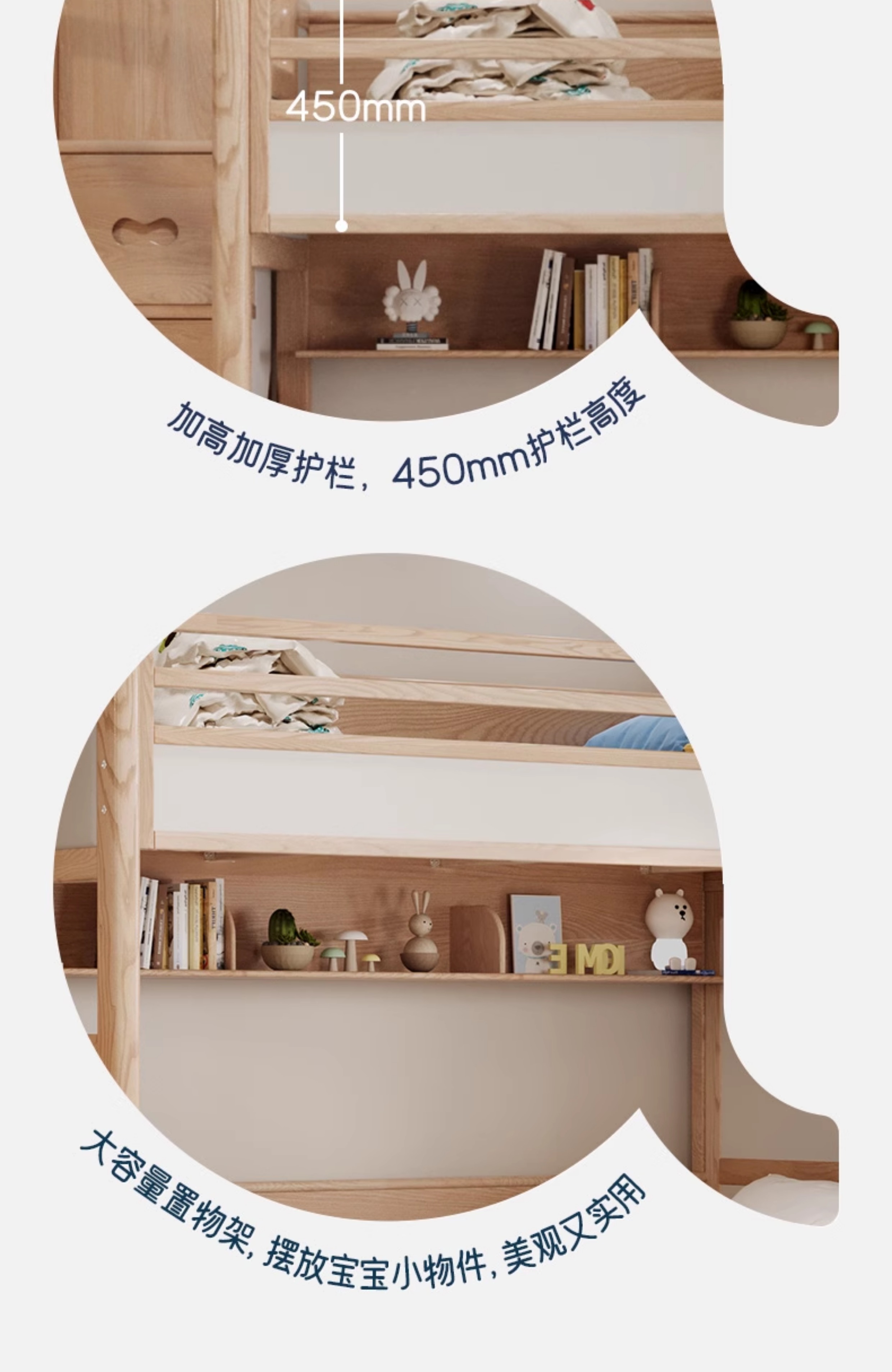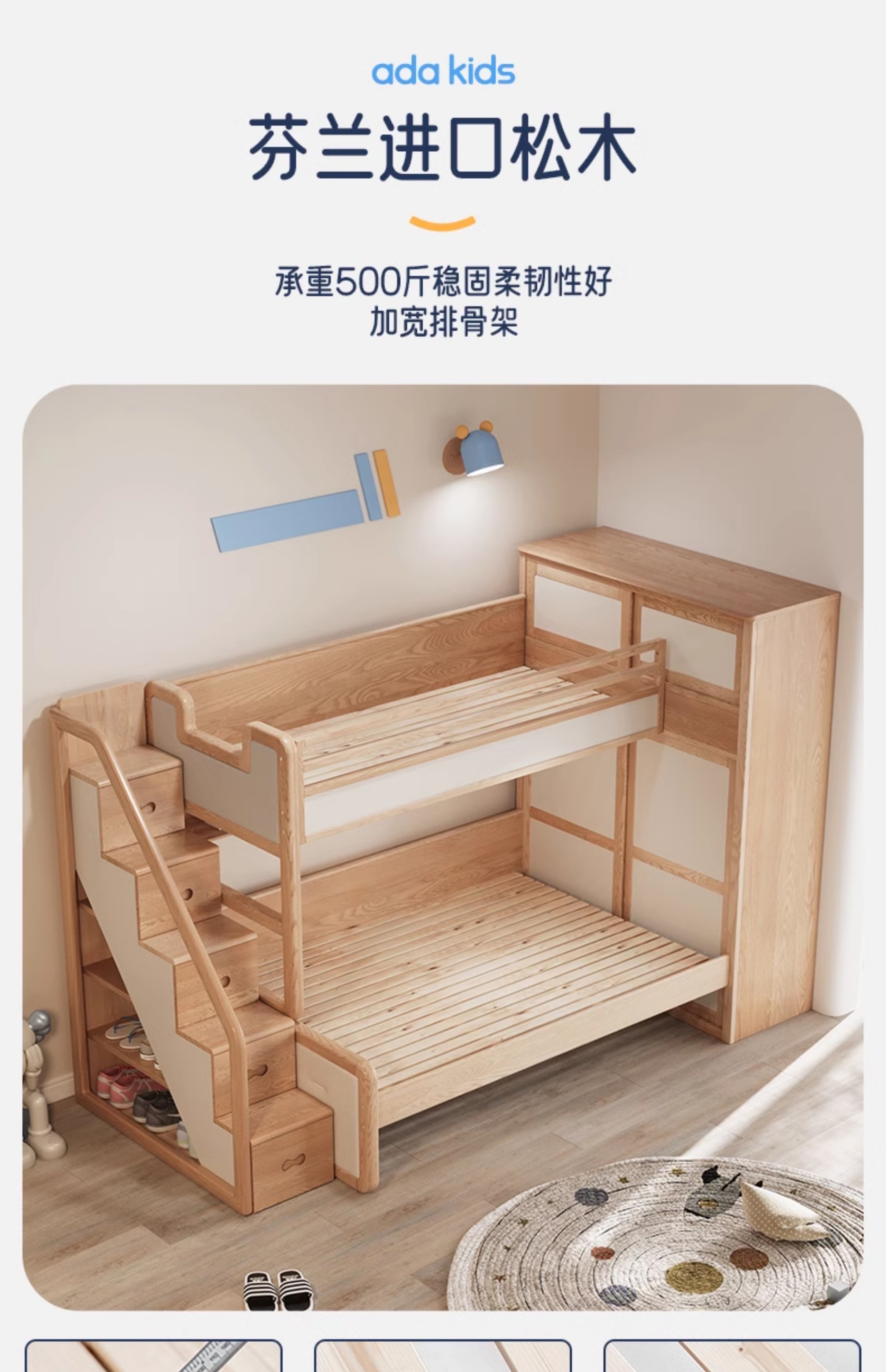Dumb Bear solid wood children's bed multi-functional combined bed wardrobe bed storage high box bunk bed parallel bunk bed bunk bed + ladder cabinet + large wardrobe + top cabinet (walnut color 1200mm*1900mm