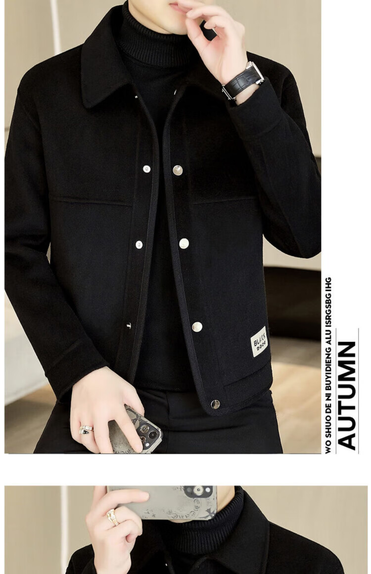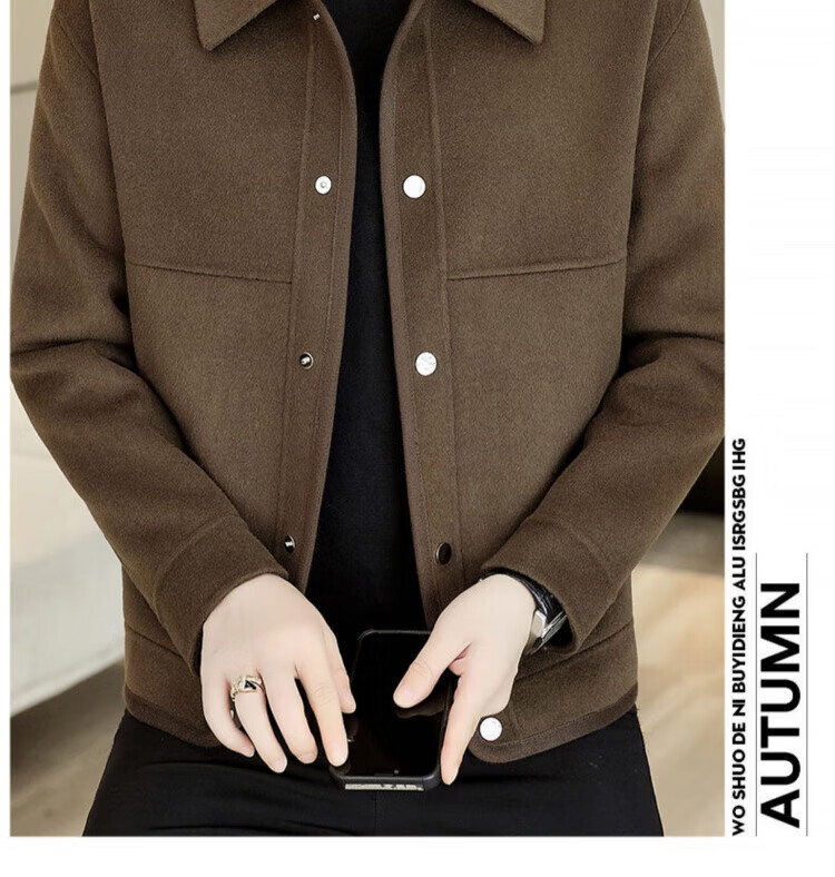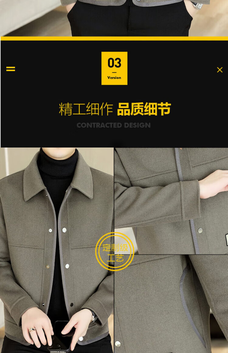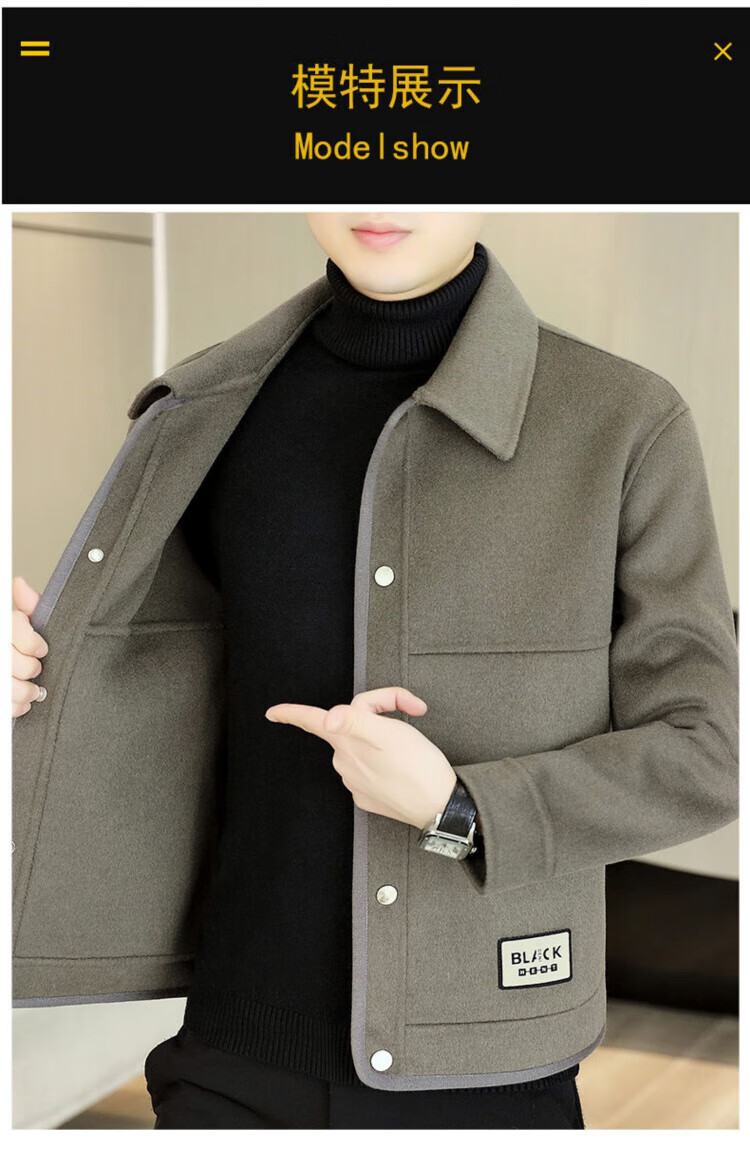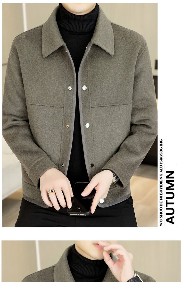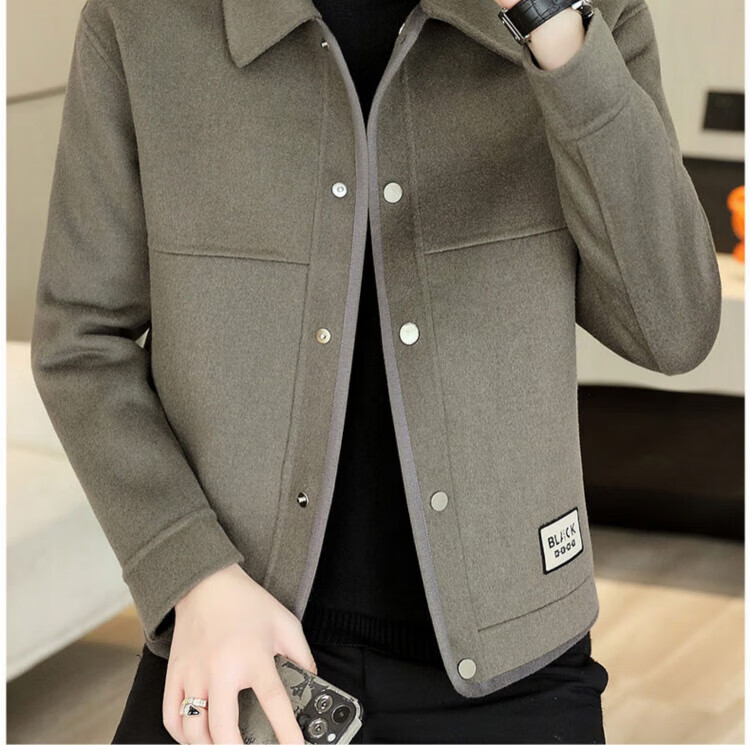 ROMON sheep wool jacket men's short autumn and winter new business casual warm lapel double-sided woolen jacket trendy international gray XL 180 about 130-145 Jin Jin equals 0.5 kg can be worn