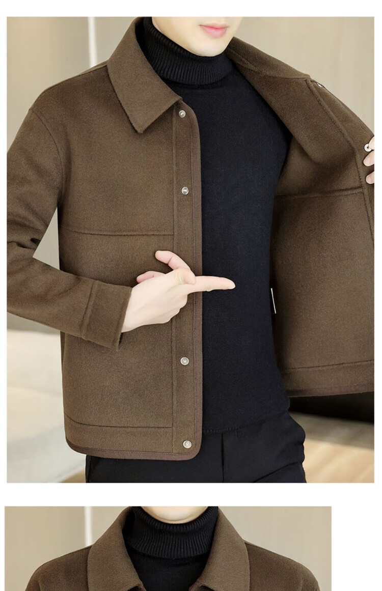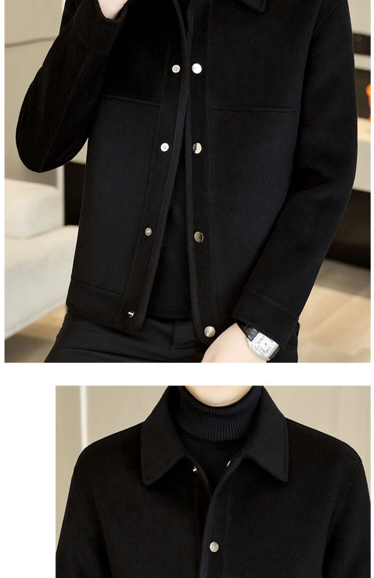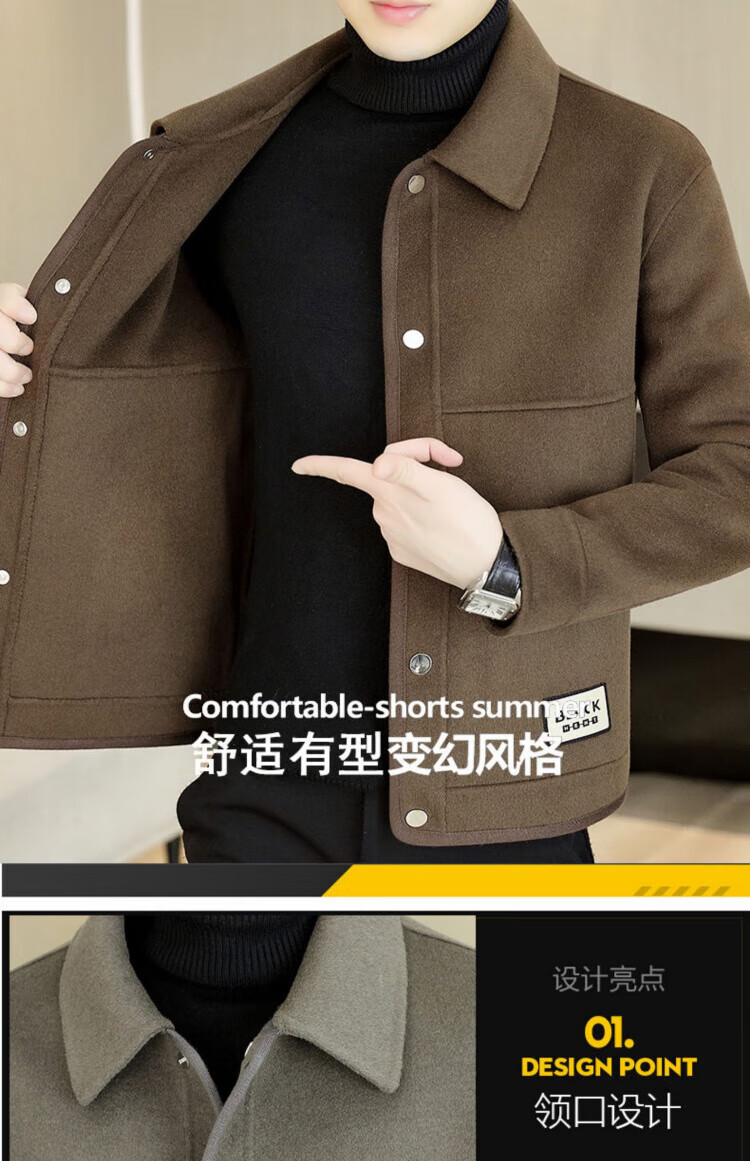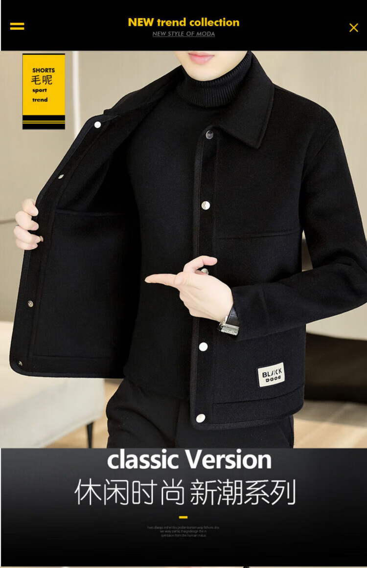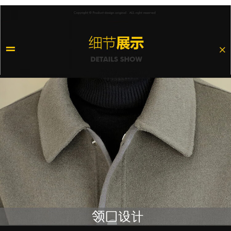 ROMON sheep wool jacket men's short autumn and winter new business casual warm lapel double-sided woolen jacket trendy international gray XL 180 about 130-145 Jin Jin equals 0.5 kg can be worn