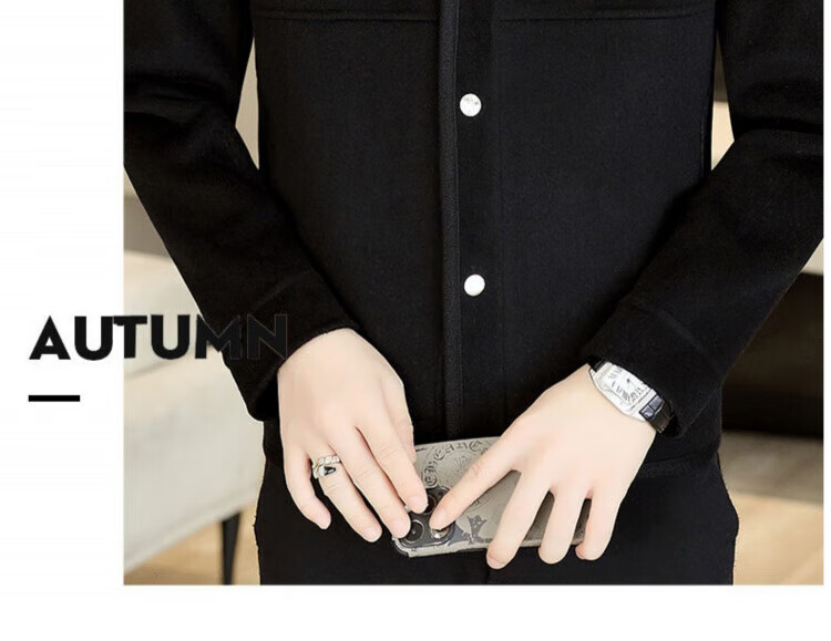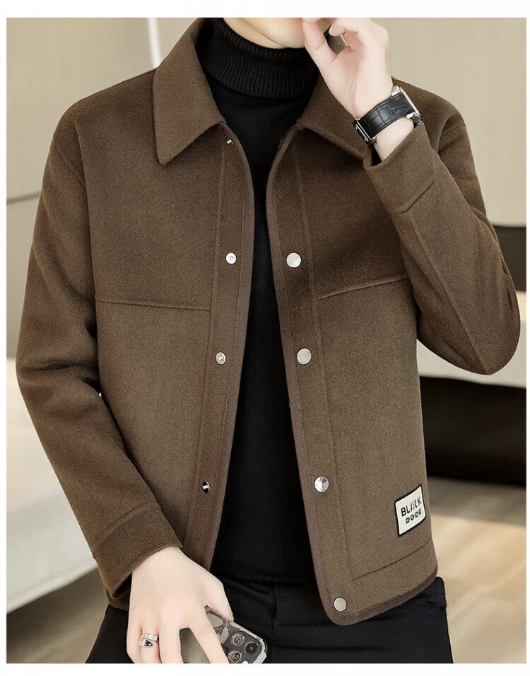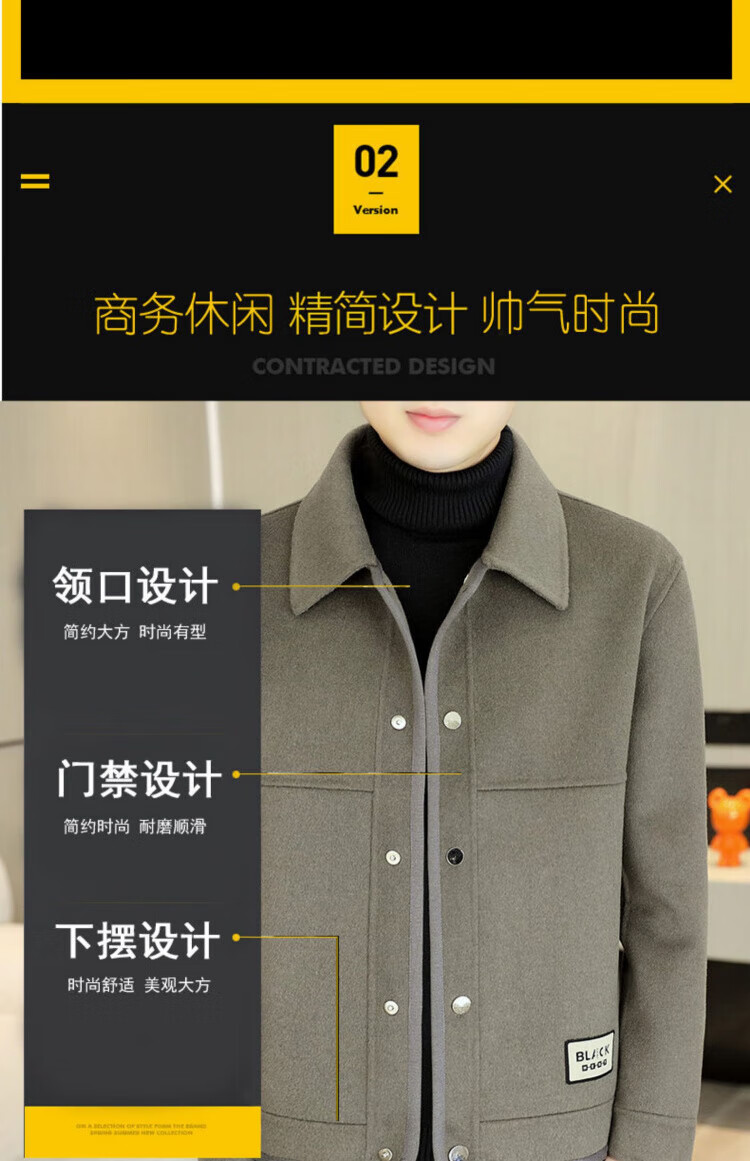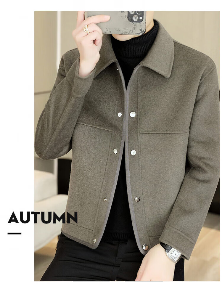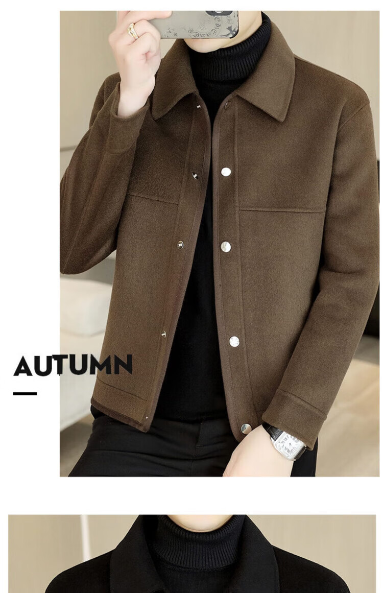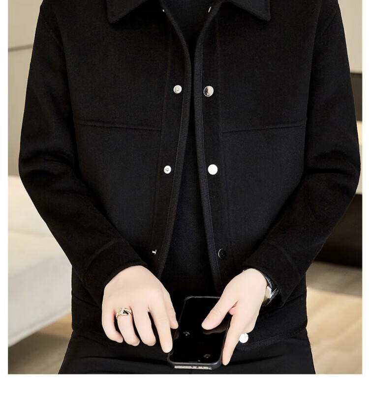 ROMON sheep wool jacket men's short autumn and winter new business casual warm lapel double-sided woolen jacket trendy international gray XL 180 about 130-145 Jin Jin equals 0.5 kg can be worn