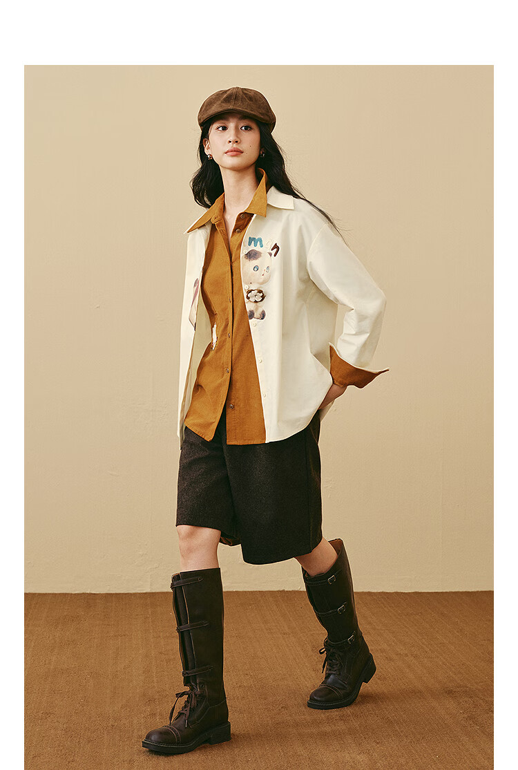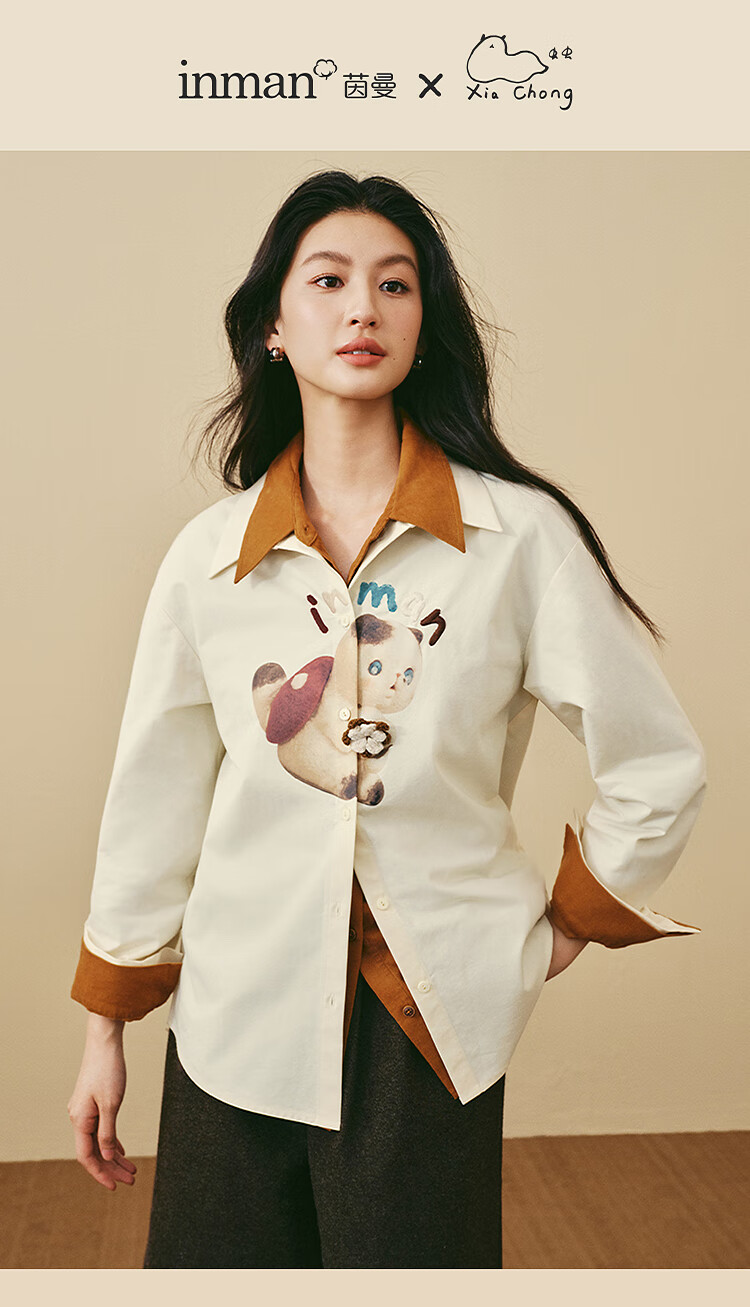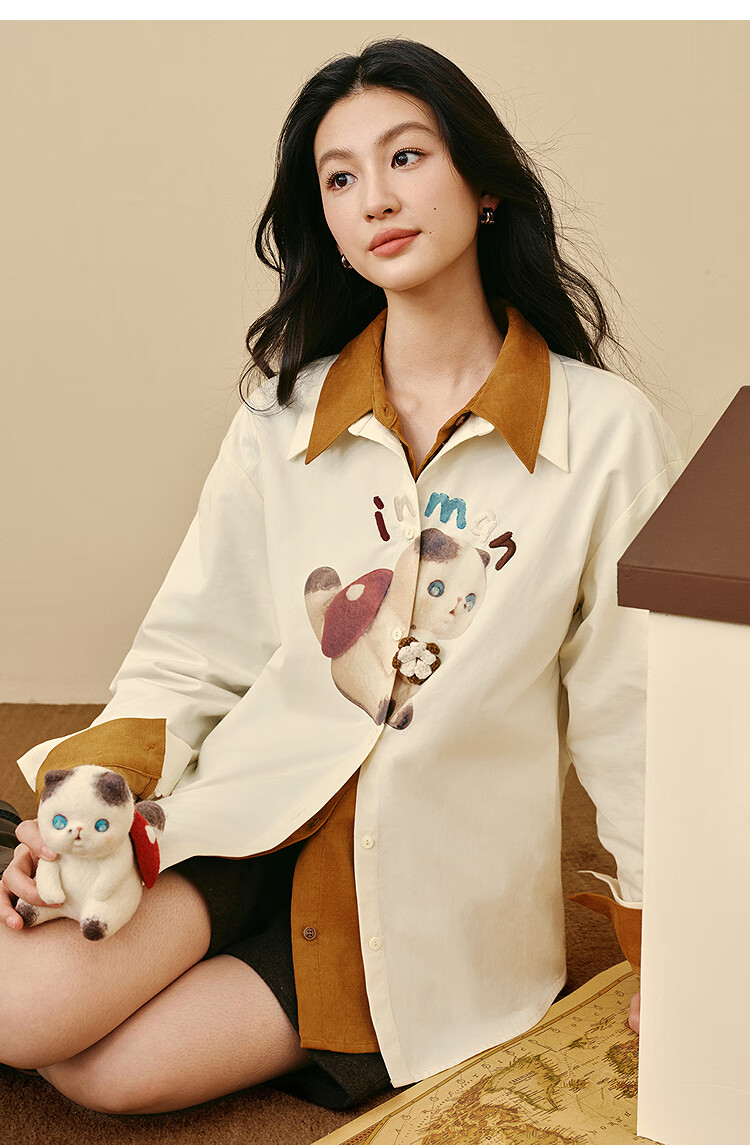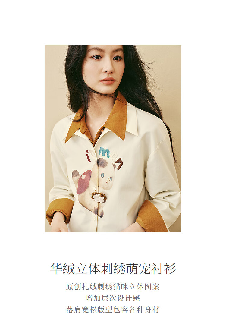 Yinman 2025, осенне-зимняя женская новая летняя рубашка с насекомыми, китайская бархатная трехмерная вышивка, милая рубашка для домашних животных, свободная рубашка с длинными рукавами, светлый абрикосовый белый XL