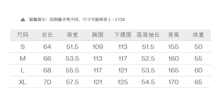China (cm) 160-165/84-86 165-170 / 88-90 167-172 / 92-96 168-173 / 98-102 170-176 / 106-110