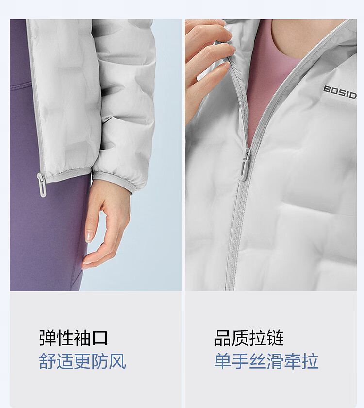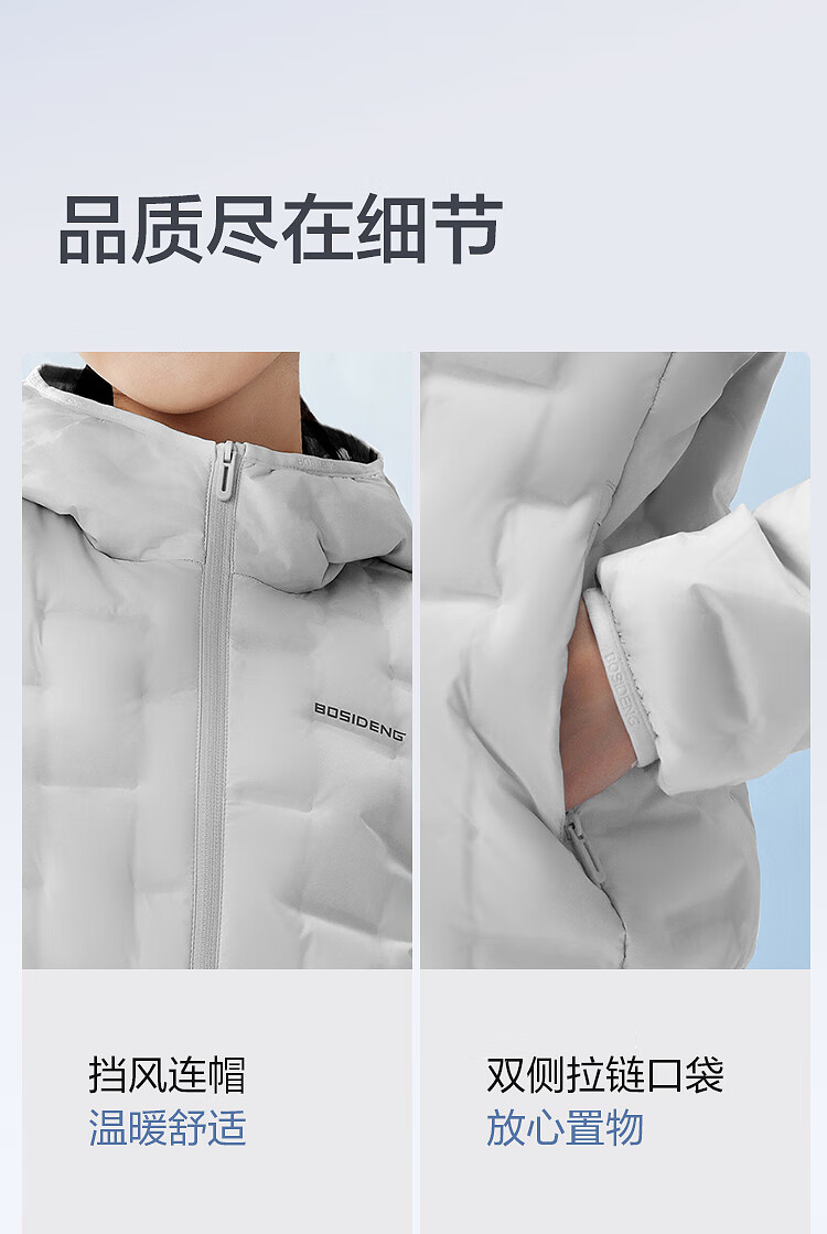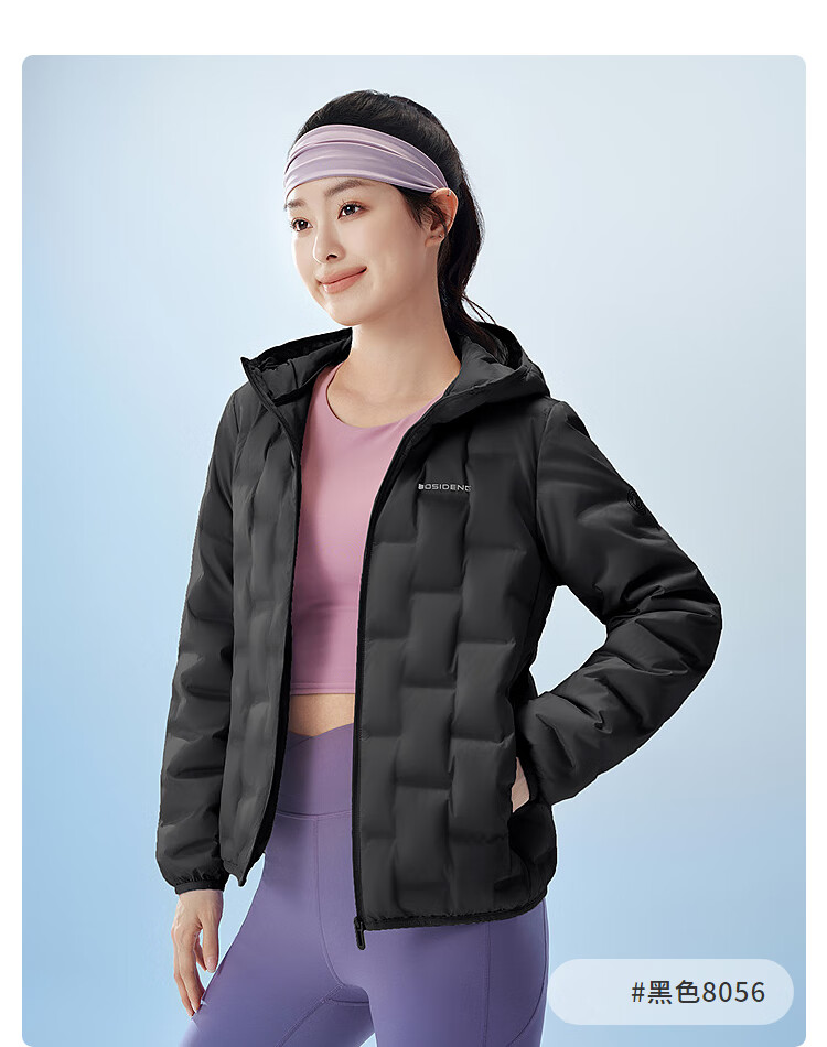 Bosideng (BOSIDENG) chaqueta de plumón para mujer otoño e invierno nuevo estilo fino plumón de ganso chaqueta cálida con capucha corta y corte entallado negro 8056 clásico versátil XS 155/80A peso aproximado 100 Jin Jin equivale a 0,5 kg