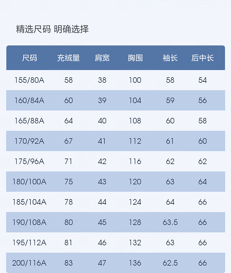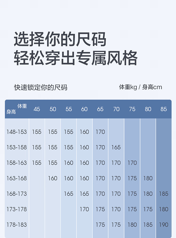 China (cm) 160-165/84-86 165-170 / 88-90 167-172 / 92-96 168-173 / 98-102 170-176 / 106-110